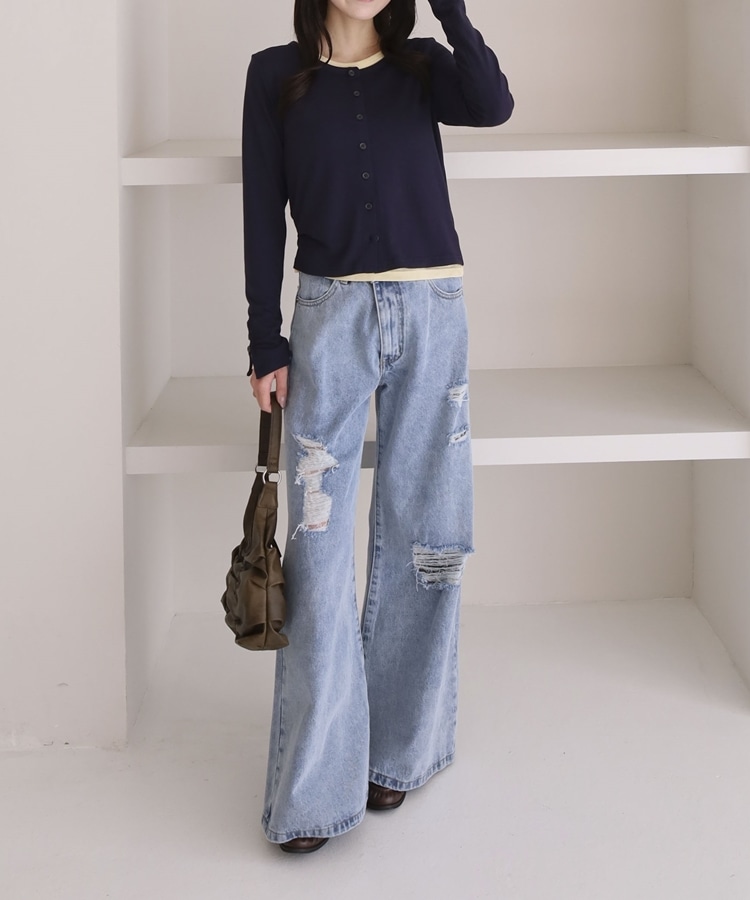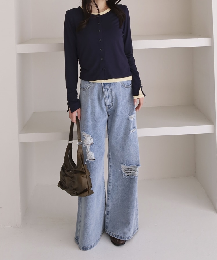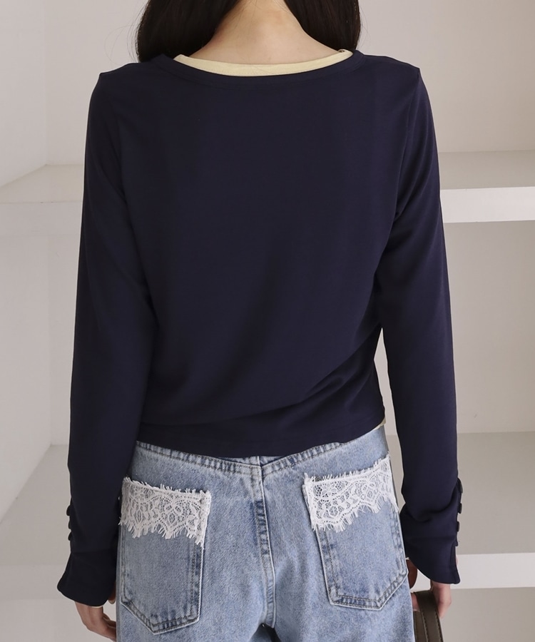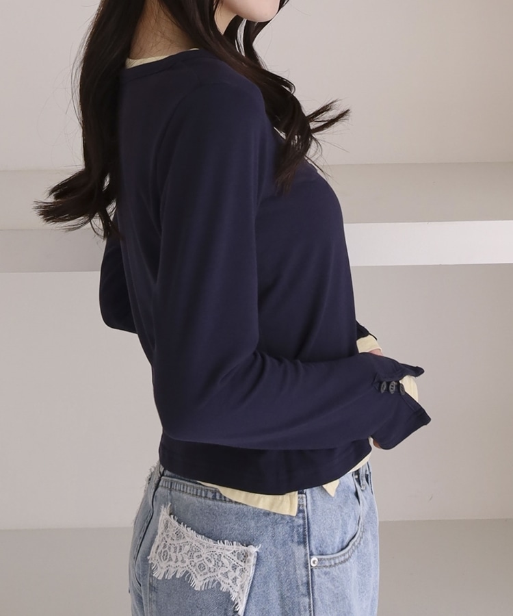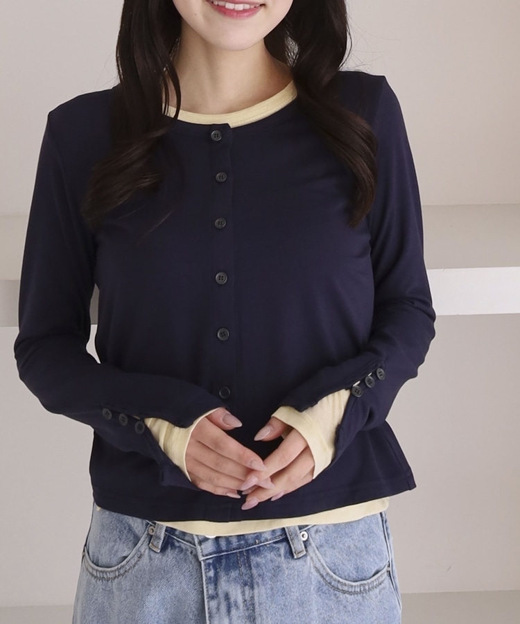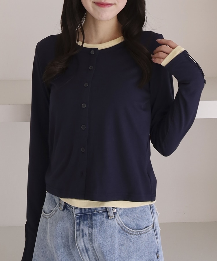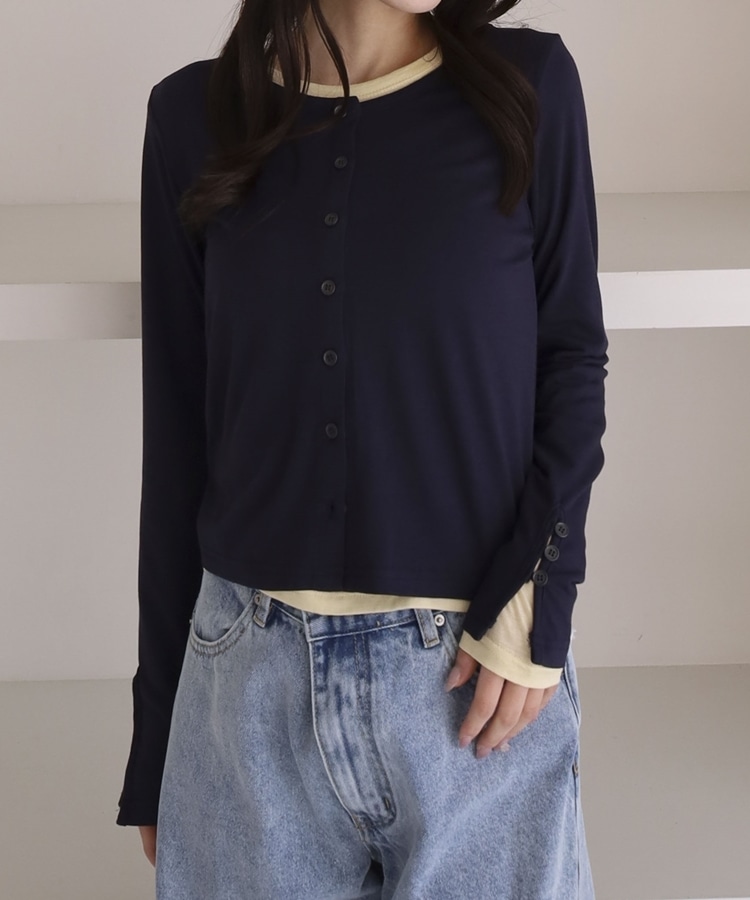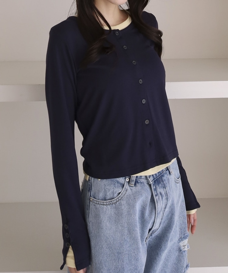 シアーカットカーデ/ロングスリーブTOPS NAVY