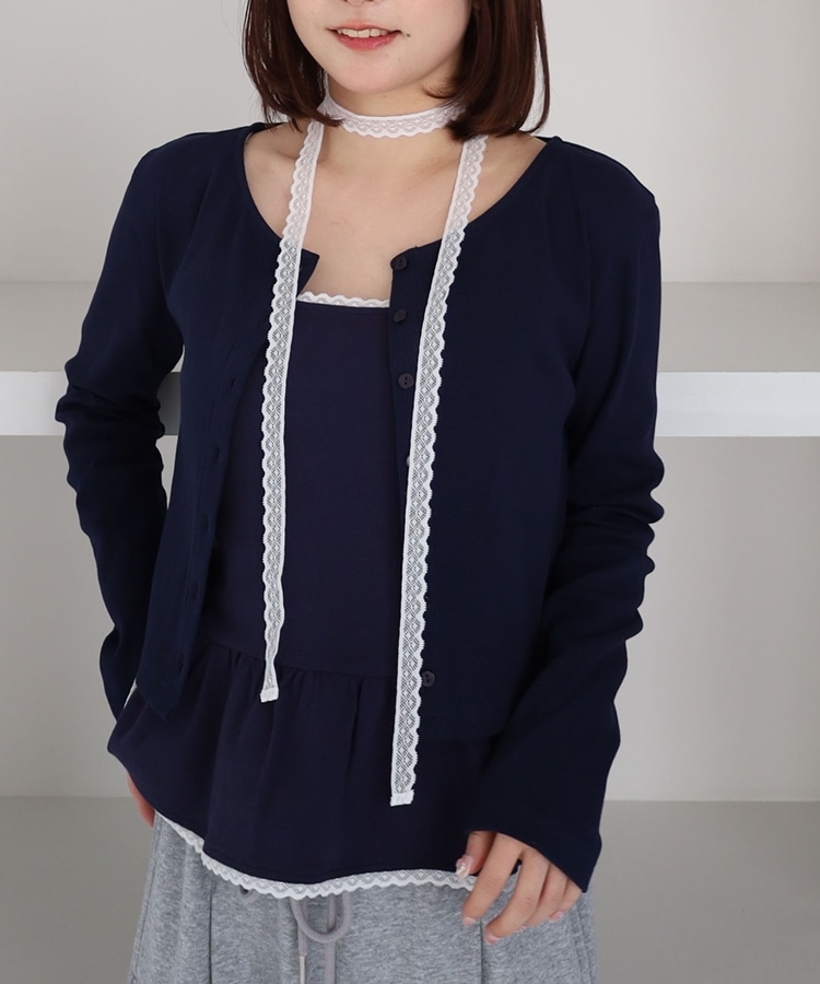 チョーカー付ドットアソートフリルカットアンサンブル NAVY