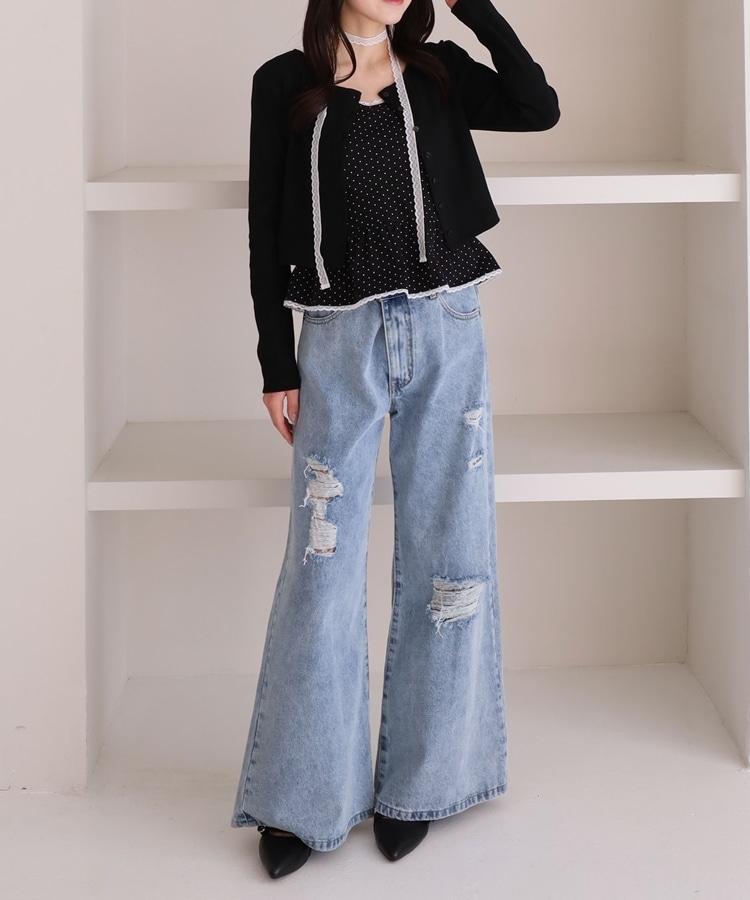 チョーカー付ドットアソートフリルカットアンサンブル OFF WHITE