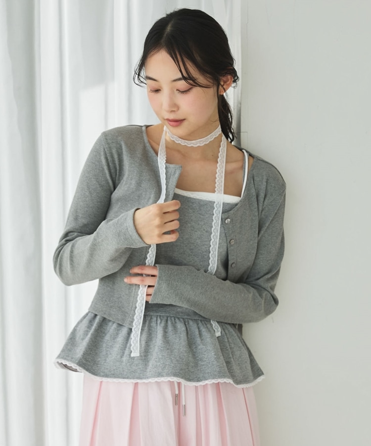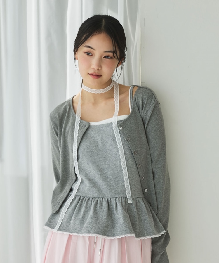 チョーカー付ドットアソートフリルカットアンサンブル GRAY