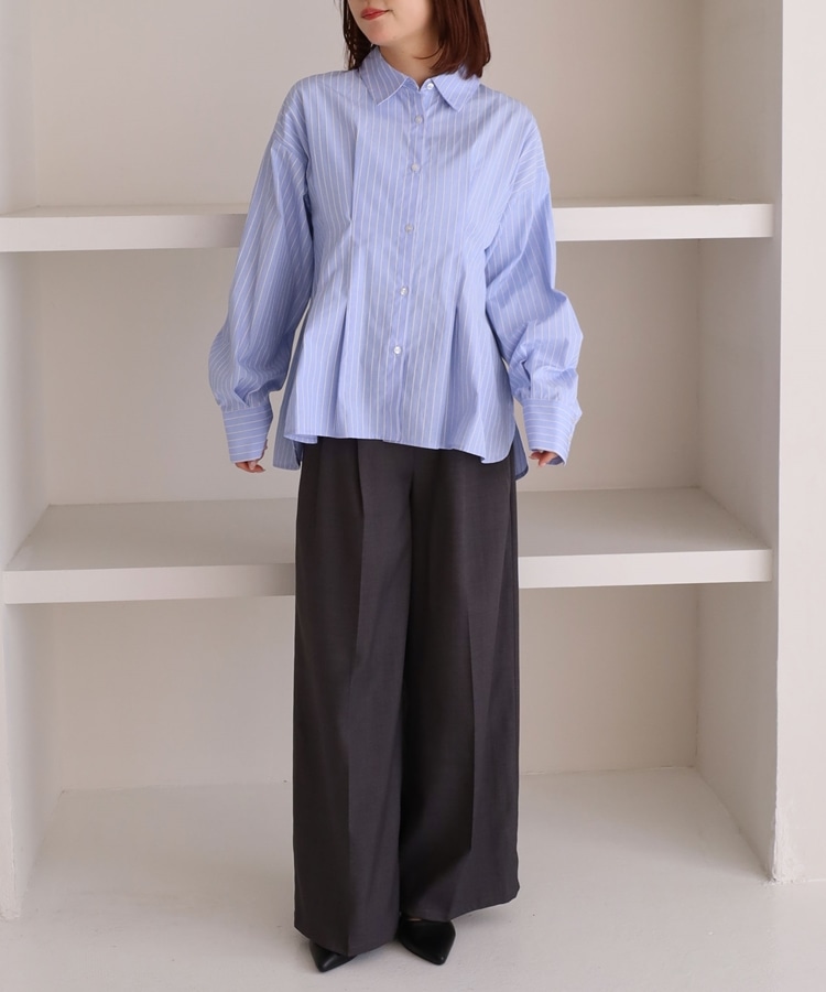 “ON かわ“archives×きちんと×かわいいON でも OFF でも“きちんと可愛く”着られる archives の新ラインテイスト問わず着まわしやすく、嬉しい機能付き!■着るだけでスタイルアップ。ウエストタックシャツ■【デザイン】・ウエストに入ったタックで、自然にメリハリのあるシルエットに・無地とストライプのアソート展開で、好みに合わせて選べるデザイン・春らしいブルーやイエローのカラー展開で、ONもOFFも着やすい・後ろが長めの丈感で、ヒップラインまでさりげなくカバー・ゆったりとしたサイズ感で、リラックス感のある着心地【素材感】・程よくハリのある素材で、シャツらしいきれいなフォルムをキープ・さらっとした肌触りで、ロングシーズン着用可能・きれいめにもカジュアルにも合わせやすい質感ーーーーーーーーーーーーーーー透け感:ややあり裏地:なし伸縮性:なし光沢感:なし生地厚さ:普通洗濯方法:可(手洗い推奨)※詳しいお手入れ方法は商品についているタグをご覧くださいーーーーーーーーーーーーーーー※ご利用のモニター環境により、実際の色味と多少異なる場合がございます。【スタイリング】■ ON・“ONかわ”シリーズのボトムスと合わせて、簡単にオフィスコーデが完成・きれいめパンツと合わせて、すっきり大人な印象に■ OFF・デニムと合わせて、春らしい大人カジュアルに・フレアスカートと合わせて、女性らしいお出かけスタイルにもおすすめ▼スタッフ別の詳しい着こなしは下の COORDINATE をチェック