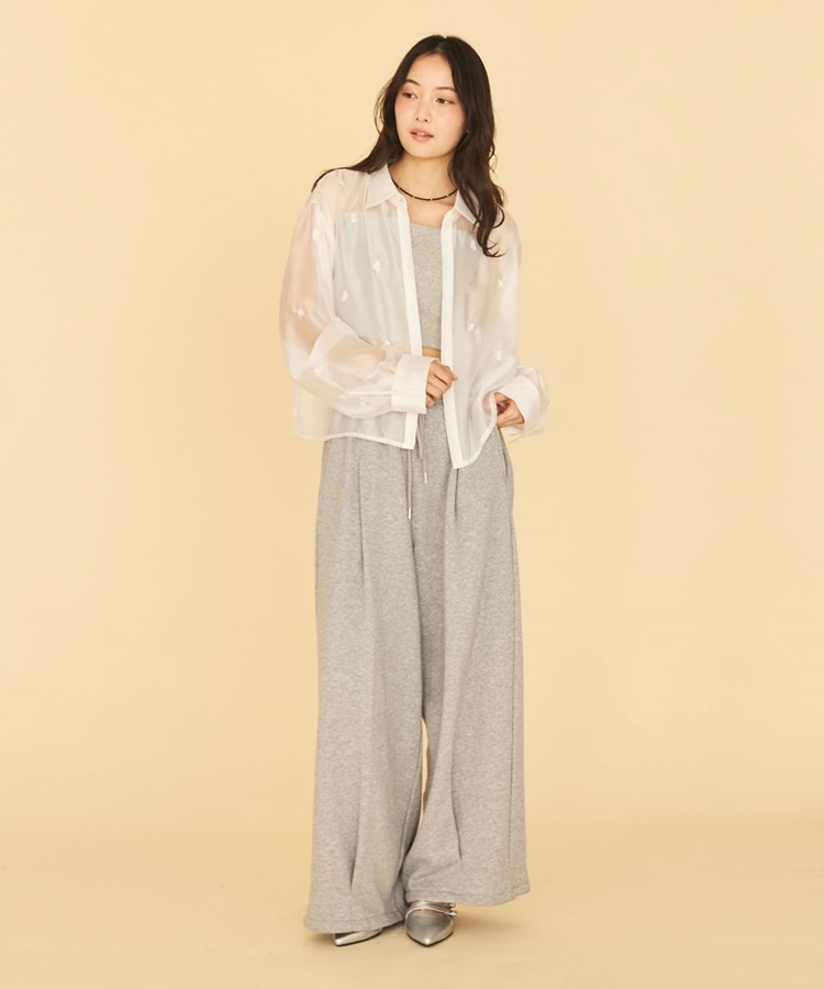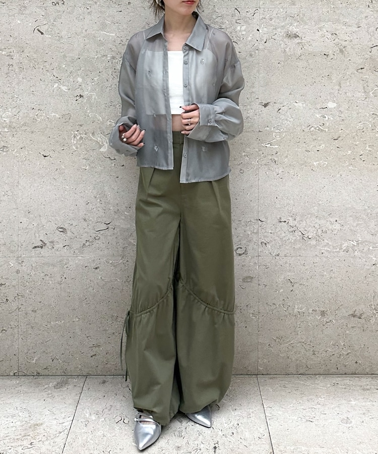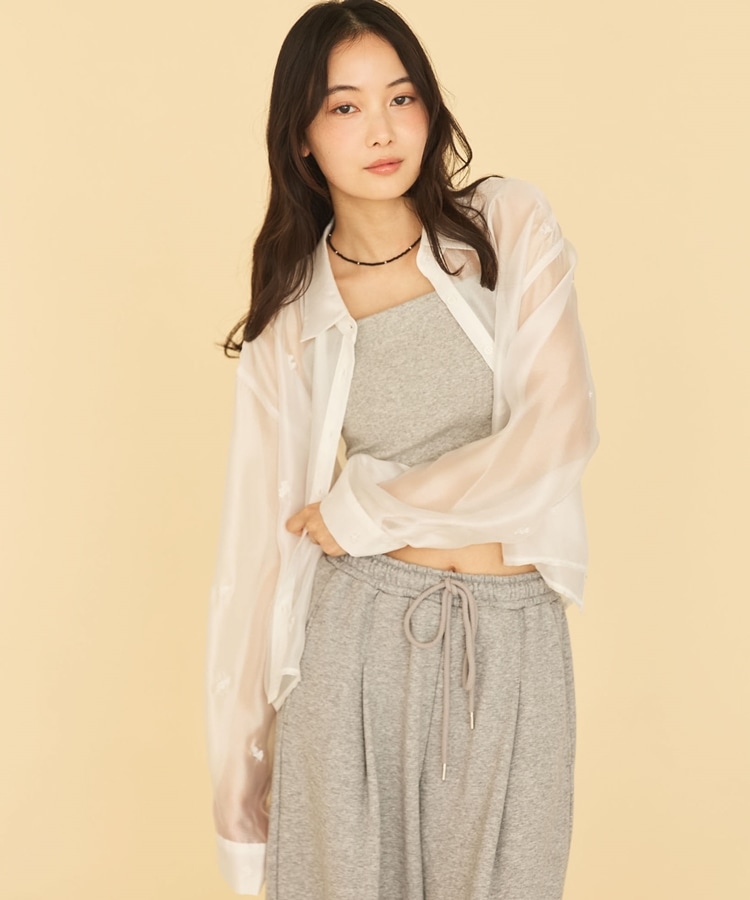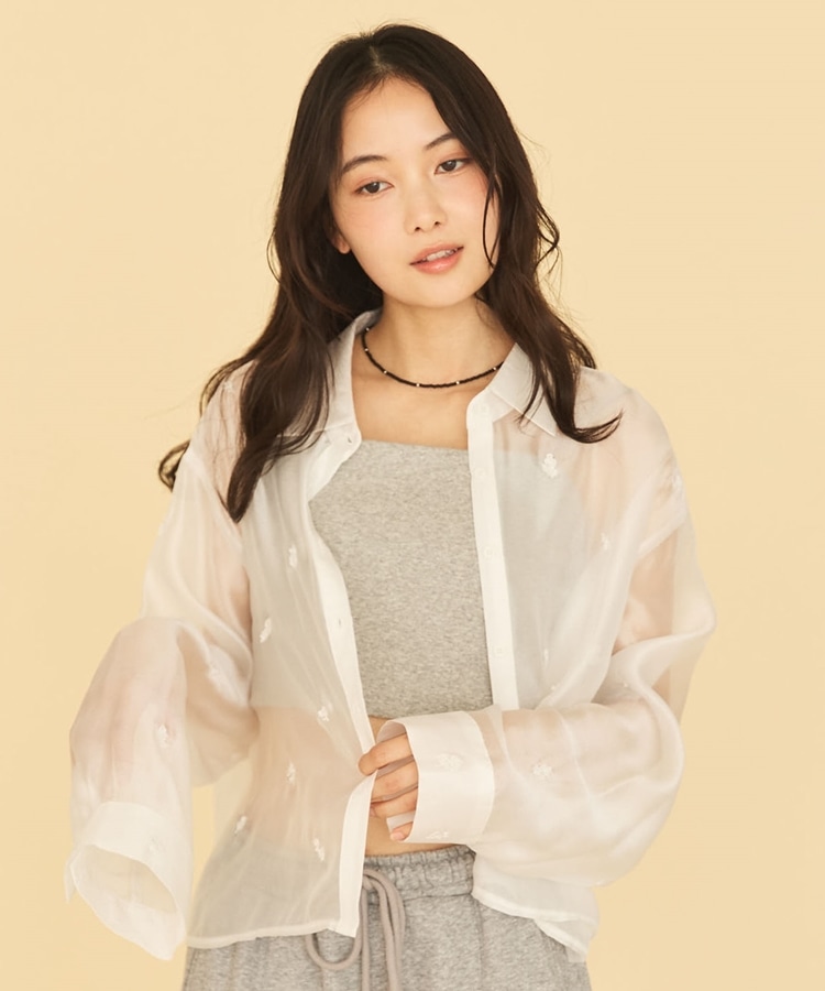 ■繊細な輝きをまとう、ビーズ刺繍シアーシャツ■【デザイン】・ビーズの花柄刺繍が目を惹く、フェミニンで大人っぽいシアーシャツ・立体感のあるビーズ刺繍が、さりげなくキラッと輝き特別感のある印象に・ショート丈でバランスが取りやすく、スタイルアップも叶える・シアー素材で抜け感のあるデザイン・羽織りとして使えるので、レイヤードスタイルが楽しめる一枚【素材感】・柔らかく軽やかなシアー素材で、肌当たりの良い着心地・透け感が程よく、重たく見えず軽やかな印象・ビーズ刺繍の凹凸感が、上品で特別感のある表情を演出ーーーーーーーーーーーーーーー透け感:あり裏地:なし伸縮性:なし光沢感:なし生地厚さ:普通洗濯方法:可(手洗い推奨)※詳しいお手入れ方法は商品についているタグをご覧くださいーーーーーーーーーーーーーーー※ご利用のモニター環境により、実際の色味と多少異なる場合がございます。【スタイリング】・キャミソールやタンクトップと合わせて、透け感を楽しむレイヤードコーデに・キャミワンピースの上に羽織って、女性らしいスタイリングに・スウェットやデニムと合わせて、抜け感のある大人カジュアルに・スラックスやロングスカートと合わせて、きれいめなコーデにも◎▼スタッフ別の詳しい着こなしは下の COORDINATE をチェック