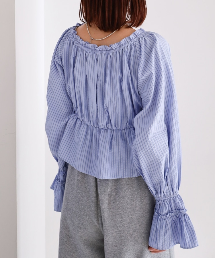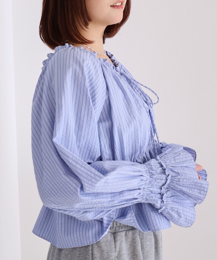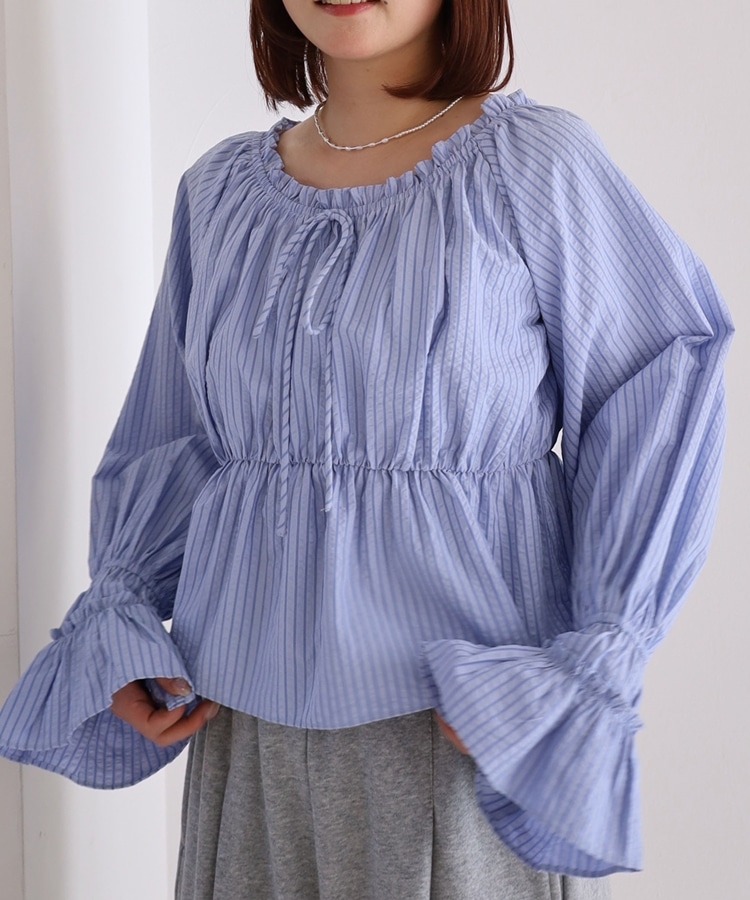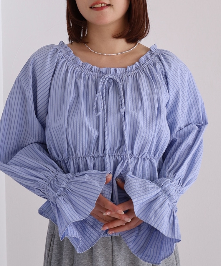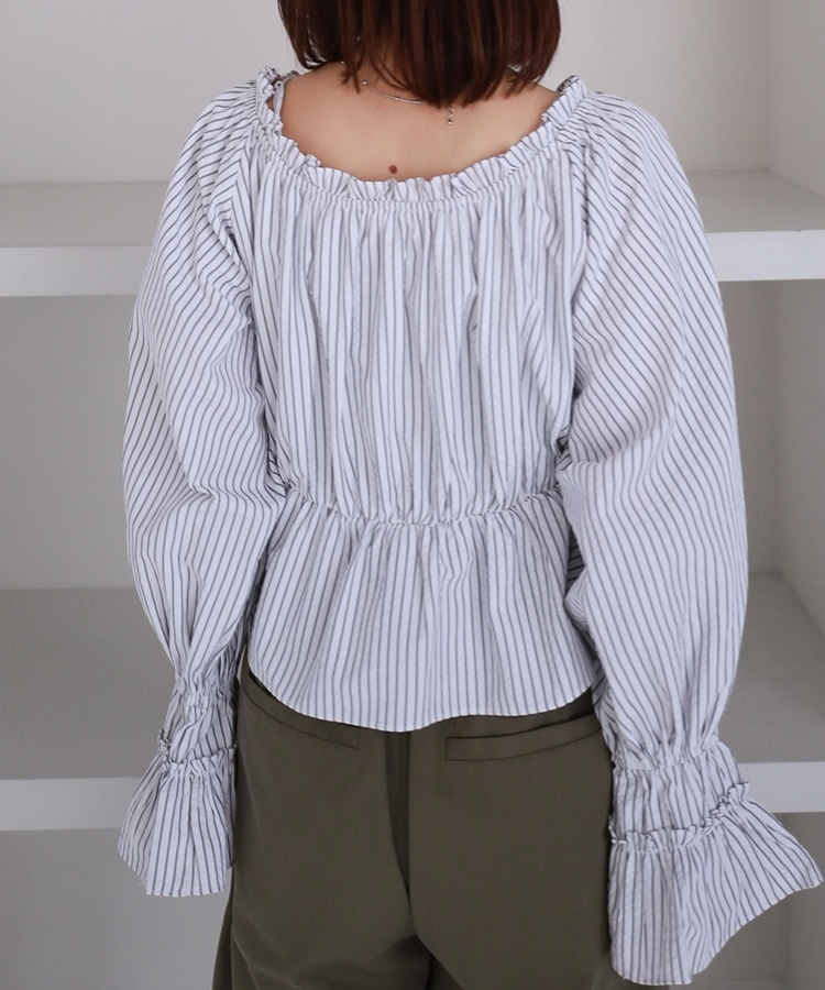 ■抜け感を楽しむ、2wayオフショルブラウス■【デザイン】・爽やかなストライプ柄が印象的なブラウス・肩周りにゴム入りで、オフショルとしても着られる2way仕様・デコルテをきれいに見せてくれる程よい開き具合・襟元のリボンがさりげないワンポイントに・ふんわりとしたシルエットで女性らしい柔らかさを演出【素材感】・程よくハリ感のある柔らかい生地・立体感のあるシルエットをキープ・軽やかな着心地で春夏にぴったりーーーーーーーーーーーーーーー透け感:なし裏地:なし伸縮性:なし光沢感:なし生地厚さ:普通洗濯方法:可(手洗い推奨)※詳しいお手入れ方法は商品についているタグをご覧くださいーーーーーーーーーーーーーーー※ご利用のモニター環境により、実際の色味と多少異なる場合がございます。【スタイリング】・デニム合わせでカジュアルな抜け感コーデに・スウェットと合わせてトレンド感のあるミックススタイルに・スカート合わせでフェミニンな印象に ▼スタッフ別の詳しい着こなしは下の COORDINATE をチェック