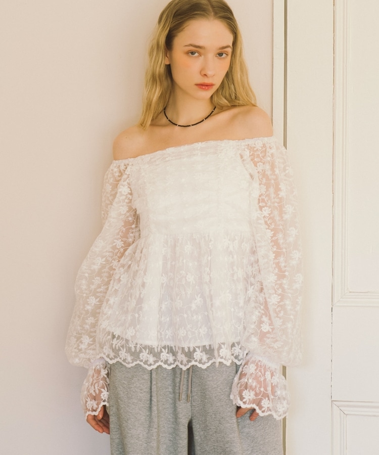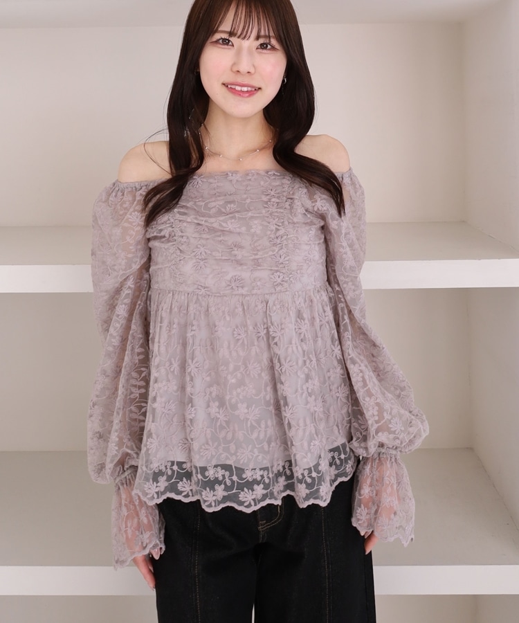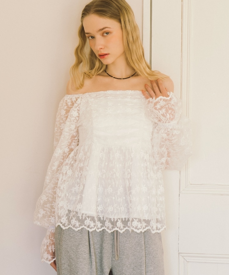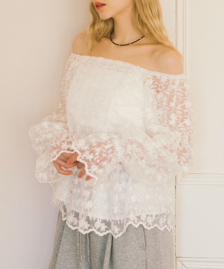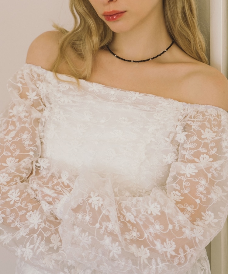 刺繍レース2wayオフショルブラウス
