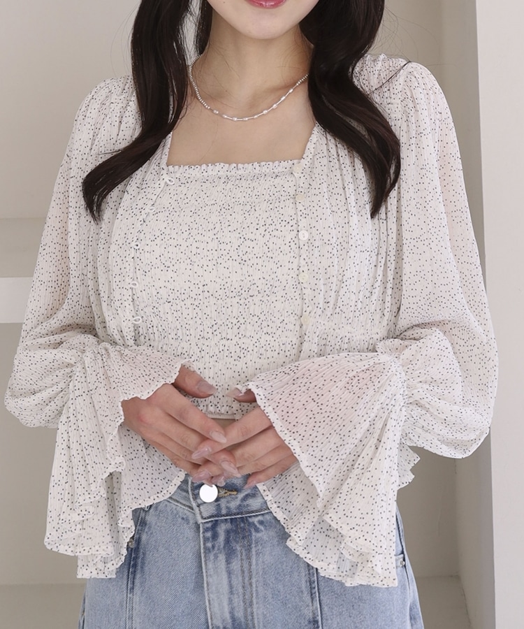 ドットアソート楊柳ブラウスアンサンブル OFF WHITE