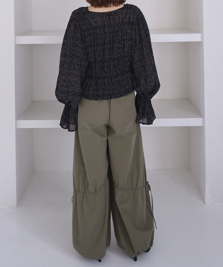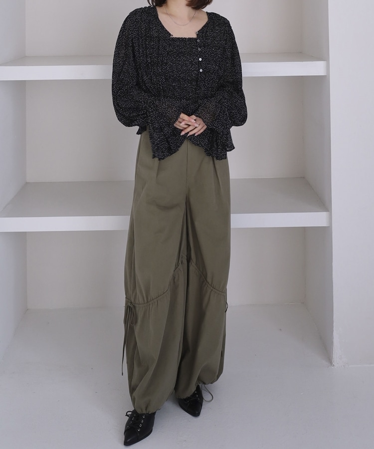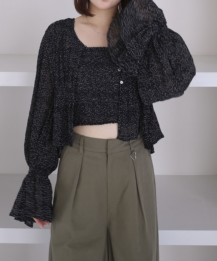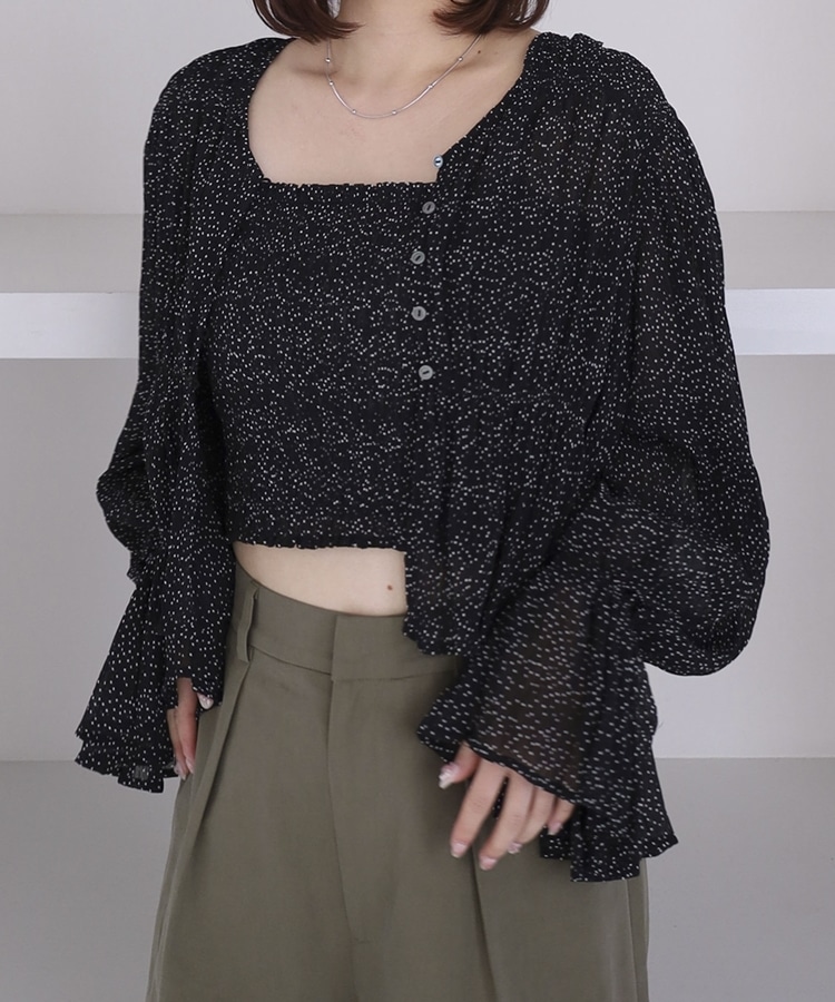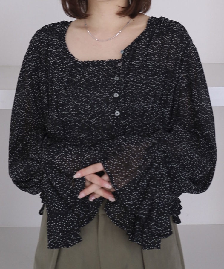 ドットアソート楊柳ブラウスアンサンブル BLACK