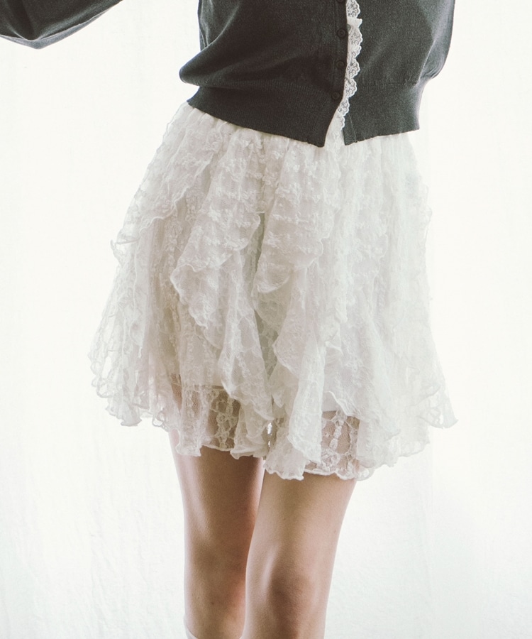 ■甘めもレイヤードも楽しめるミニ■【デザイン】・透け感レースと立体感のあるデザインで華やか見え・ペチコートは取り外し可能なのでレイヤードスタイリングも楽しめます。・短すぎないミニ丈でソックス合わせも、レイヤードした時も裾から見える丈感♪・どんなトップスにレースをMIXしてトレンドコーデに!【素材感】・透け感のあるレース素材で高見え・取り外せるインパンは同色系なので透け感も安心ですーーーーーーーーーーーーーーー透け感:オフホワイトのみややあり裏地:あり伸縮性:インナーあり光沢感:なし生地厚さ:普通洗濯方法:手洗い推奨※詳しいお手入れ方法は商品についているタグをご覧くださいーーーーーーーーーーーーーーー※ご利用のモニター環境により、実際の色味と多少異なる場合がございます。【スタイリング】・甘めトップスでフェミニンに・デニムやJKと重ねてトレンドのレイヤードスタイリングがおすすめ▼スタッフ別の詳しい着こなしは下のCOORDINATEをチェック