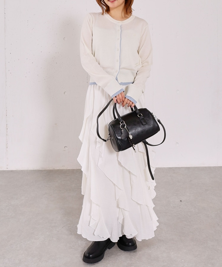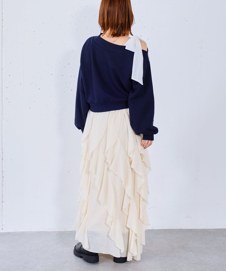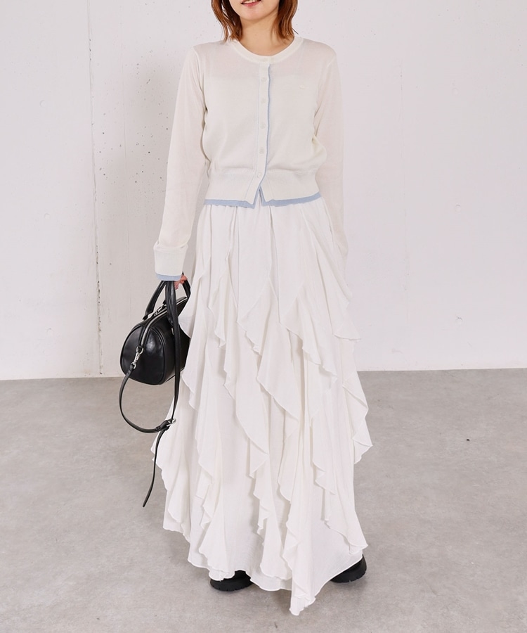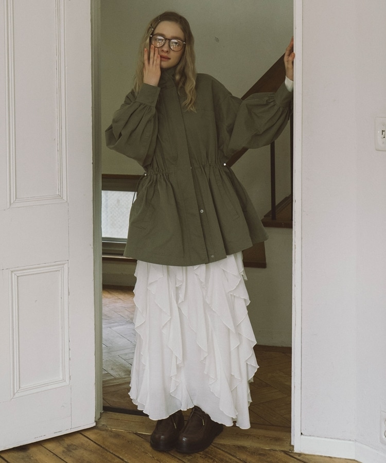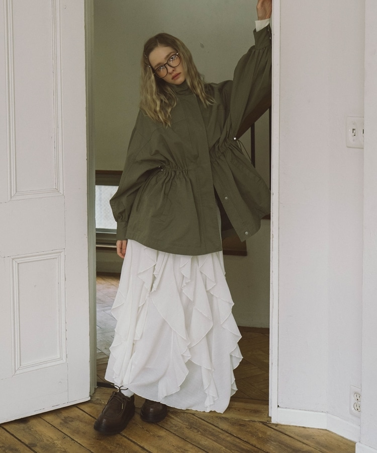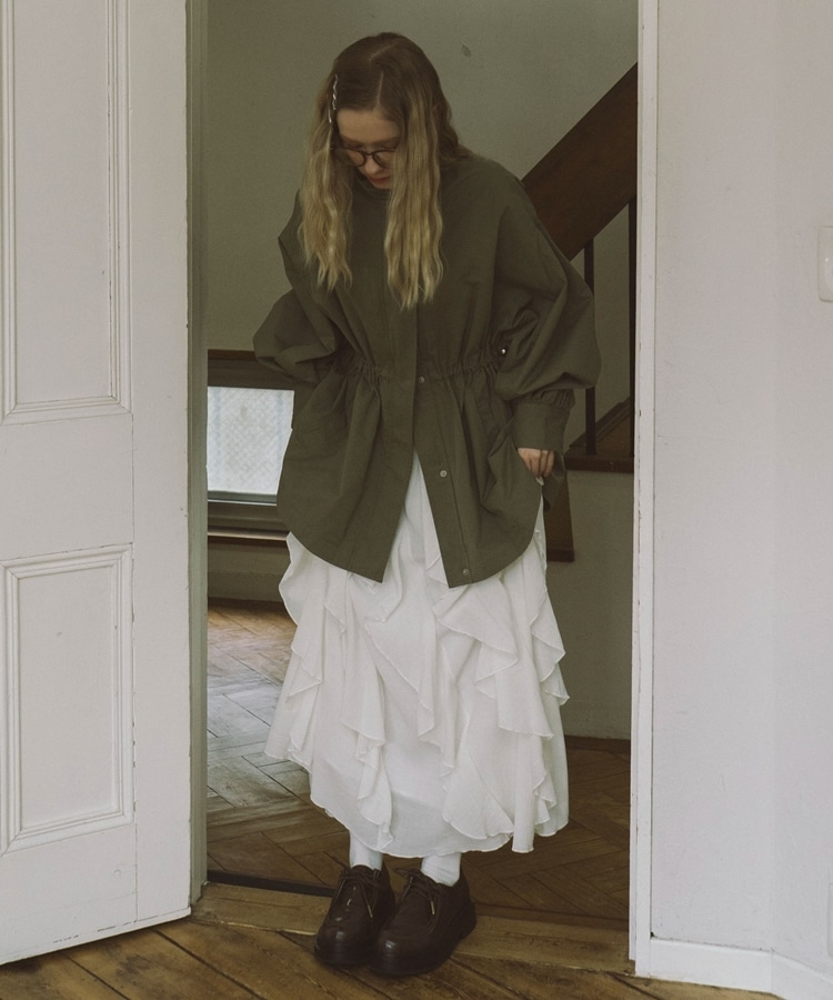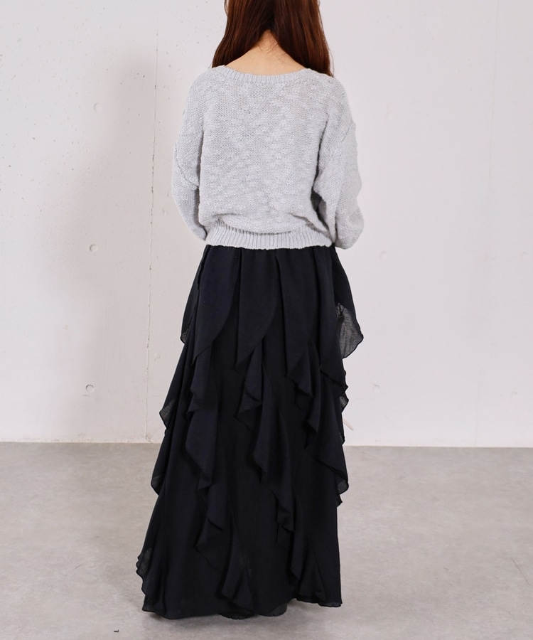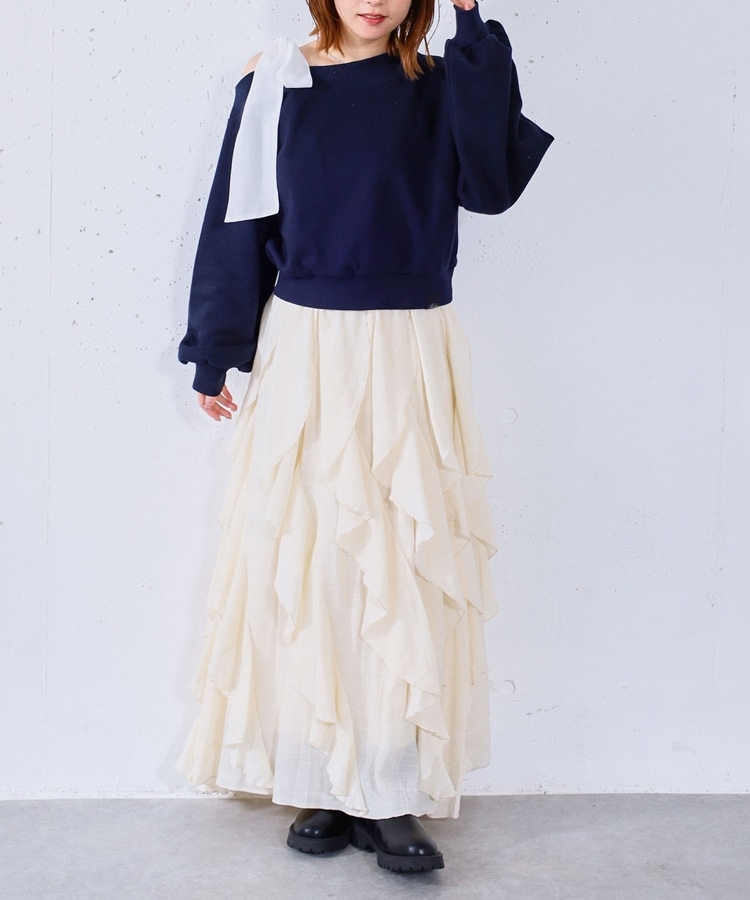 ■一味違ったボリュームデザインスカート■【デザイン】・何重にも重なったボリュームラッフル・動くたびに揺れるので春気分も上昇・ボリュームを出しつつも広がらない作り・ウエストはゴム仕様で、ストレスフリーで履いていただけます・カラー展開は使いやすい3色展開【素材感】・レーヨン混で広がりが少なく落ち感のある素材・表面感のある生地で、カジュアルな印象で穿いていただけますーーーーーーーーーーーーーーー透け感:なし裏地:あり伸縮性:あり光沢感:なし生地厚さ:普通洗濯方法:手洗い推奨※詳しいお手入れ方法は商品についているタグをご覧くださいーーーーーーーーーーーーーーー※ご利用のモニター環境により、実際の色味と多少異なる場合がございます。【スタイリング】・ボリュームのあるスカートはコンパクトなトップスと相性◎・今季おすすめブルゾンとスタイリングが一押し・スウェットなどでラフに合わせるのもおすすめ▼スタッフ別の詳しい着こなしは下のCOORDINATEをチェック