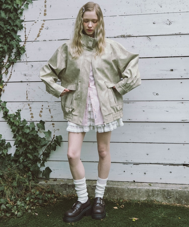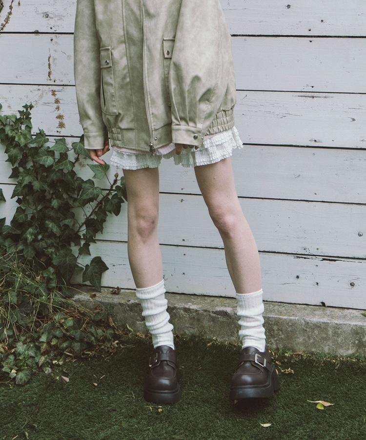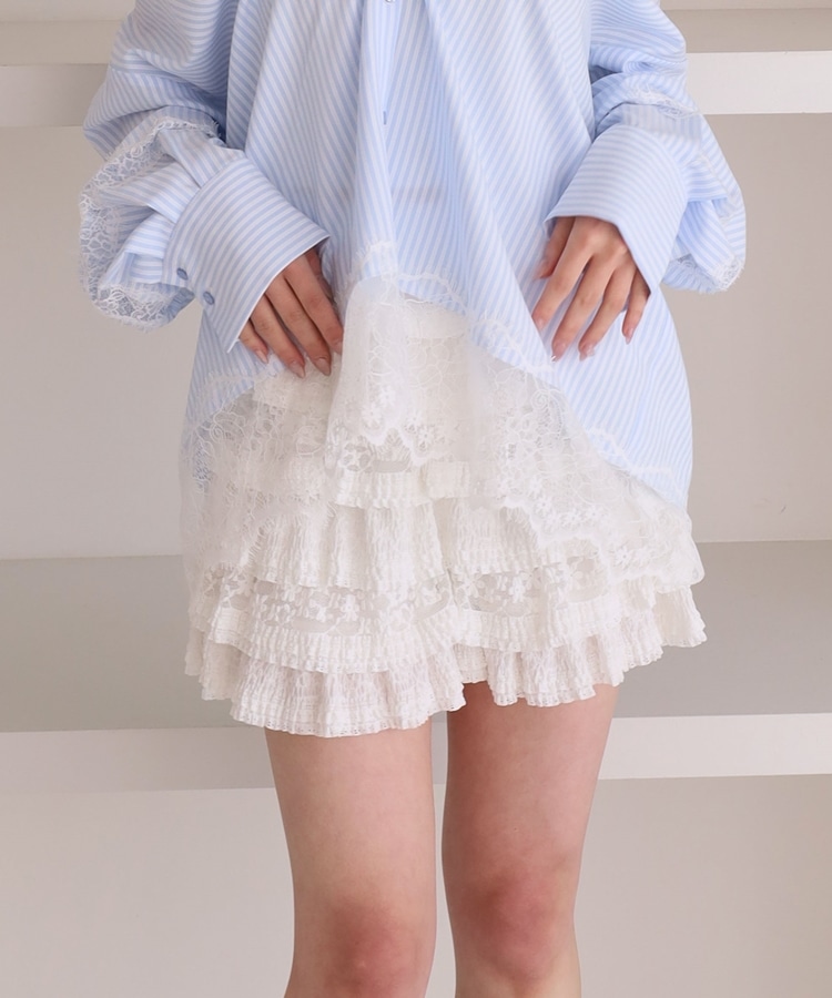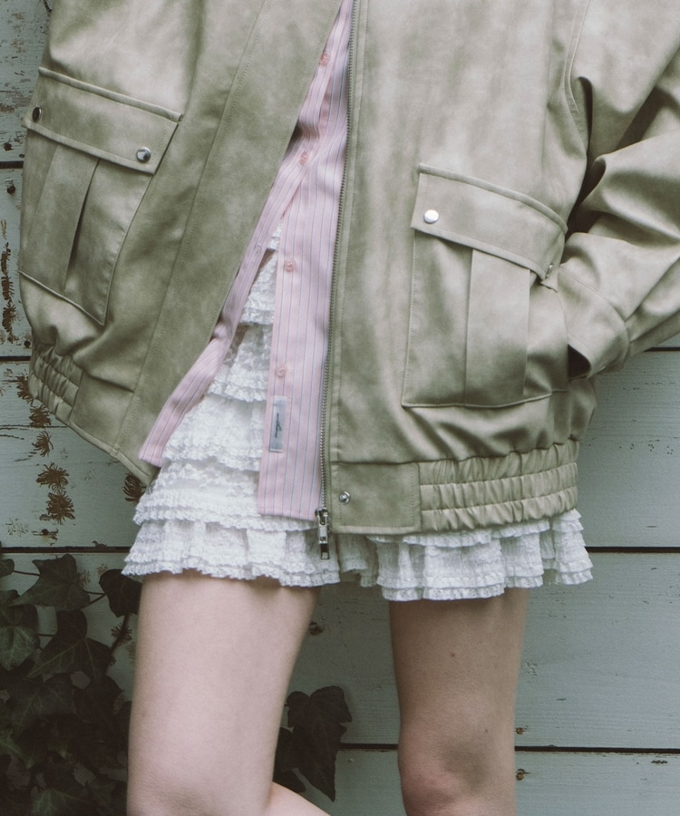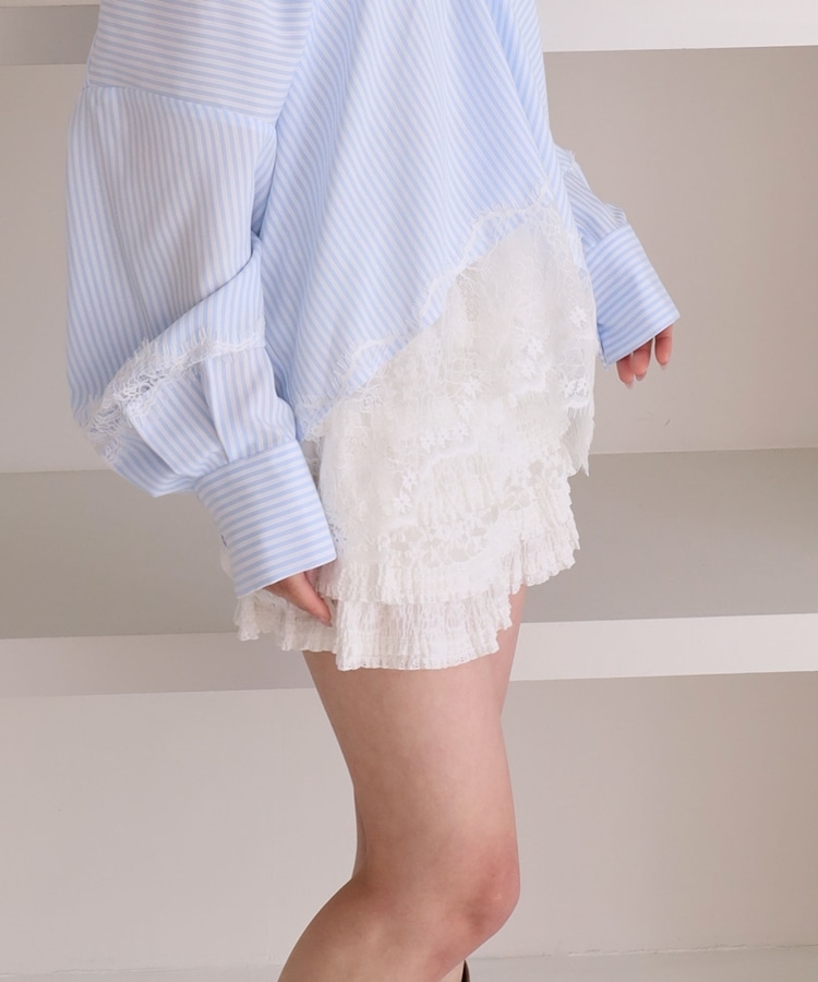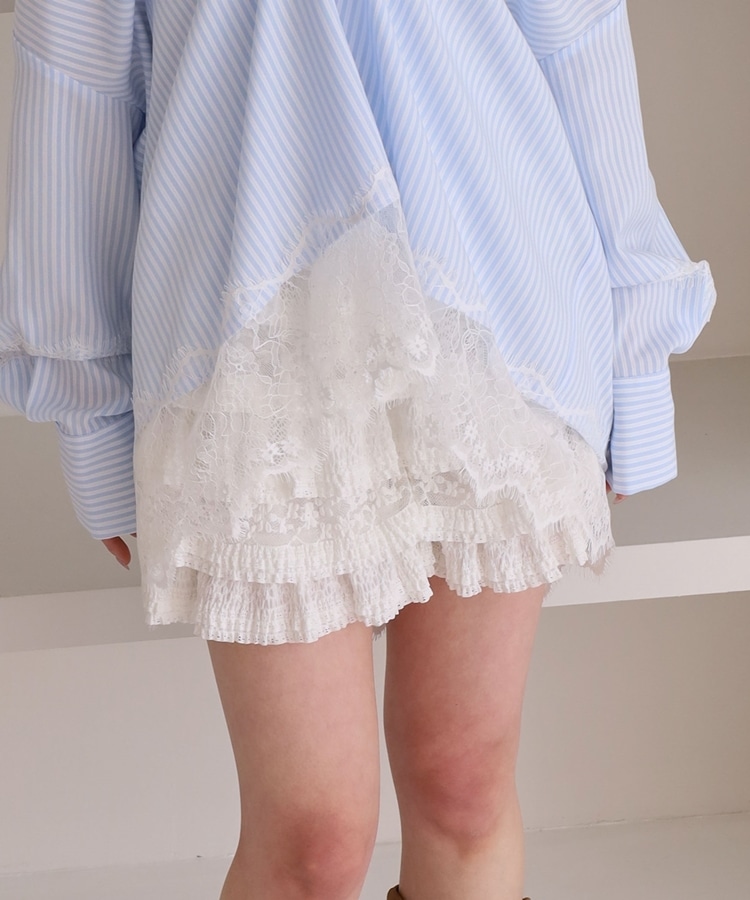 ・オーバーサイズなトップスからレースをチラ見背してアクセントに