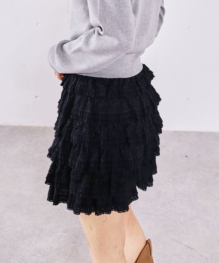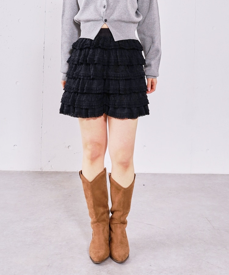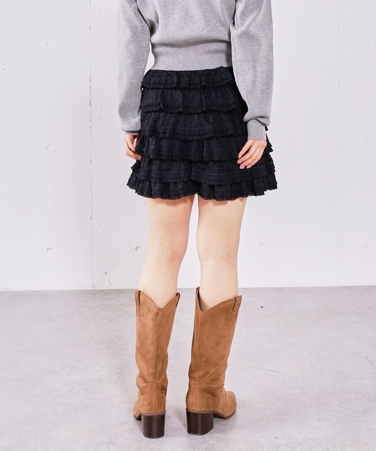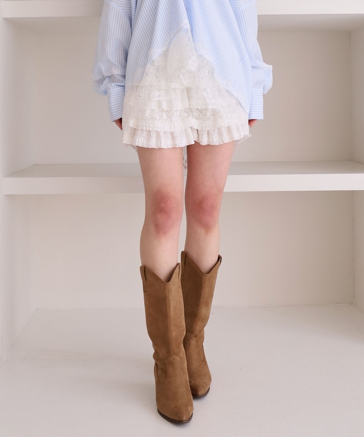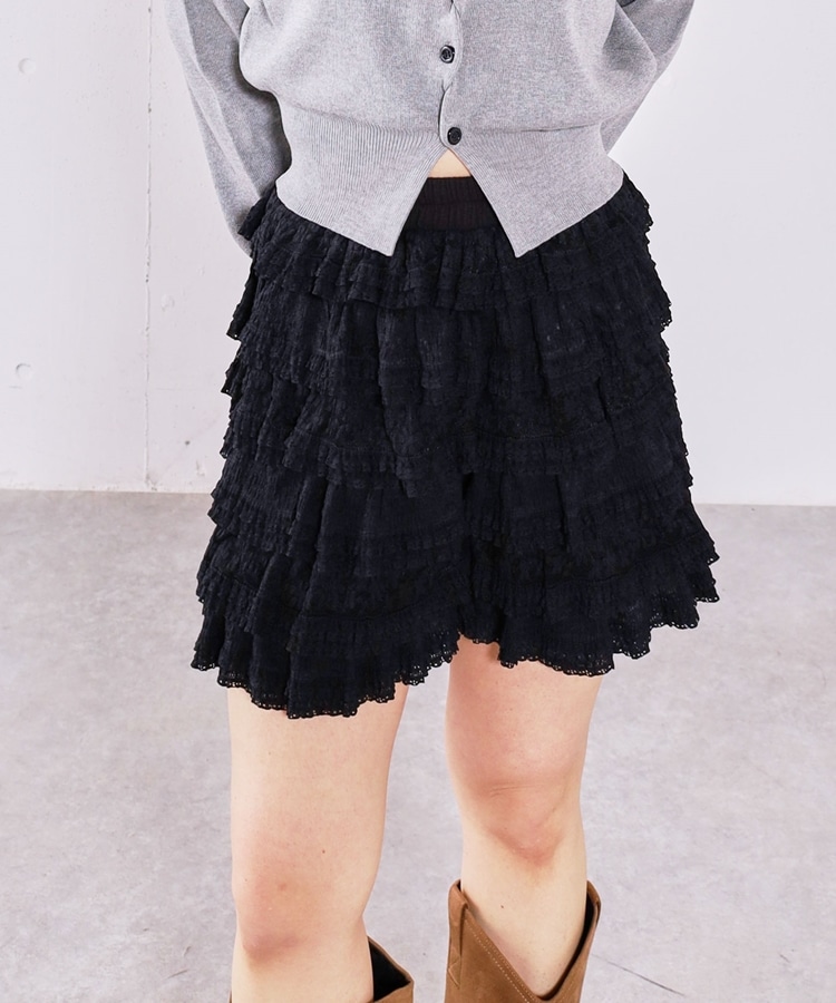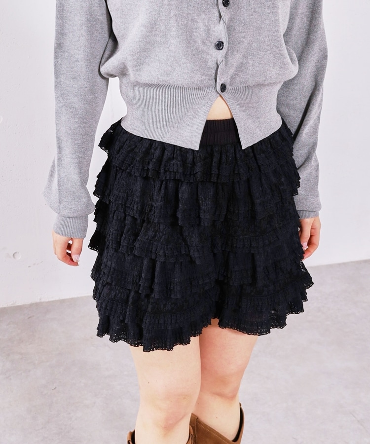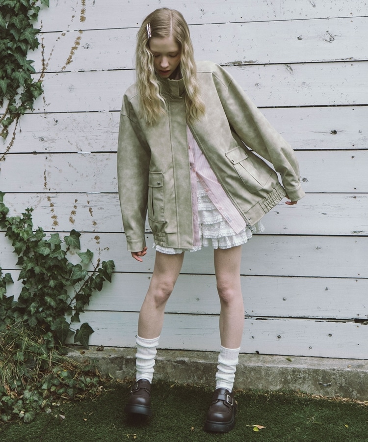 ・オーバーサイズなトップスからレースをチラ見背してアクセントに