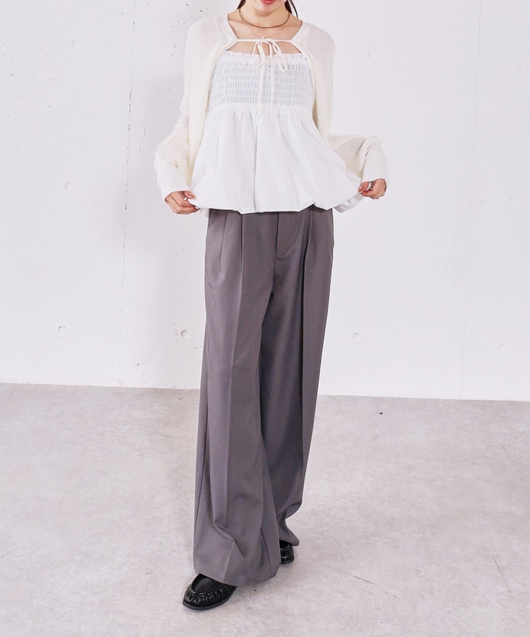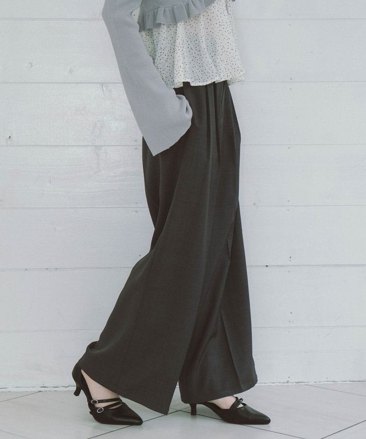 ■定番人気のスラックスにサイズが登場■【デザイン】・archivesで定番のワイドスラックス・今回は要望の多かったSサイズ・Mサイズの2サイズ展開!新しいSサイズは丈をMサイズよりも4cm短く、ウエストを2cm小さくしているので小柄なお客様にも綺麗にスラックスを穿いていただけます。・サラッとした生地で落ち感がありスタイルアップして見えます・ウエストにはタックを入れ気になる腰回りをカバーしてくれます【素材感】・サラッとしたオンオフ使える素材・張り感が少ないのでオフでもカチッとならずに使えますーーーーーーーーーーーーーーー透け感:なし裏地:なし伸縮性:あり光沢感:なし生地厚さ:普通洗濯方法:洗濯可※詳しいお手入れ方法は商品についているタグをご覧くださいーーーーーーーーーーーーーーー※ご利用のモニター環境により、実際の色味と多少異なる場合がございます。【スタイリング】・落ち感のあるパンツなのでふんわりとボリュームのあるチュニックと◎・ジャケットを羽織ればきちんとしたお出かけスタイルにもぴったり▼スタッフ別の詳しい着こなしは下のCOORDINATEをチェック【スタッフ着用コメント】