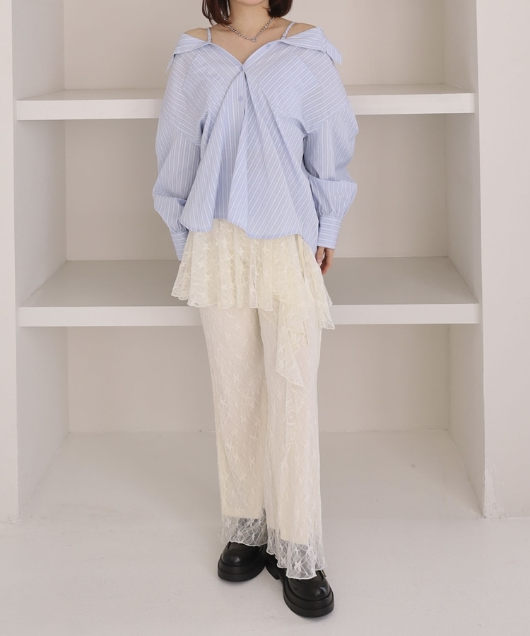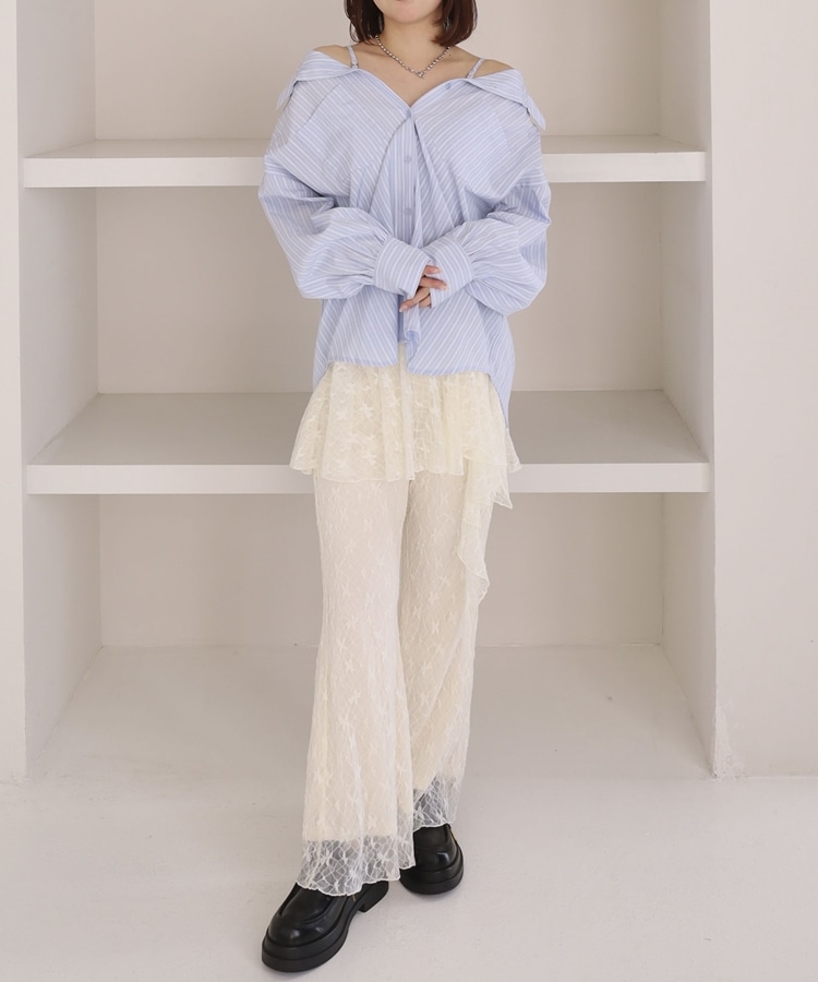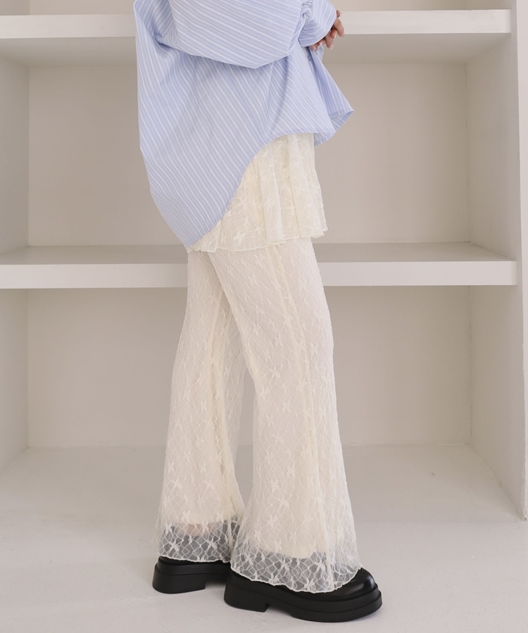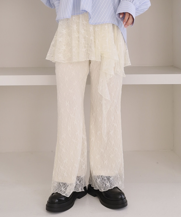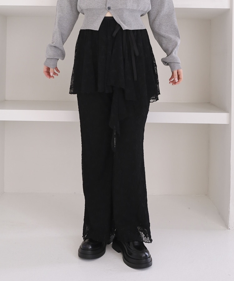 ・フレアレースパンツとラップスカートがセットになった旬デザイン