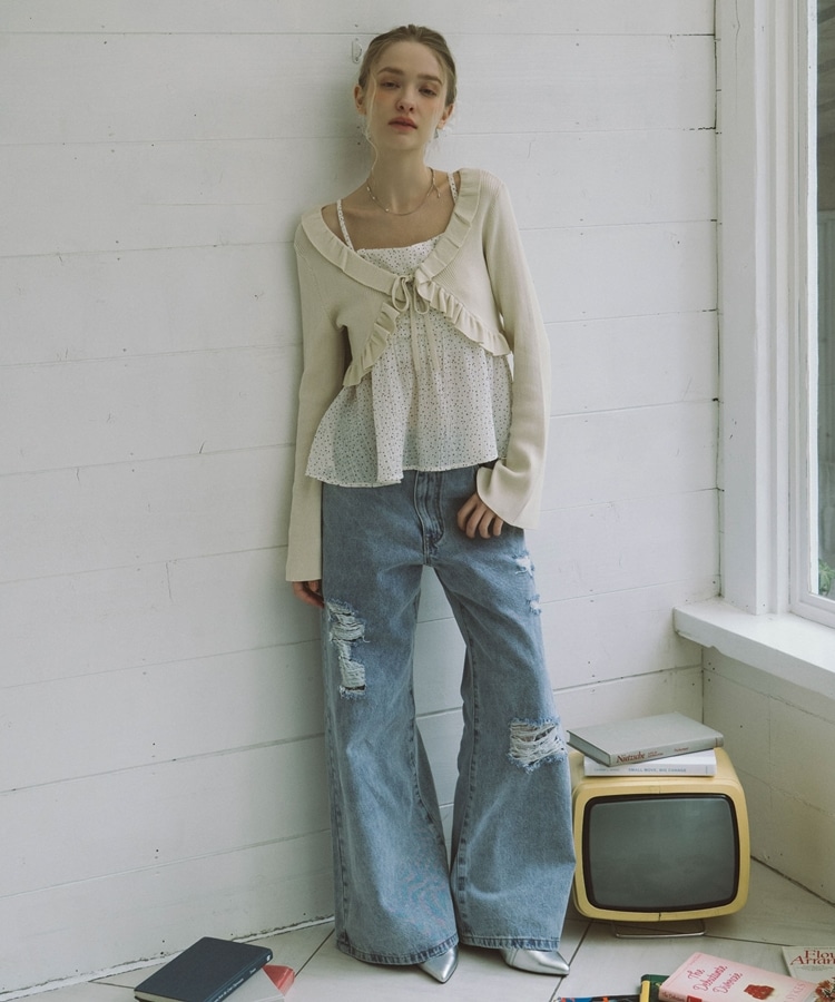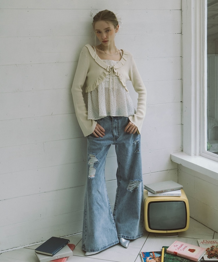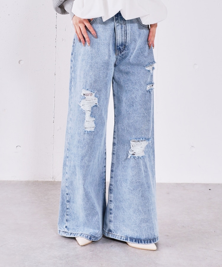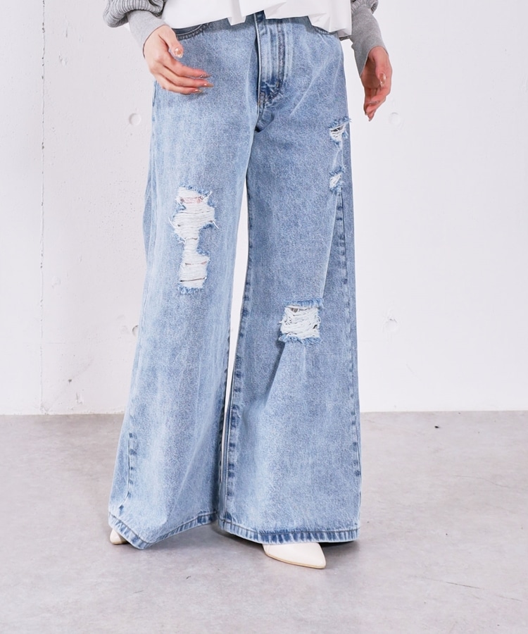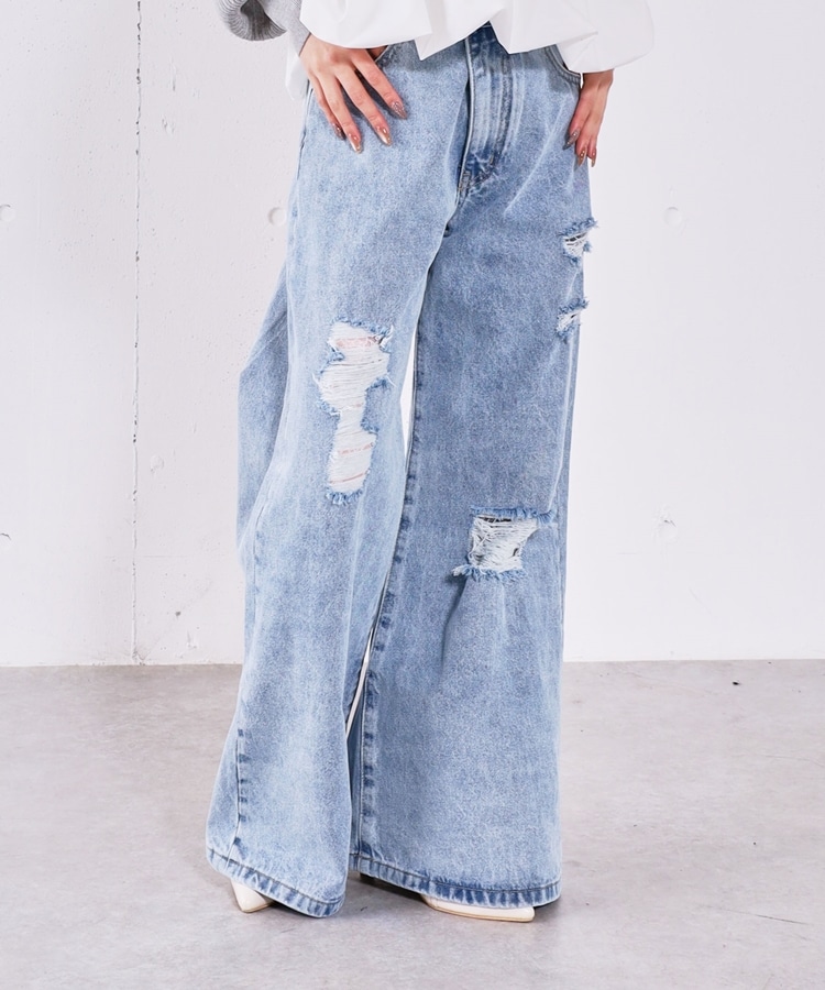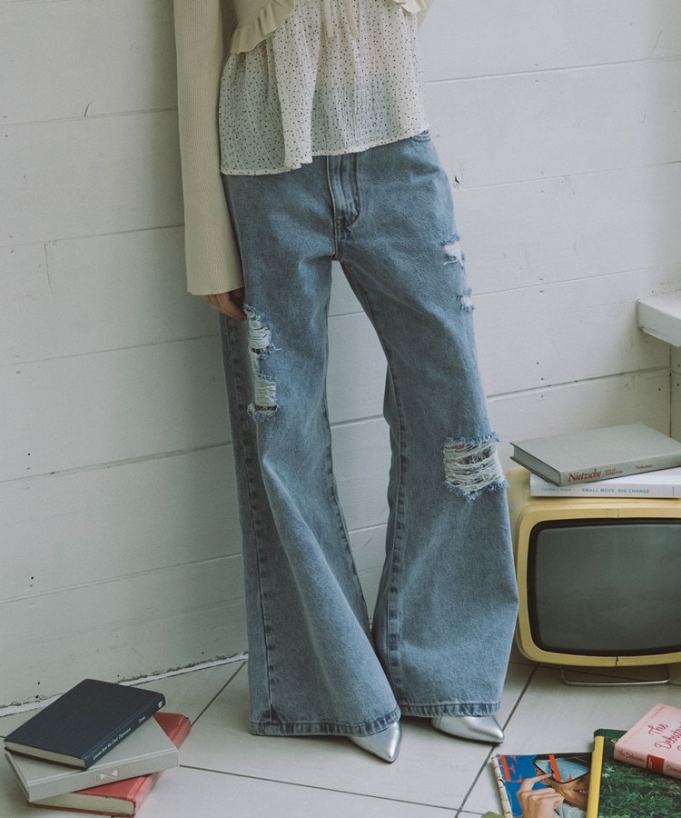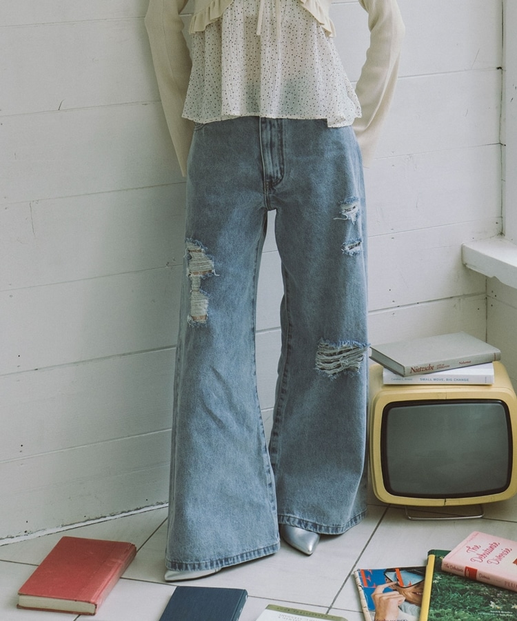 ダメージレースフレアデニム