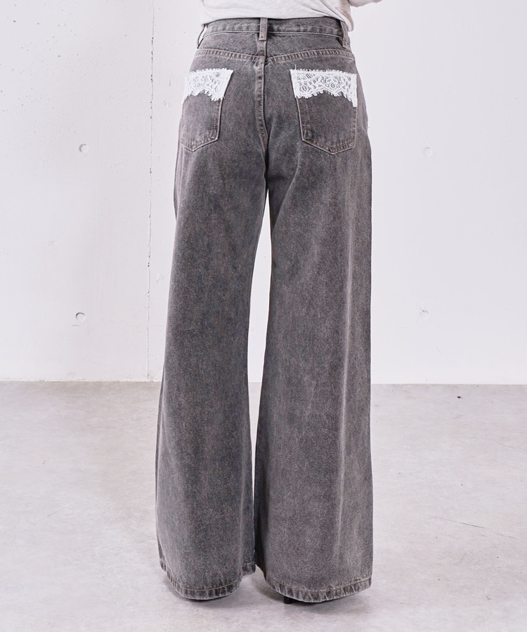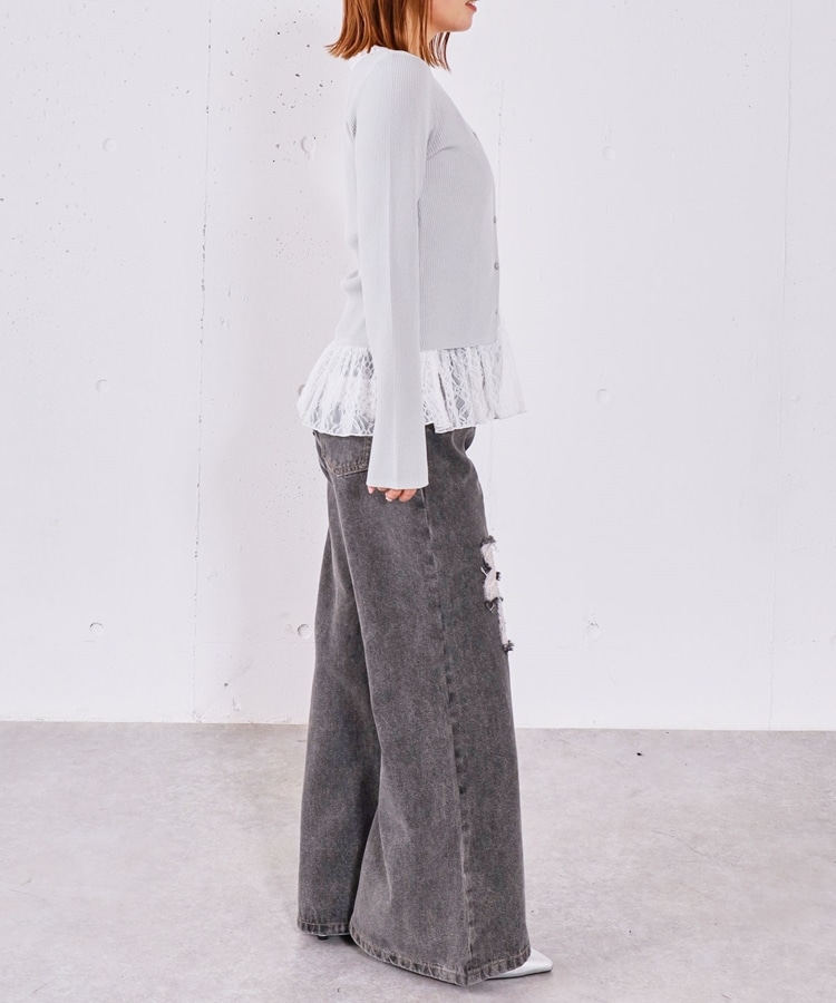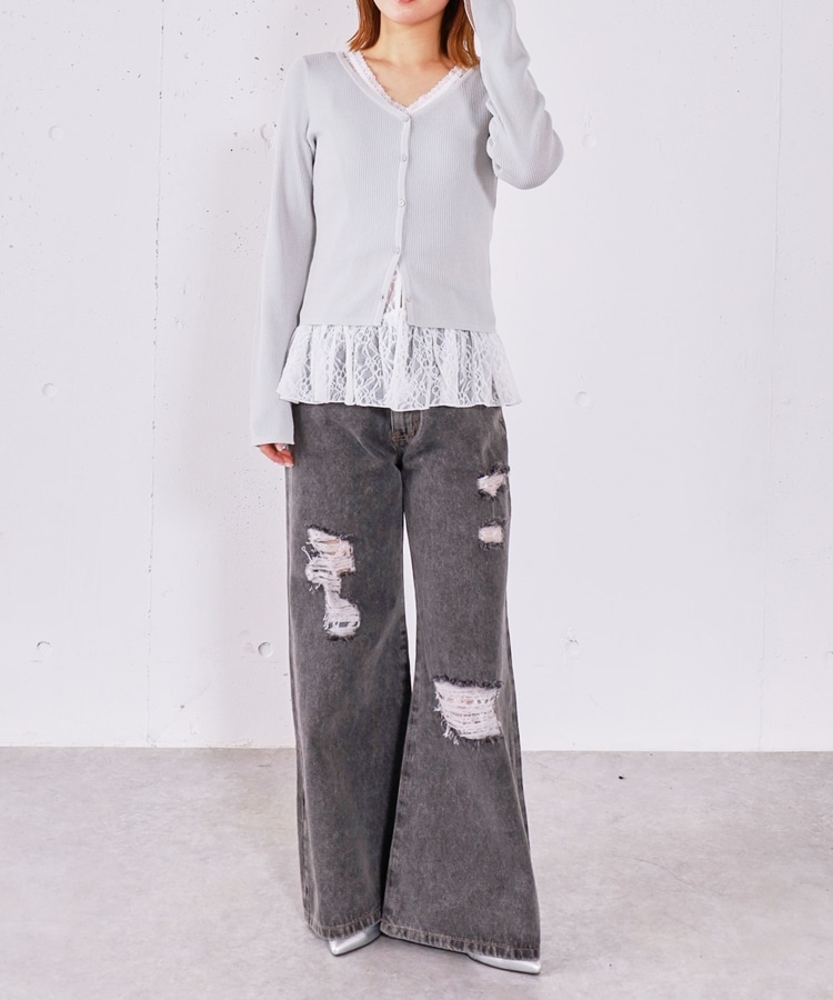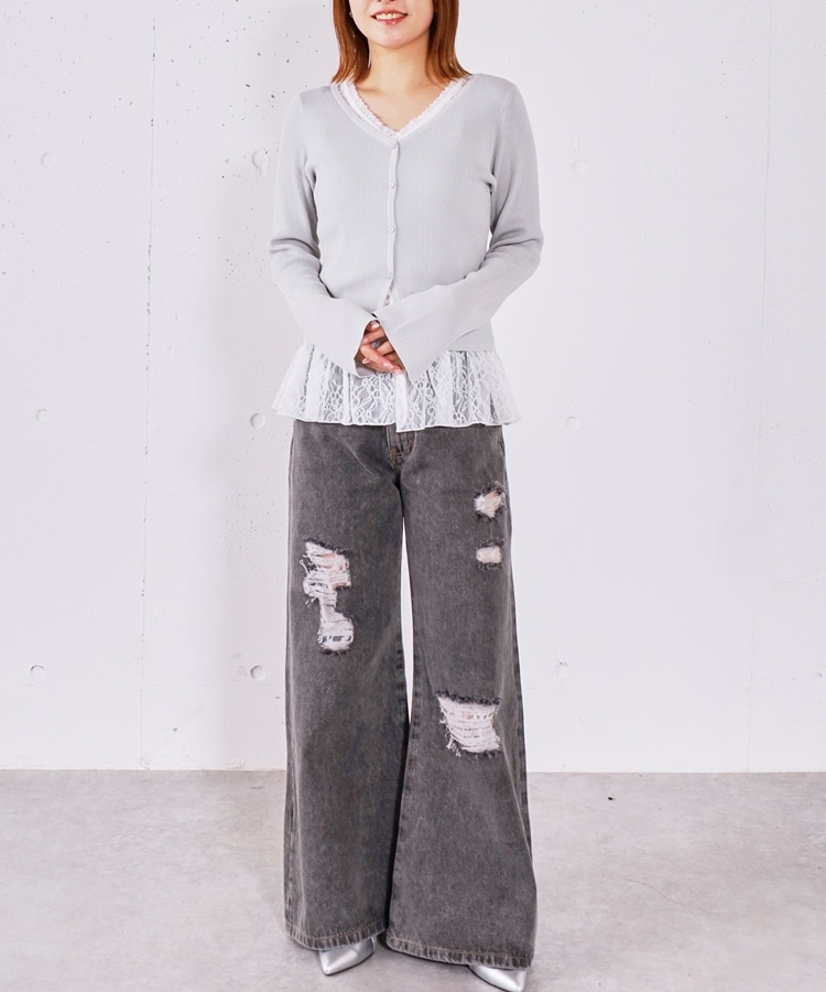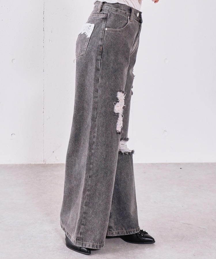 ダメージレースフレアデニム GRAY