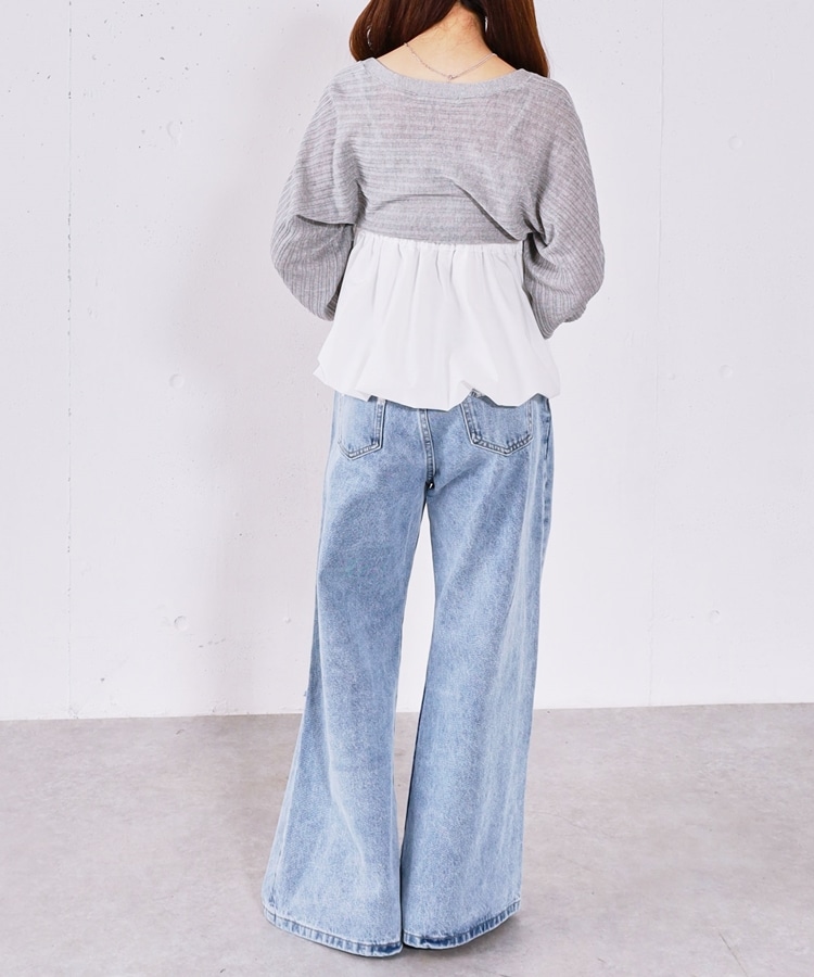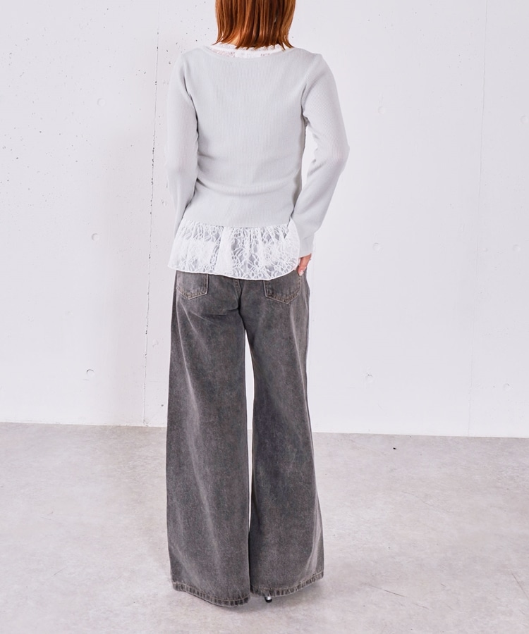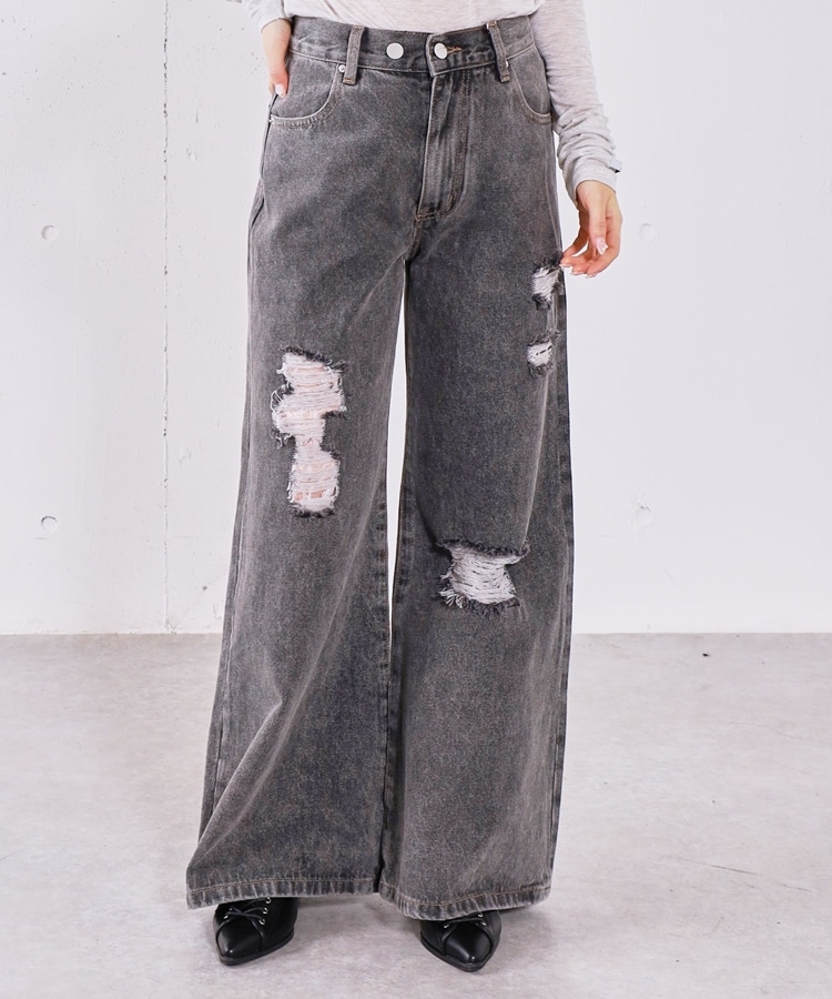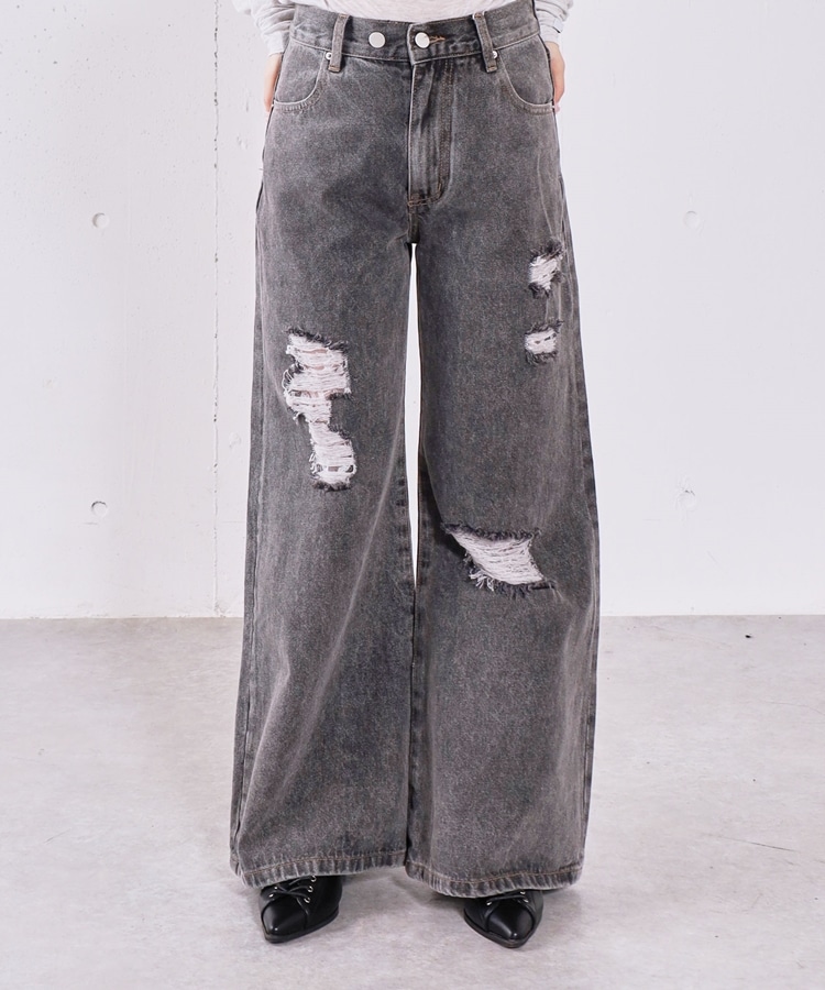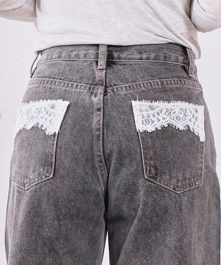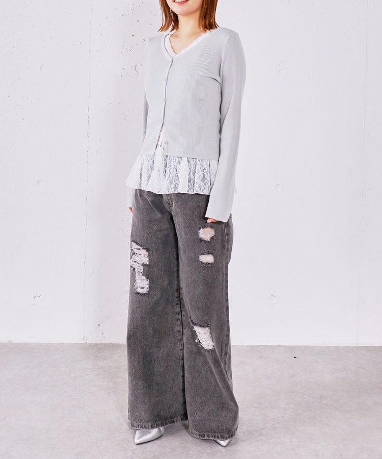 ダメージレースフレアデニム GRAY