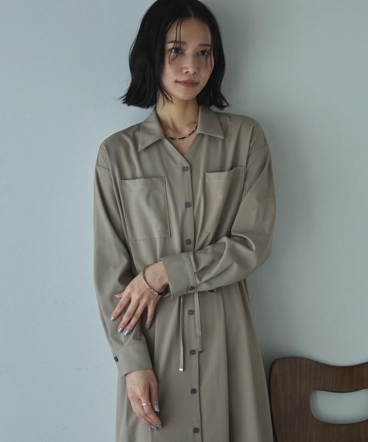 開襟ドロストシャツワンピース CHARCOAL GRAY