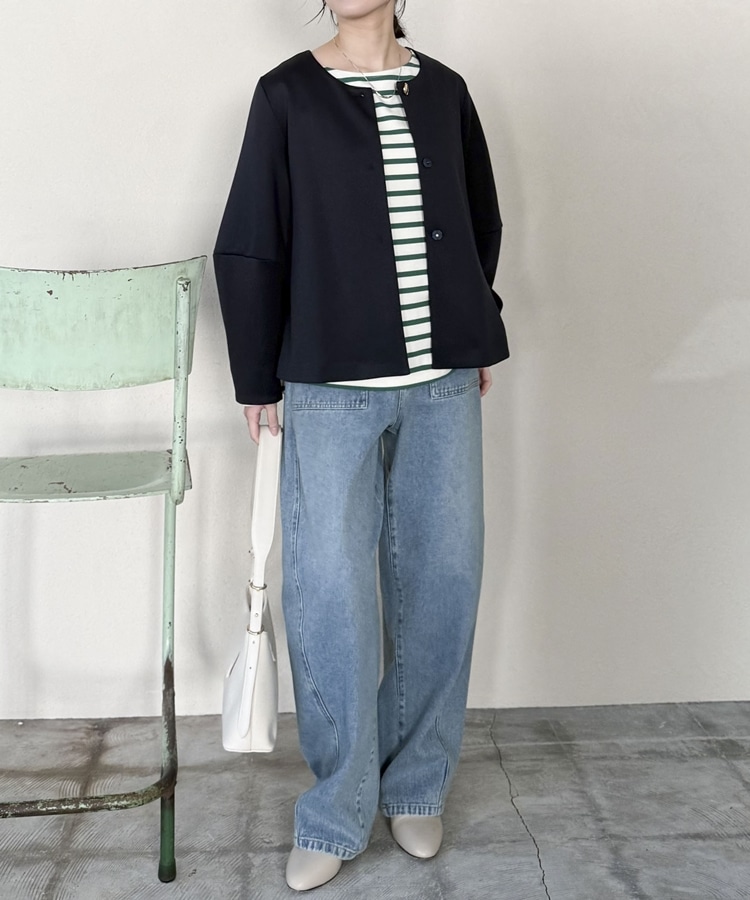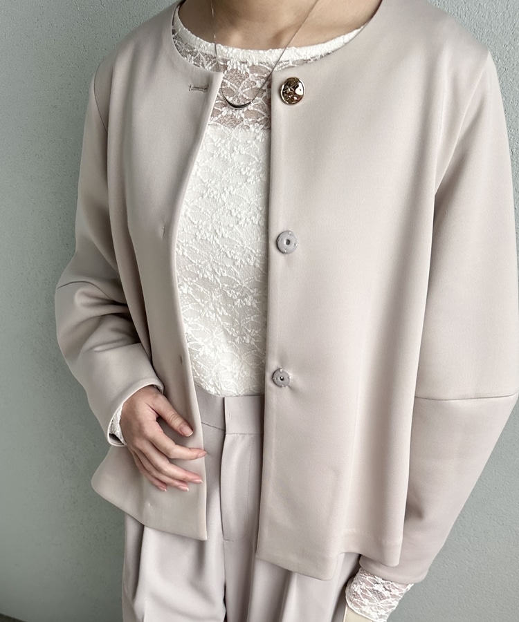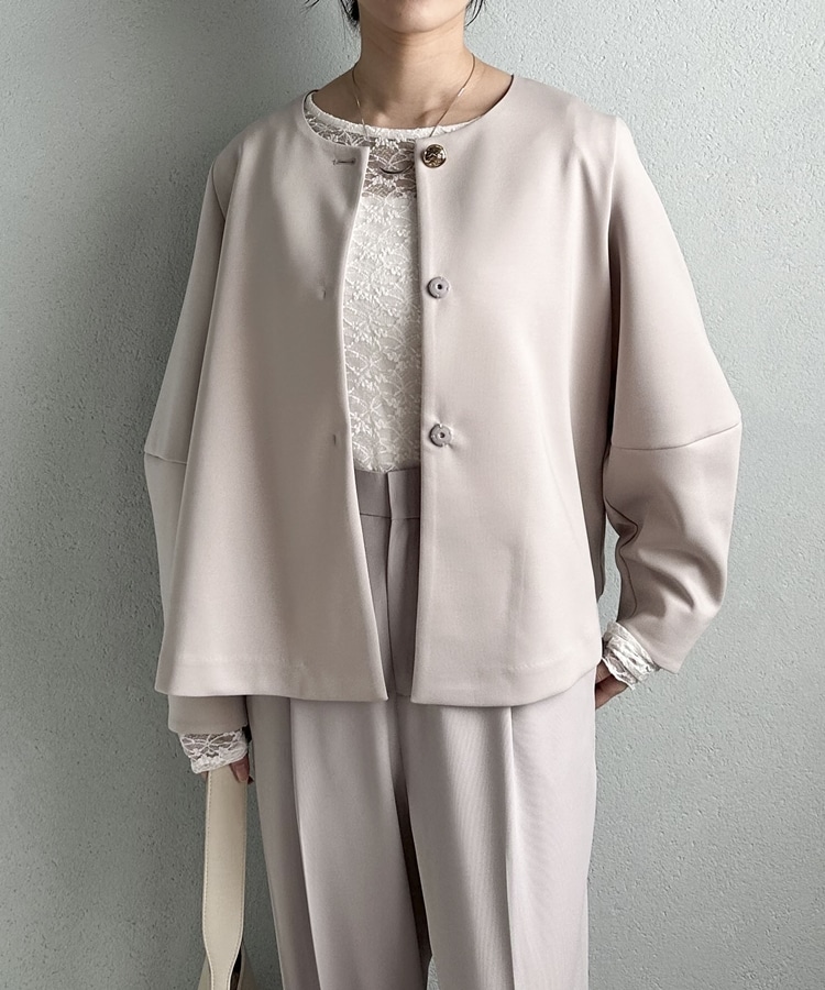 セレモニーにも活躍!品があり柔らかな雰囲気のノーカラージャケット