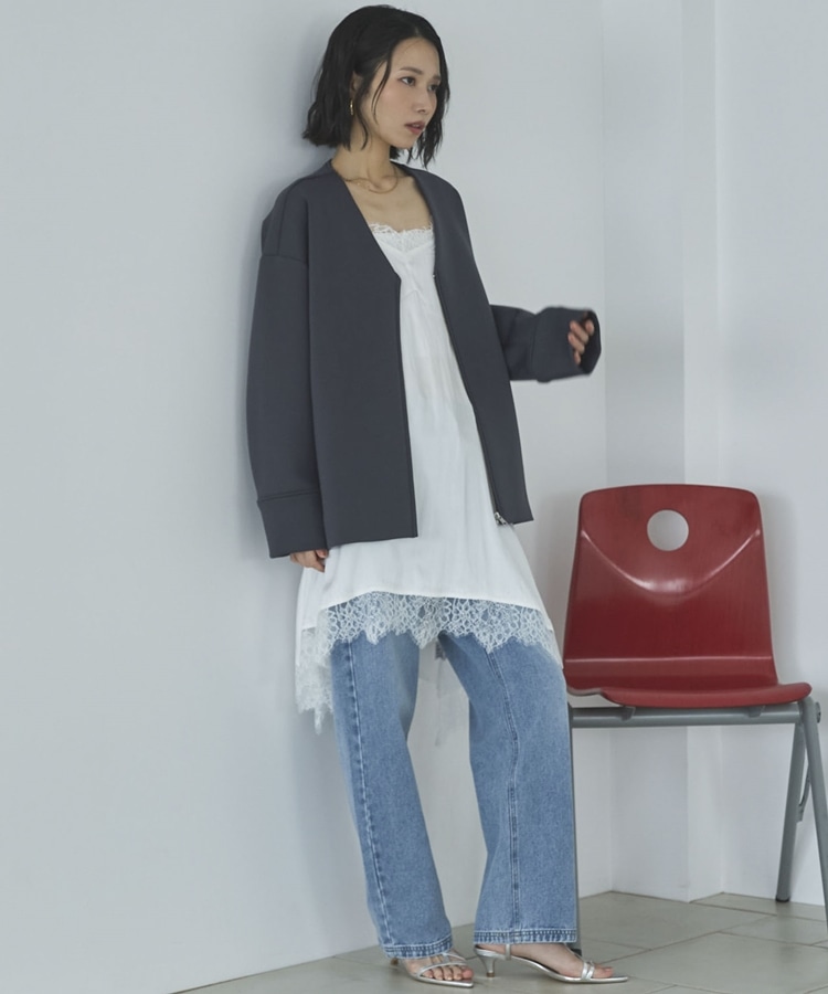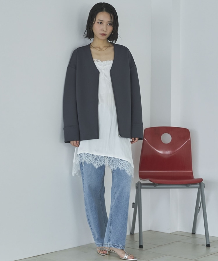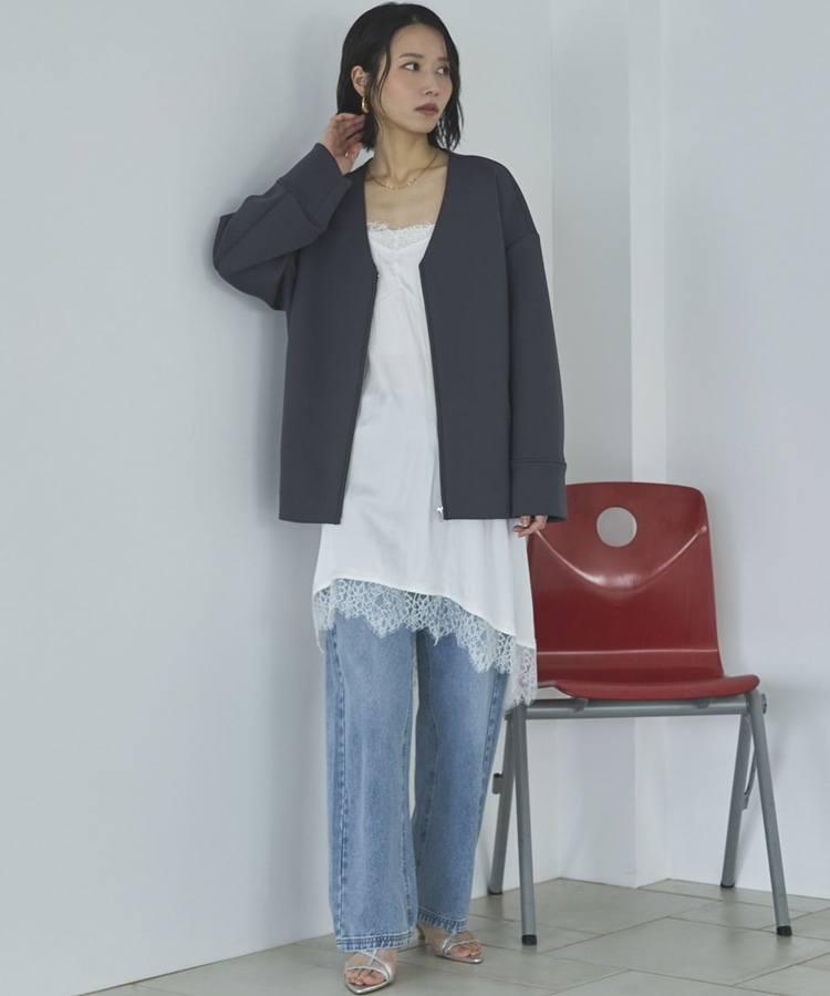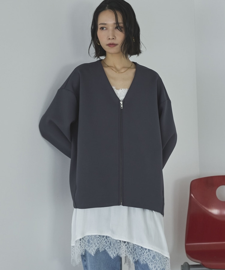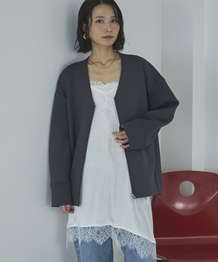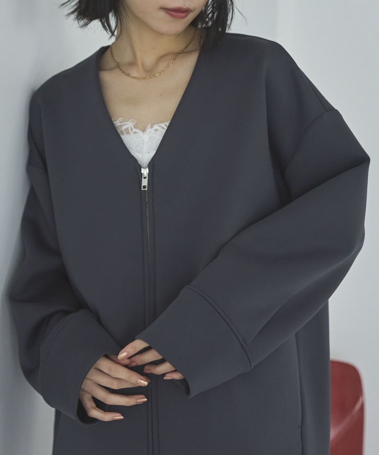 ボンディングノーカラーZIPブルゾン