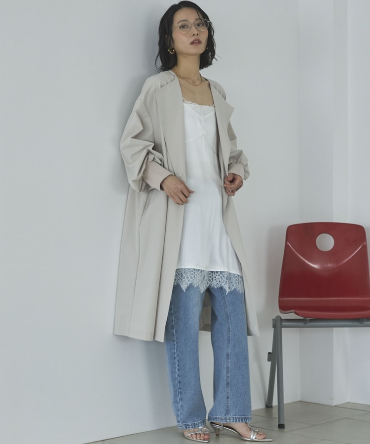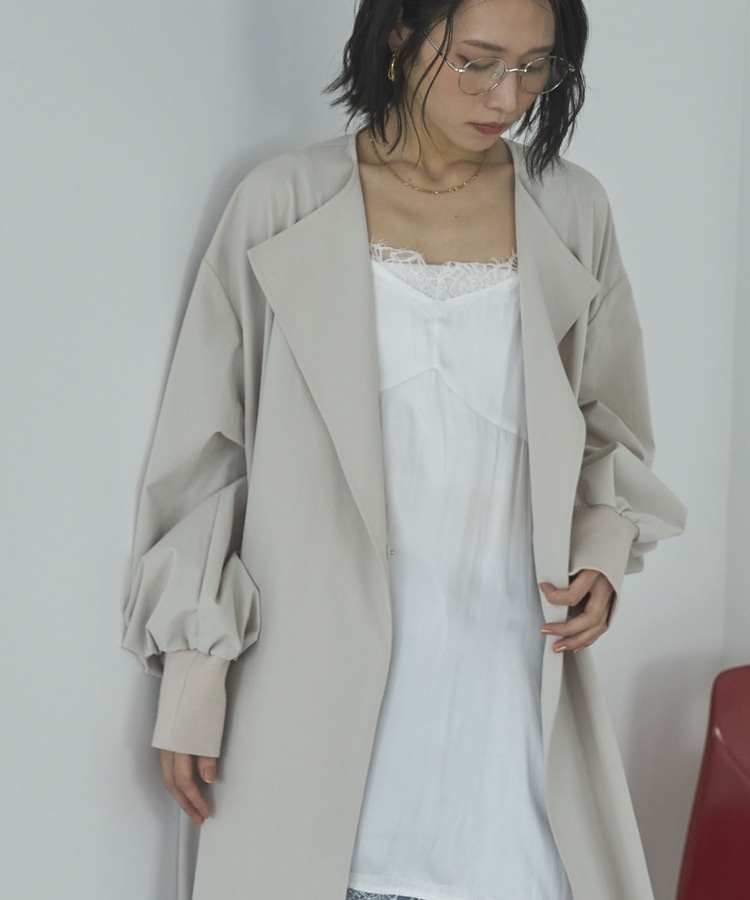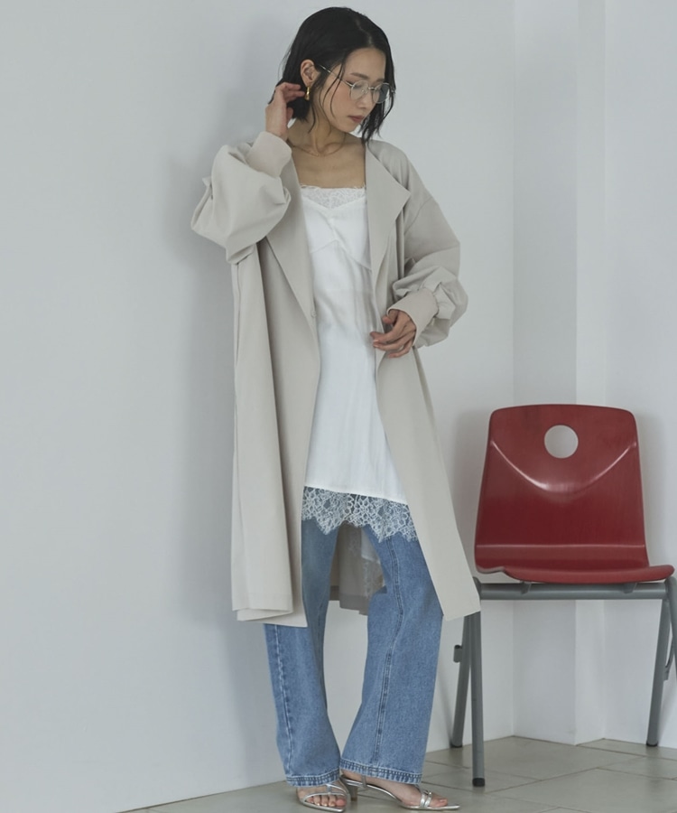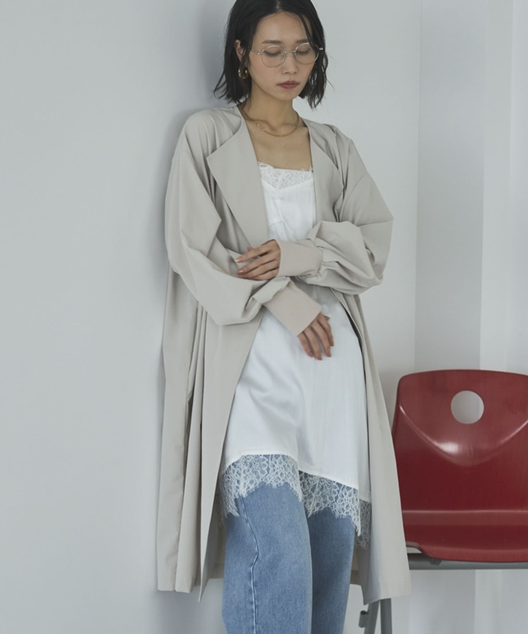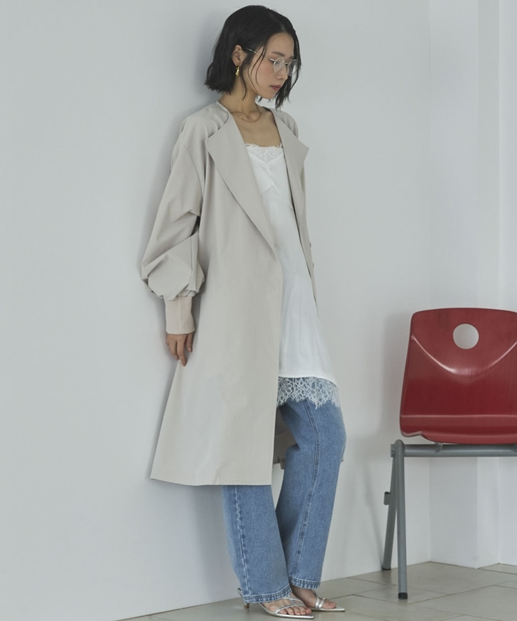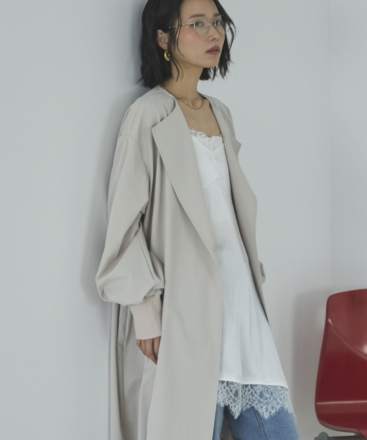 ノーカラーロングコート BEIGE