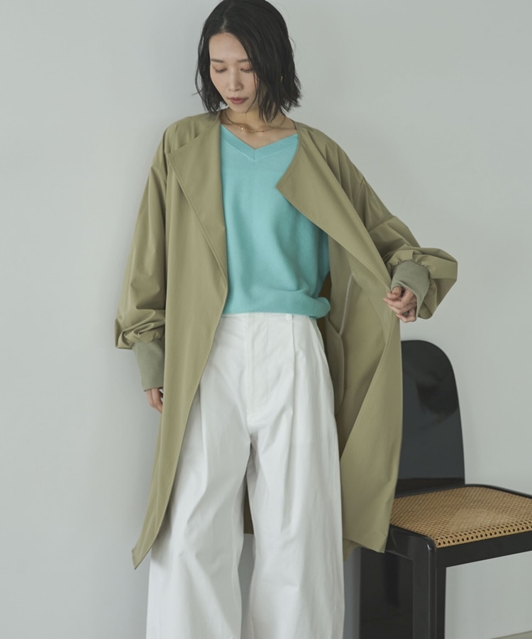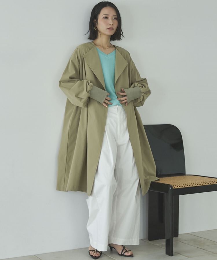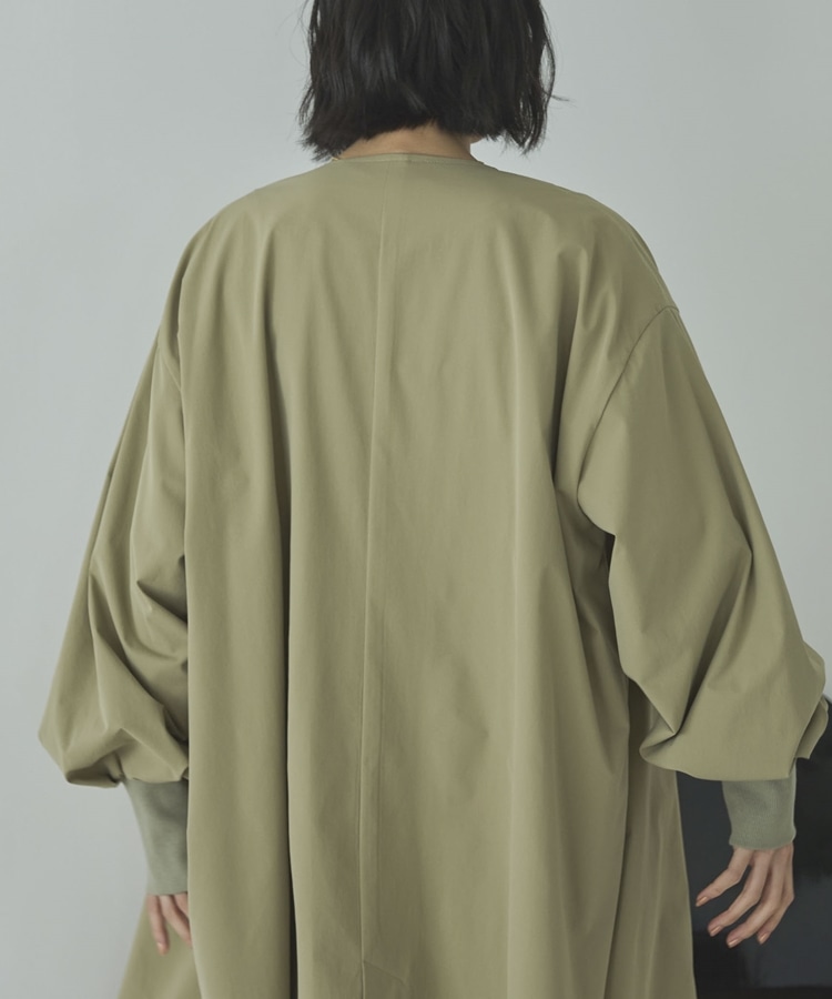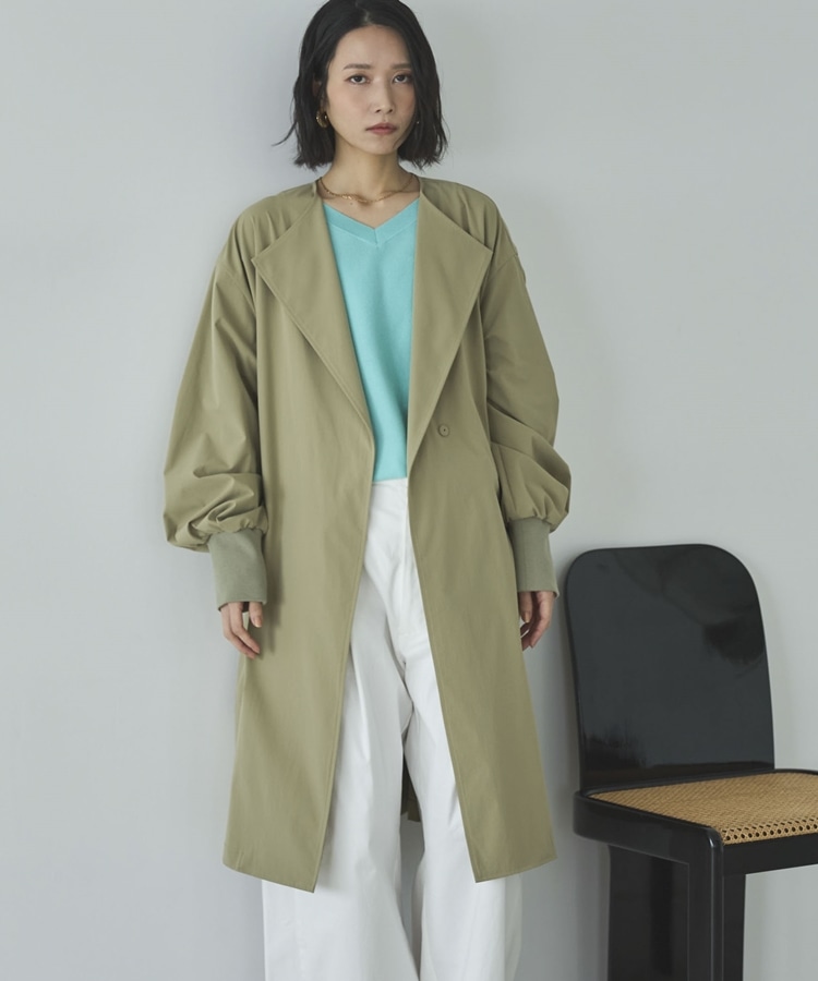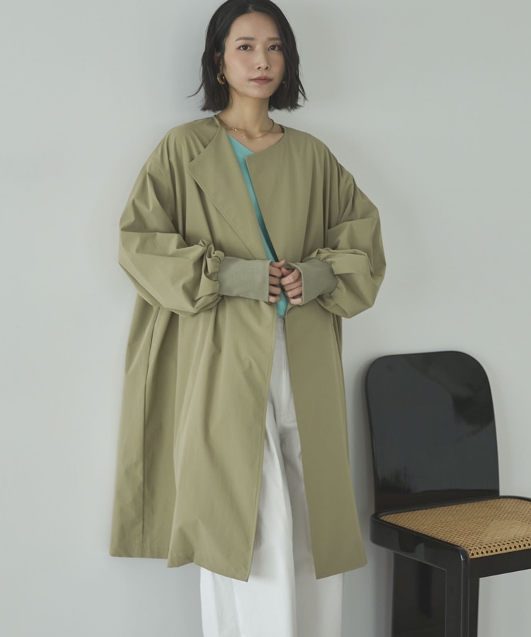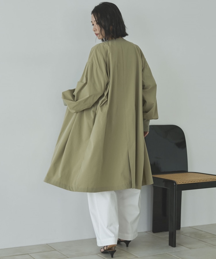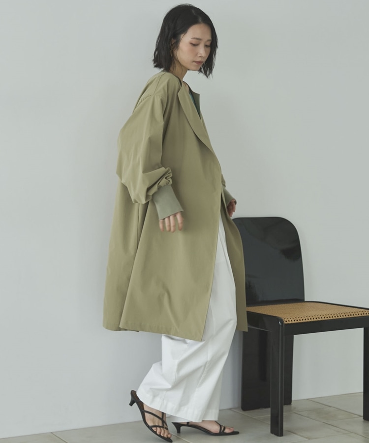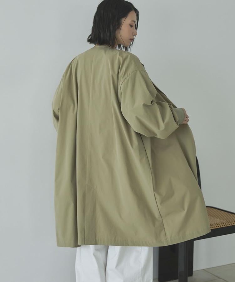 ノーカラーロングコート KHAKI