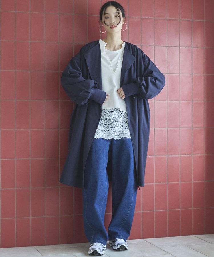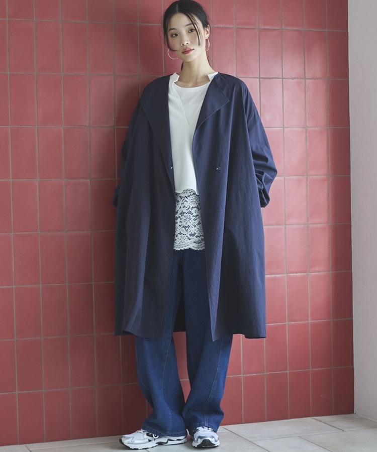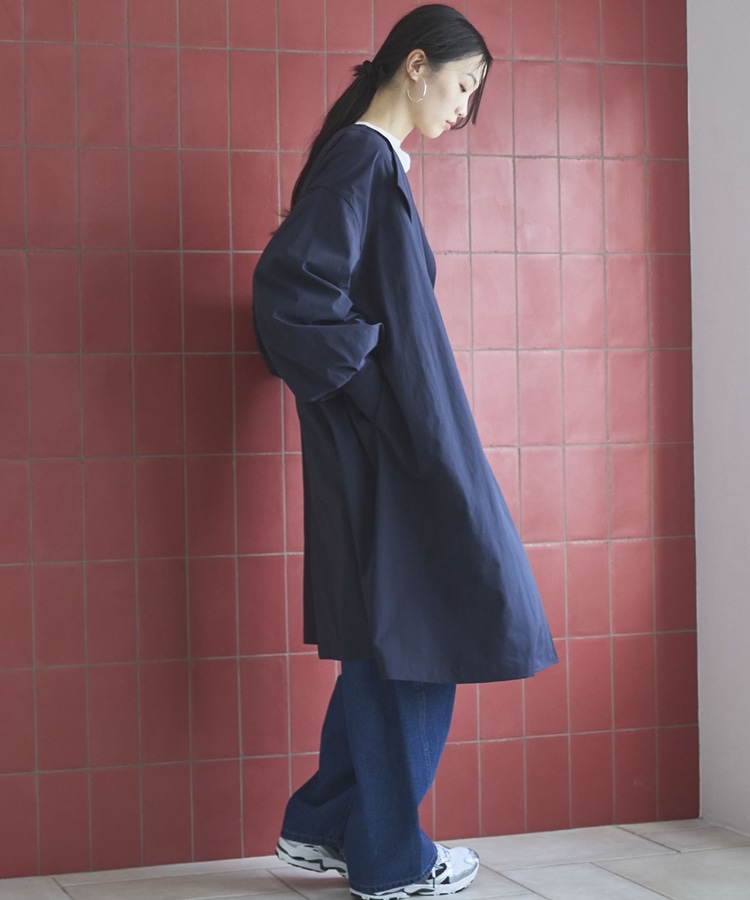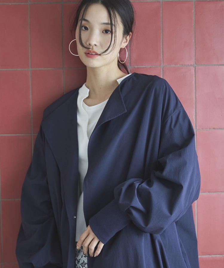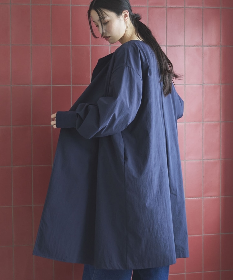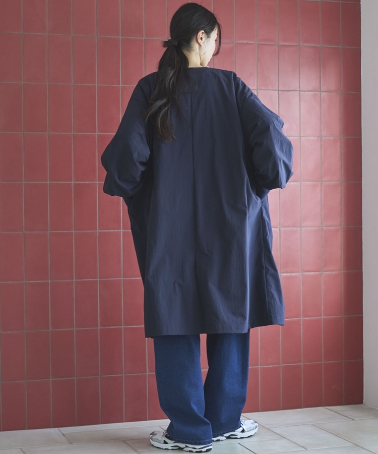 ノーカラーロングコート NAVY