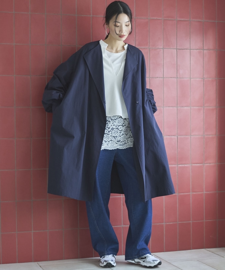 ノーカラーロングコート