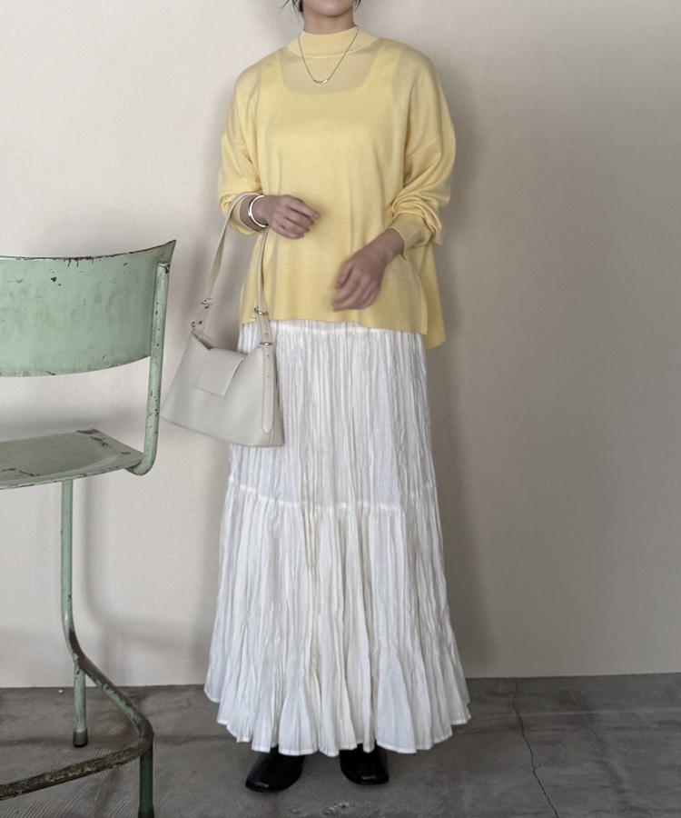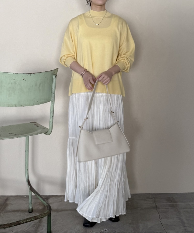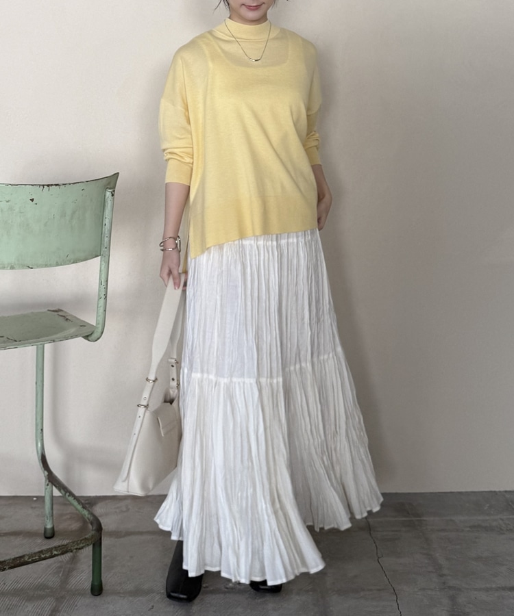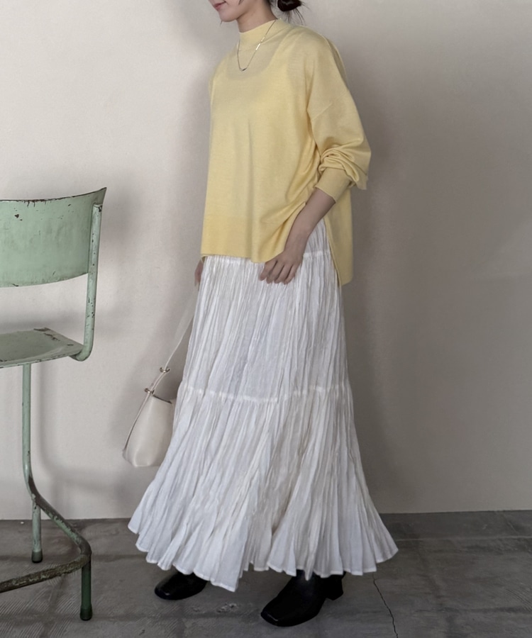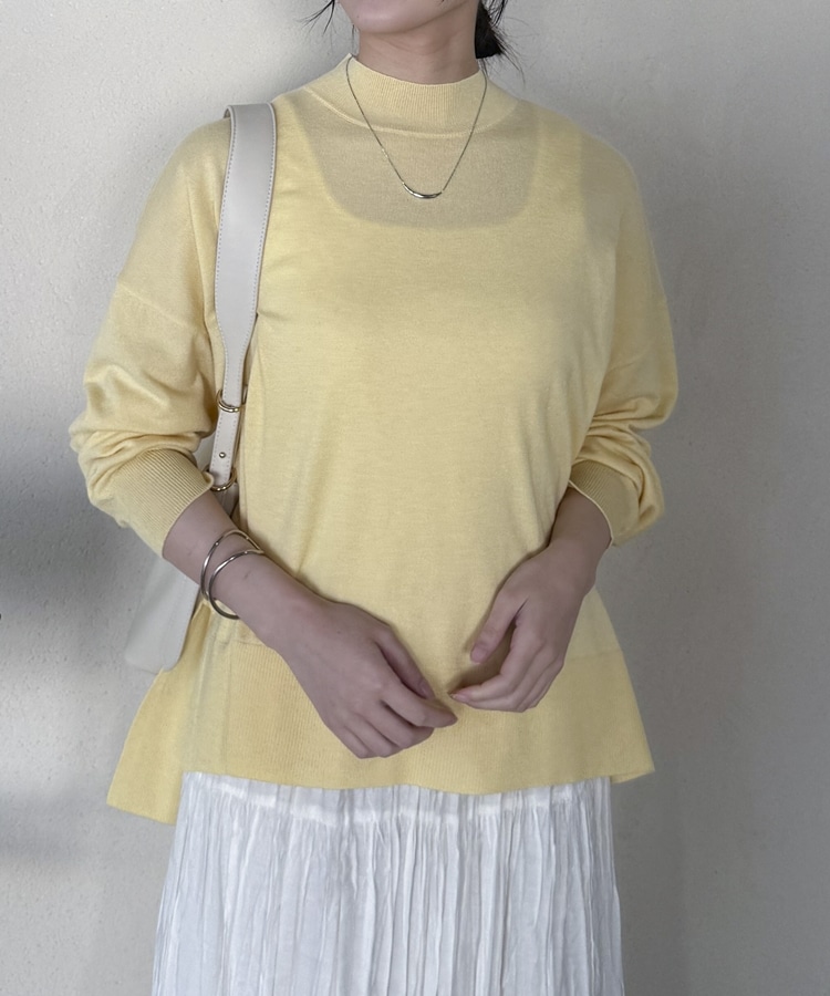 ハイネックサイドスリットニットプルオーバー YELLOW