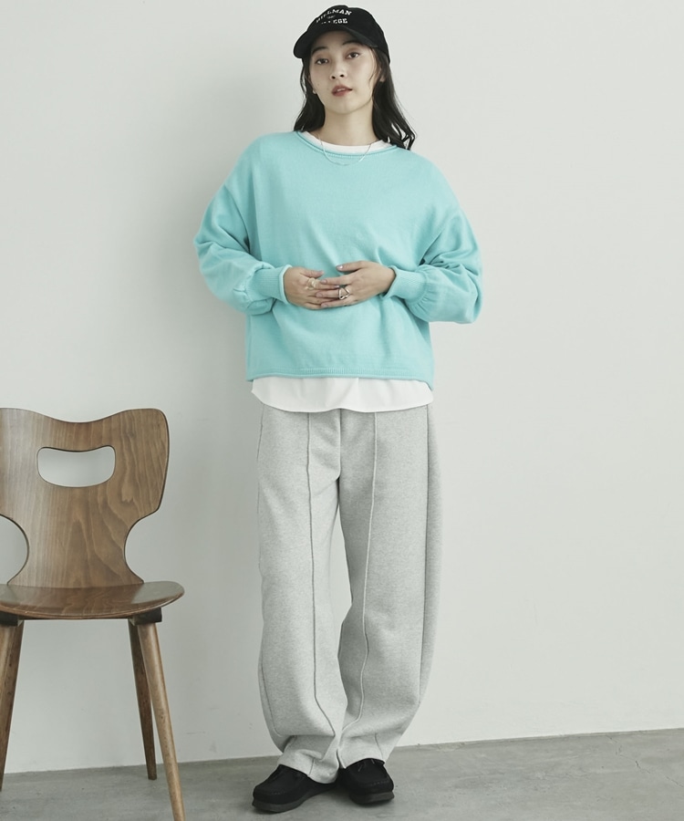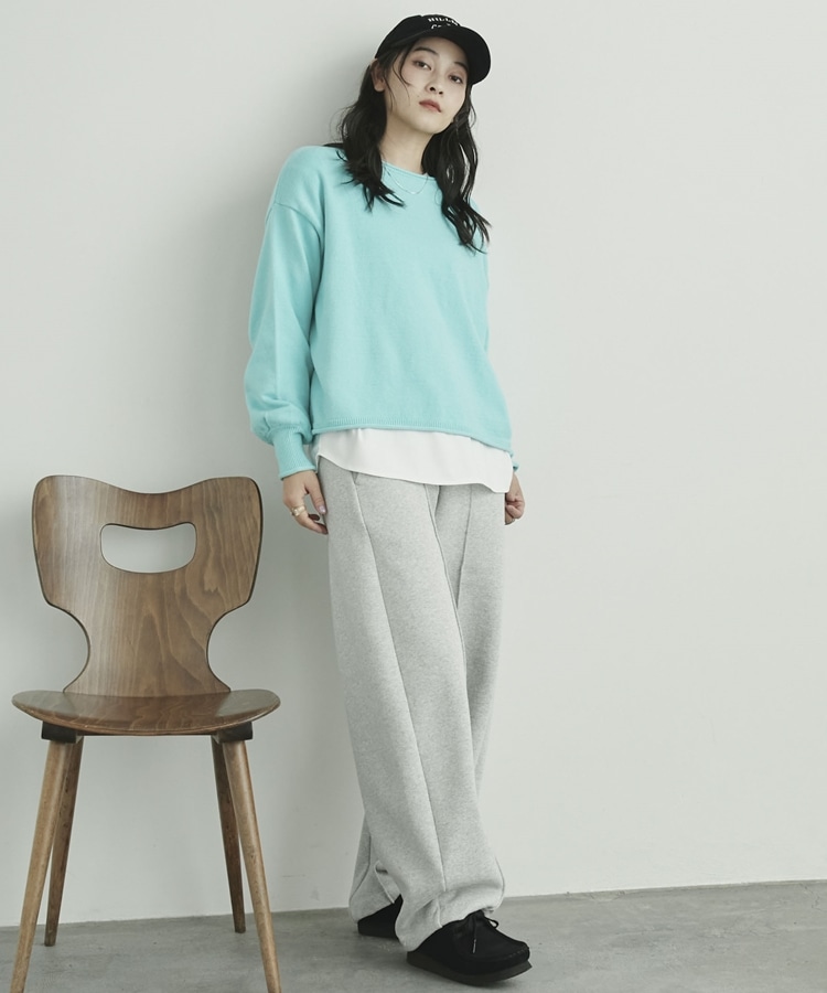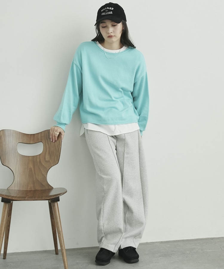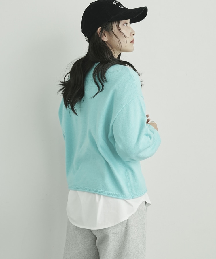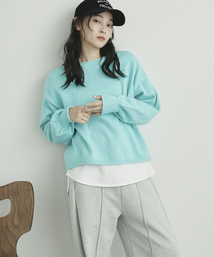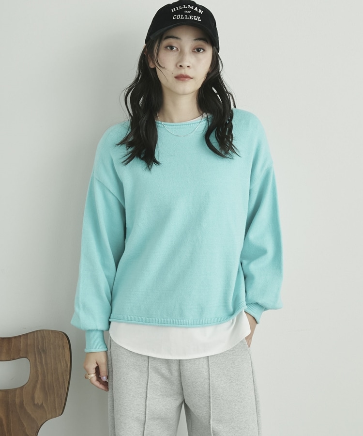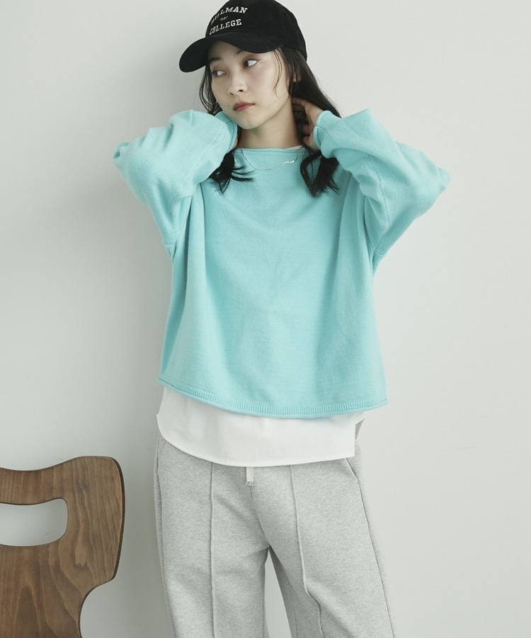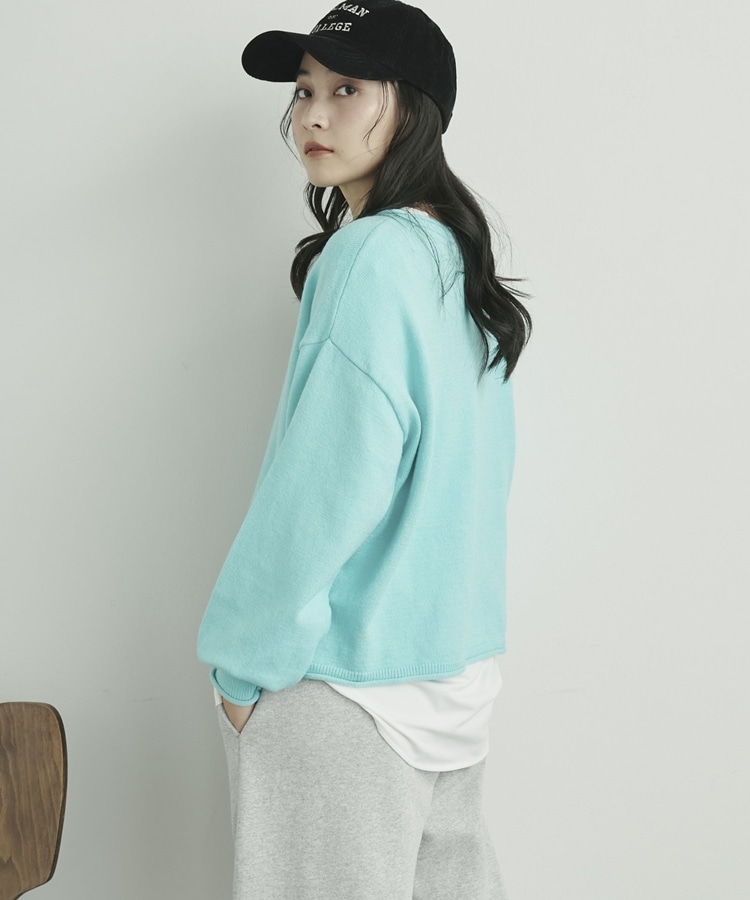 カーリングボートネックニットプルオーバー CYAN