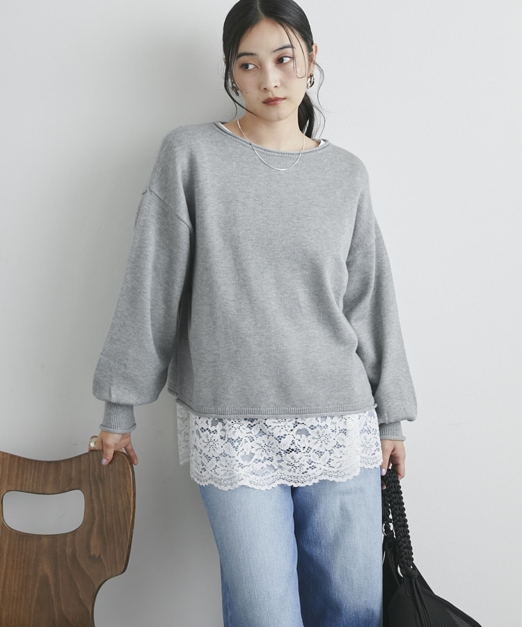 カーリングボートネックニットプルオーバー GRAY