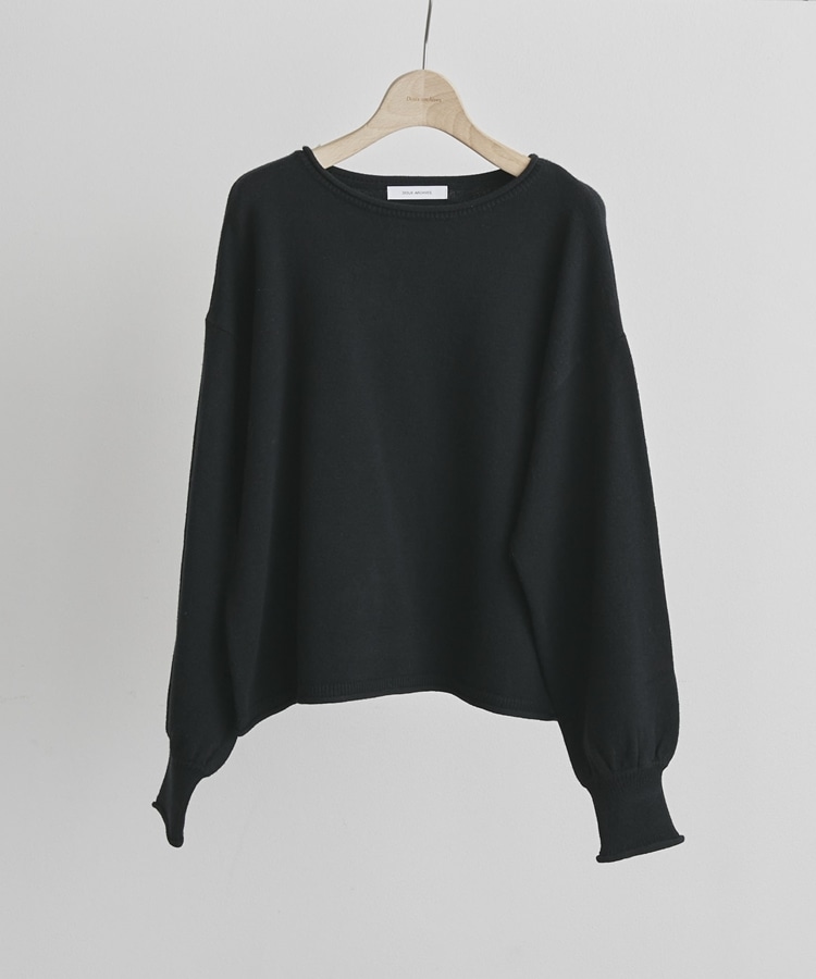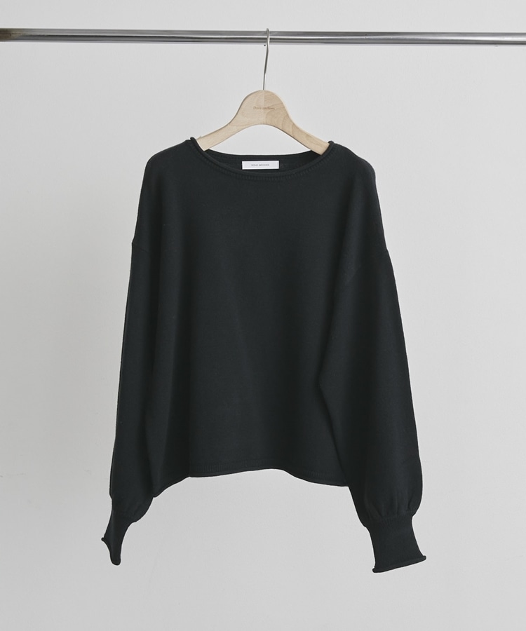 カーリングボートネックニットプルオーバー BLACK