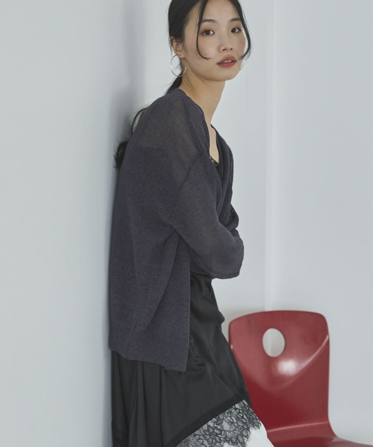 ペーパーヤーンカシュクールカーディガン CHARCOAL GRAY