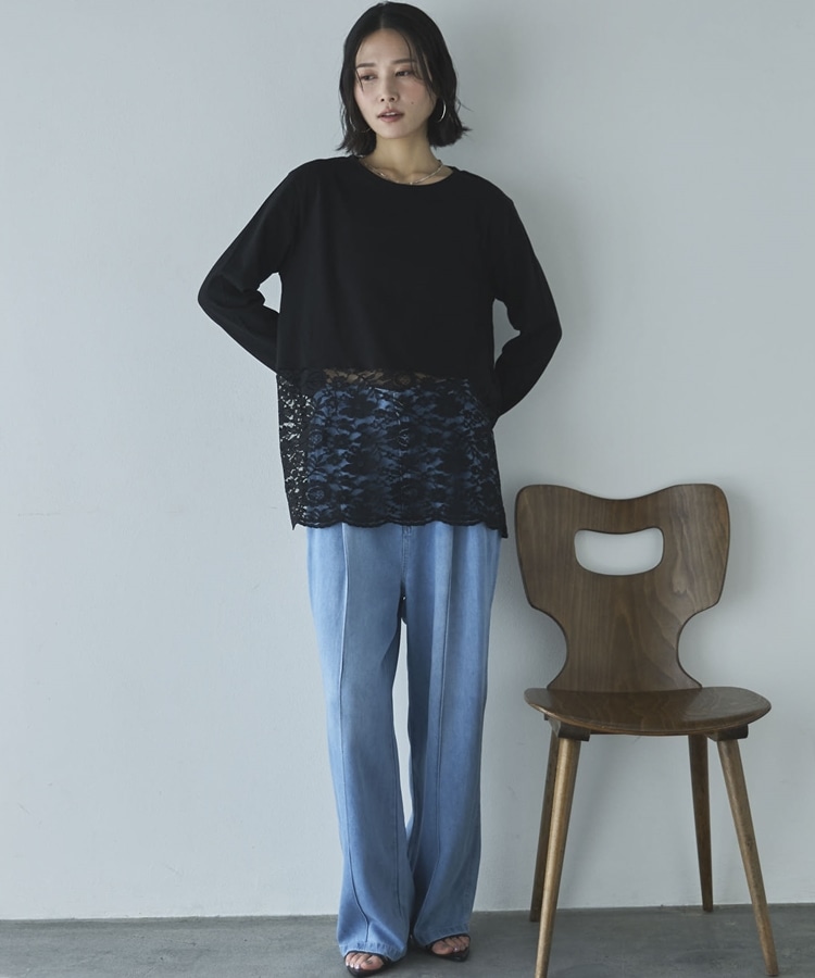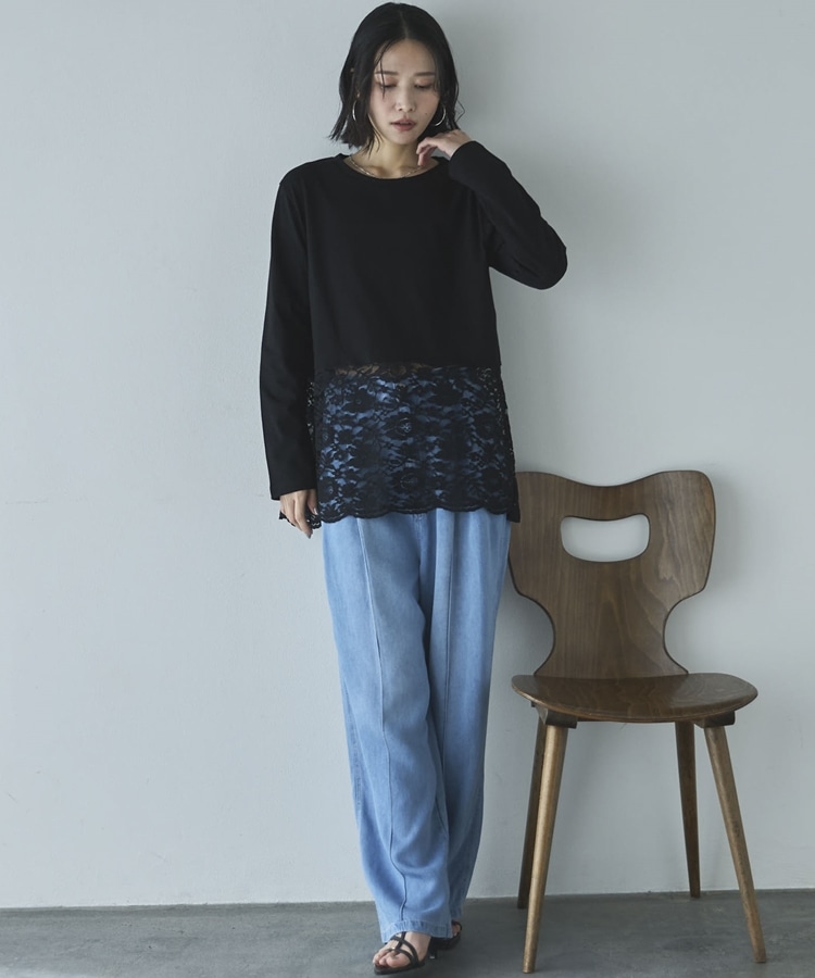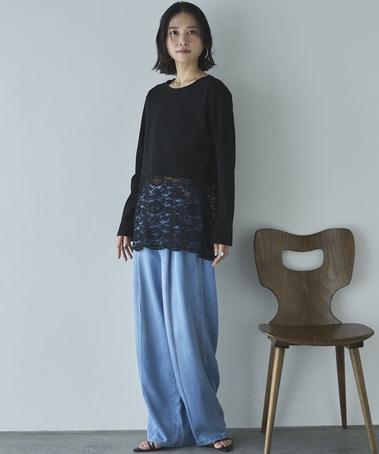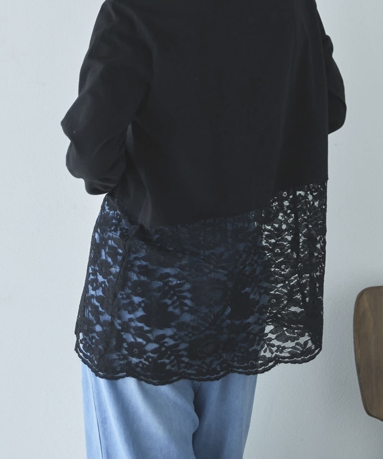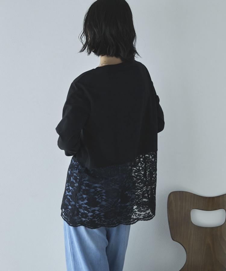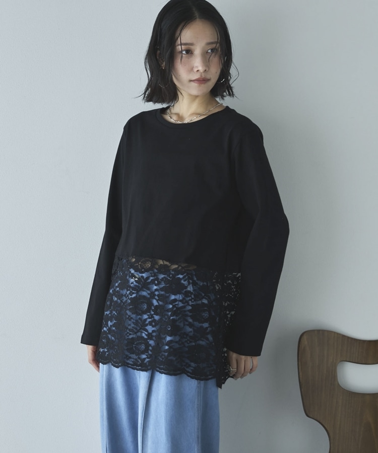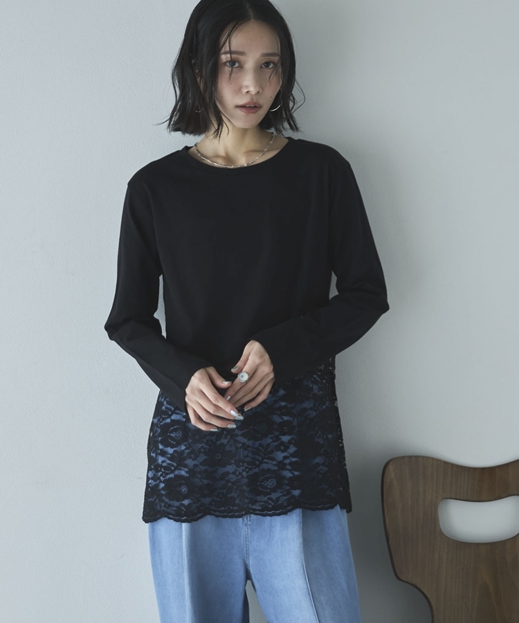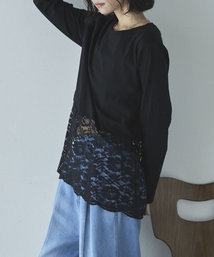 裾スカラップレースロンTee BLACK