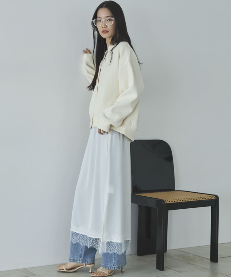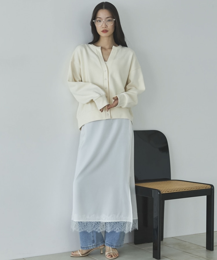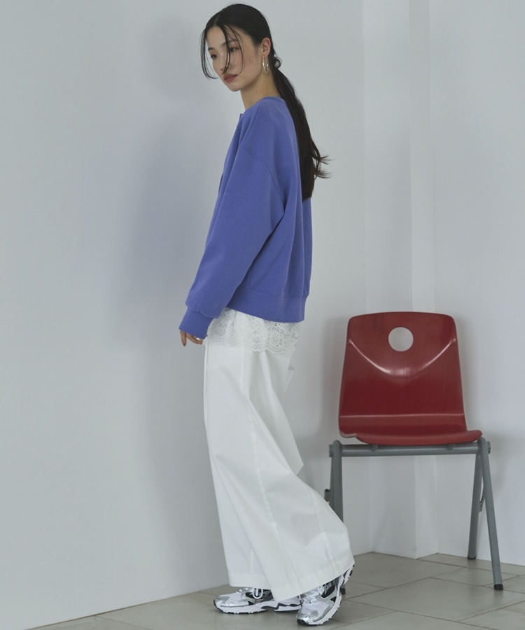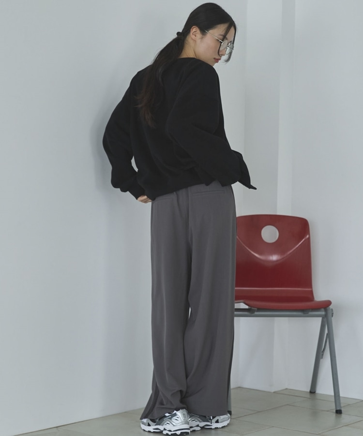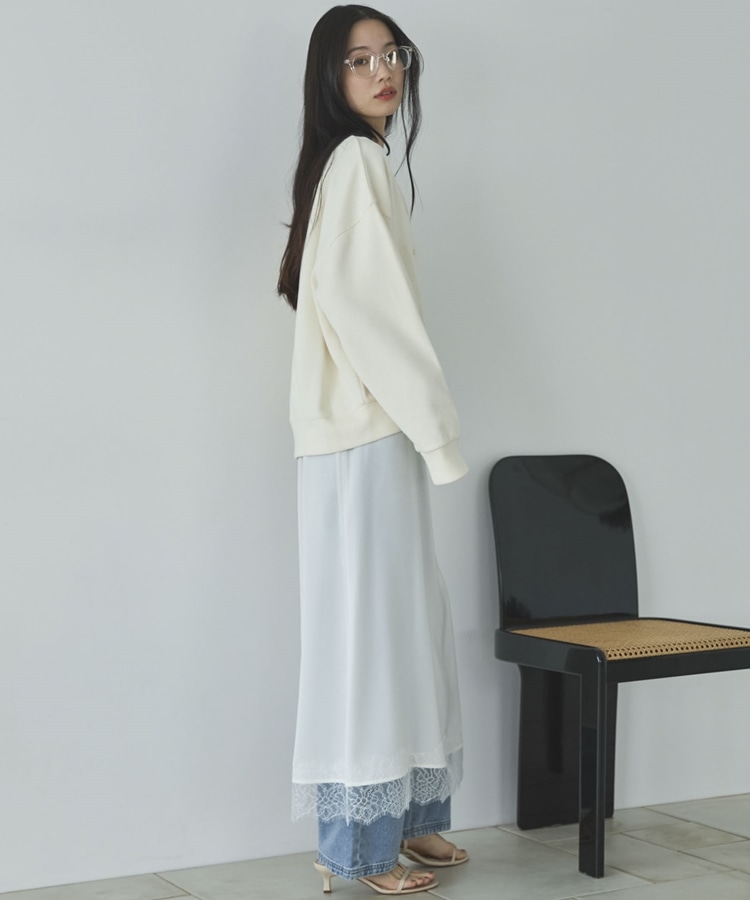 ・ゆったりめの身幅と大きく開いたネックラインで抜け感のあるデザイン