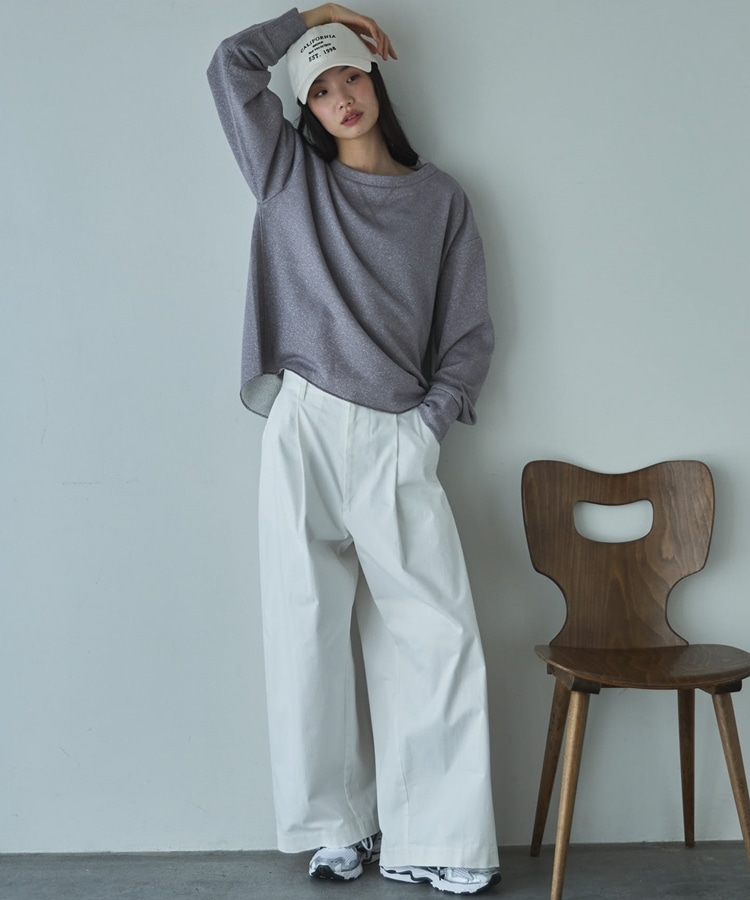 ボートネックラメ裏毛長袖プルオーバー OFF WHITE
