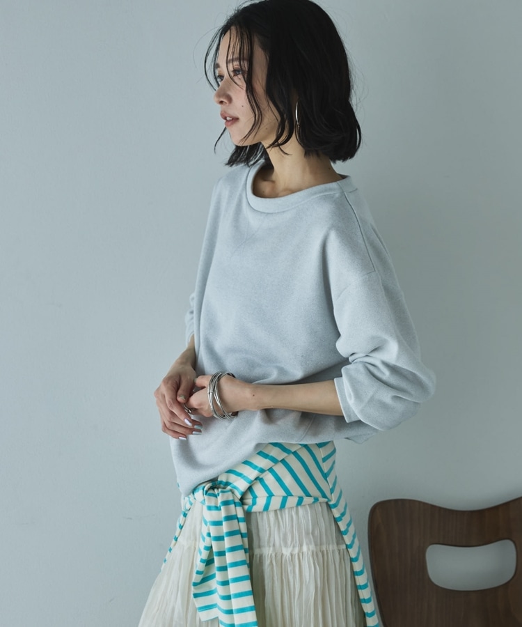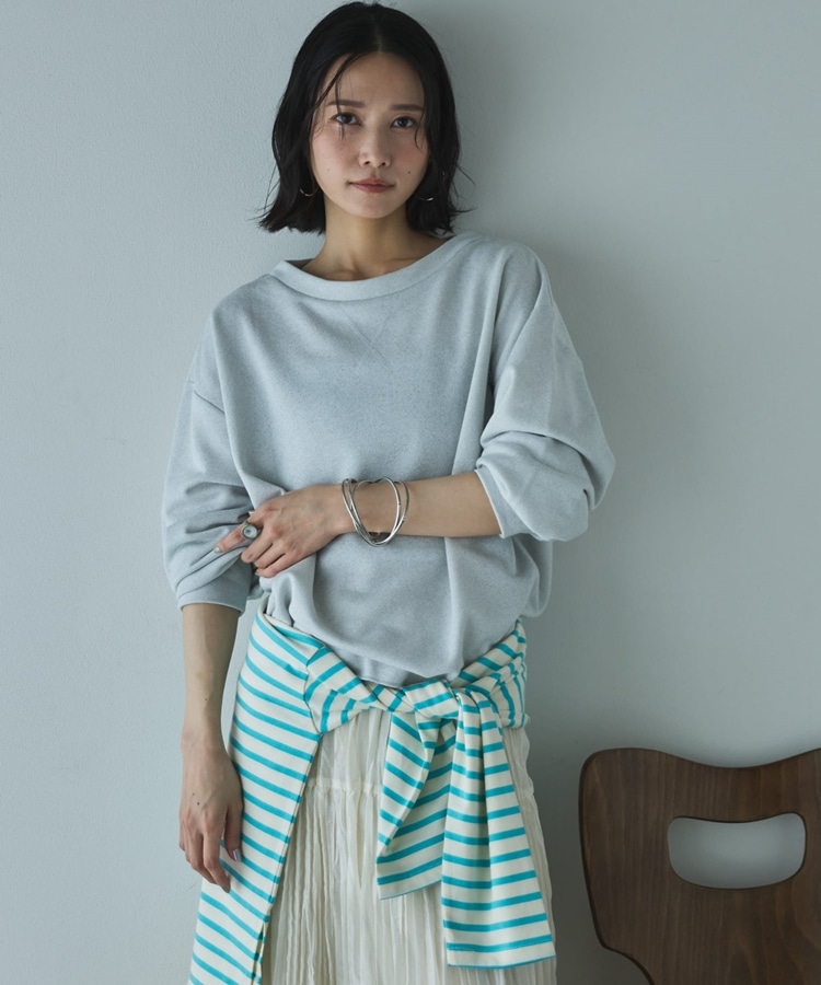ボートネックラメ裏毛長袖プルオーバー GRAY