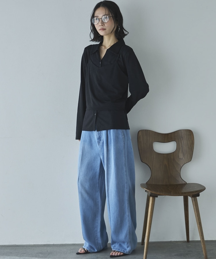 ・すっきりながらもボディラインを拾いづらい落ち感のあるデザイン