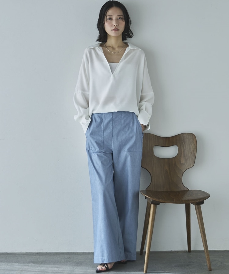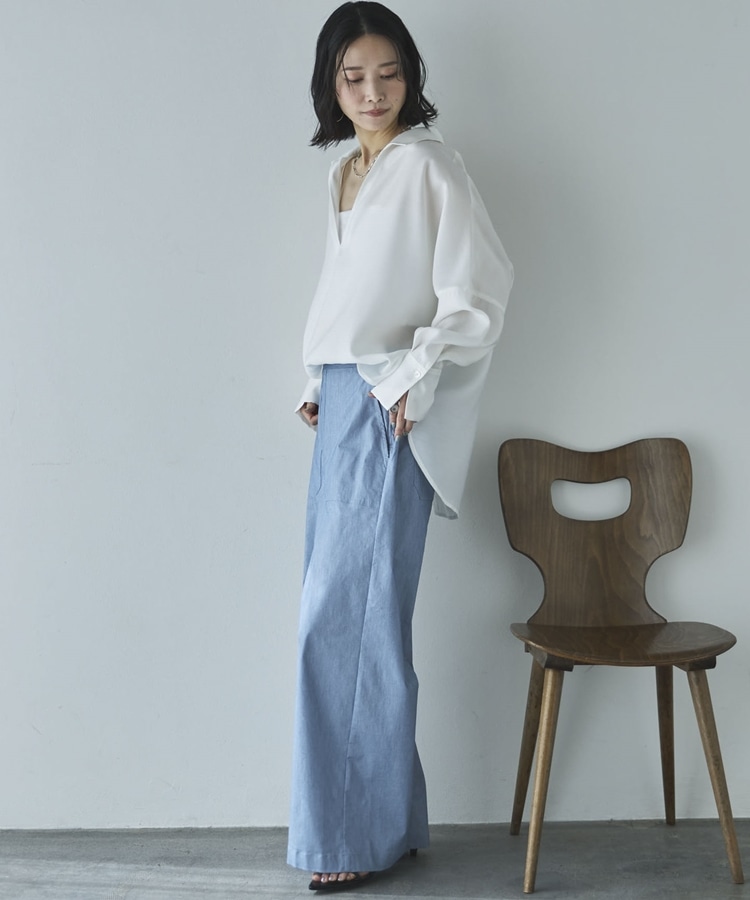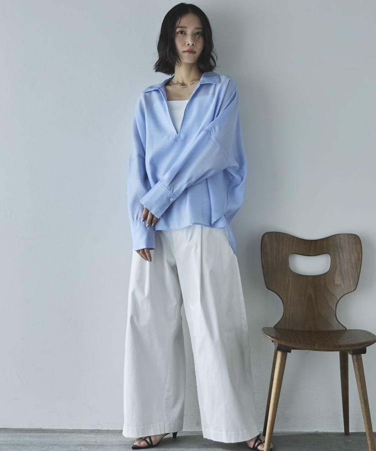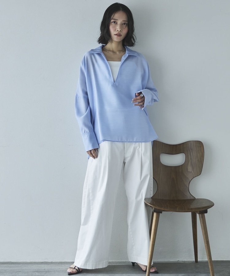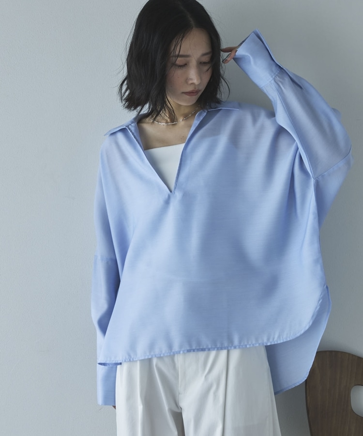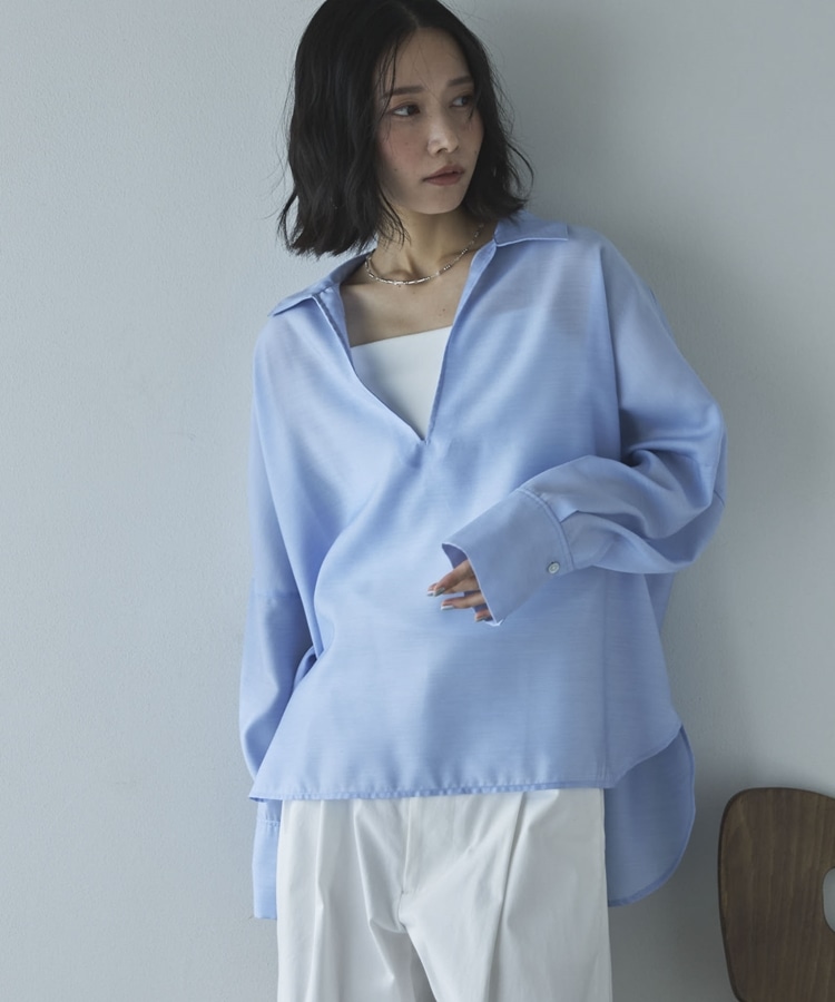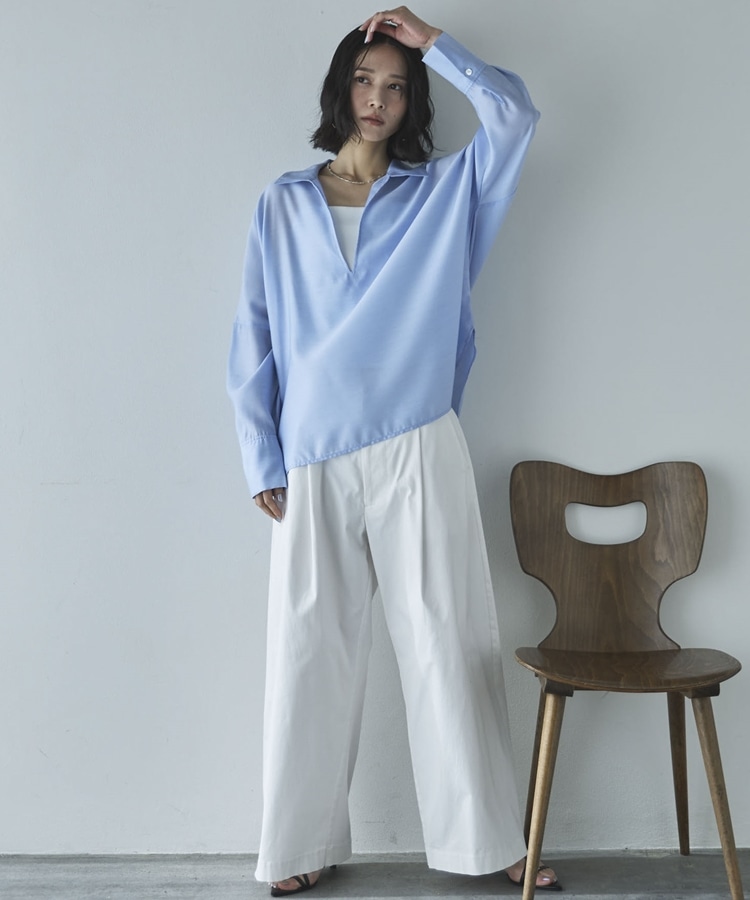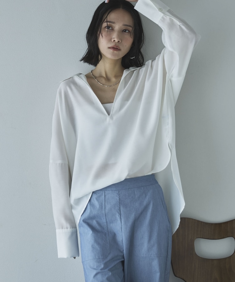 ・深めに開いたスキッパーで衿も抜きやすくすっきりした印象