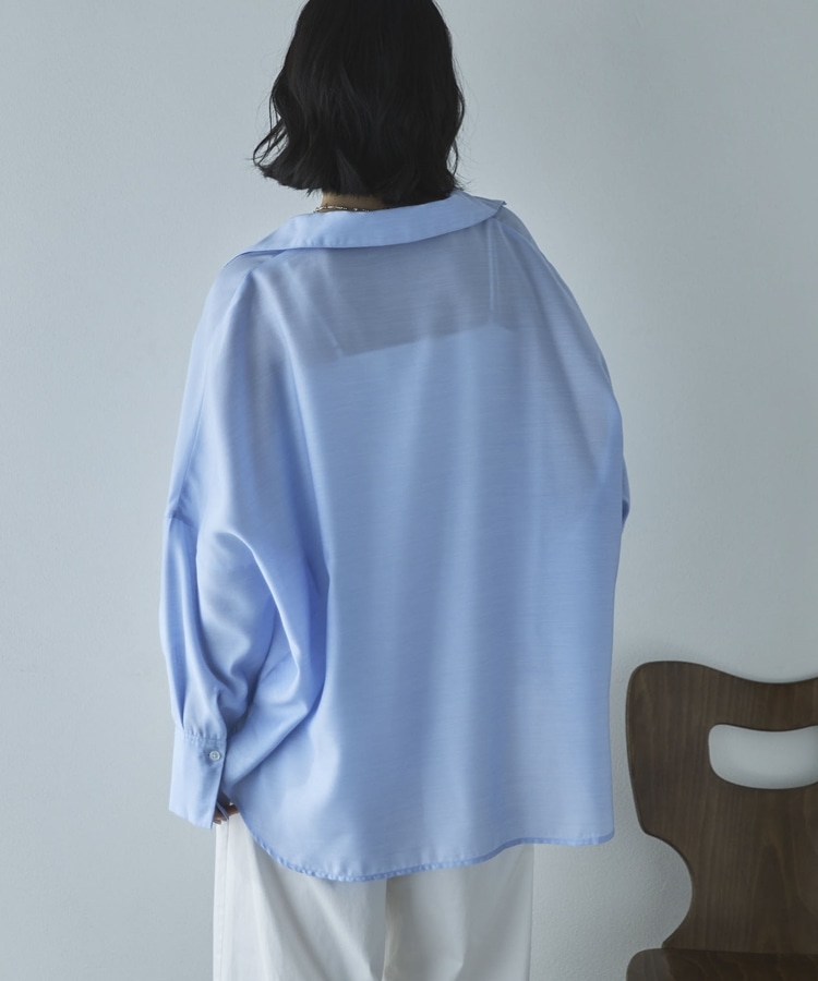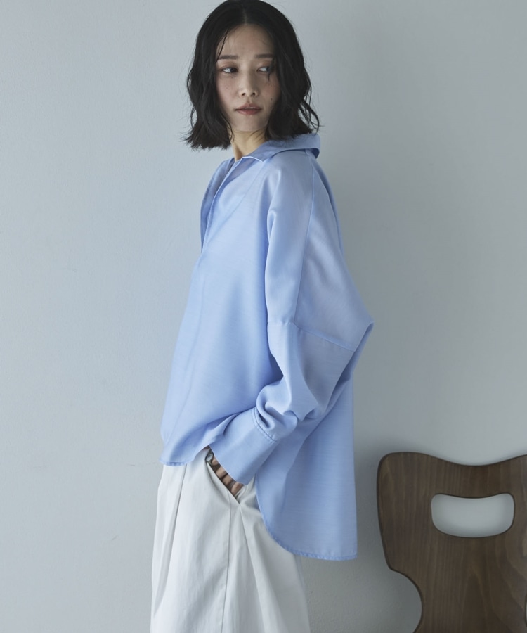 麻調シアースキッパーブラウス SAX