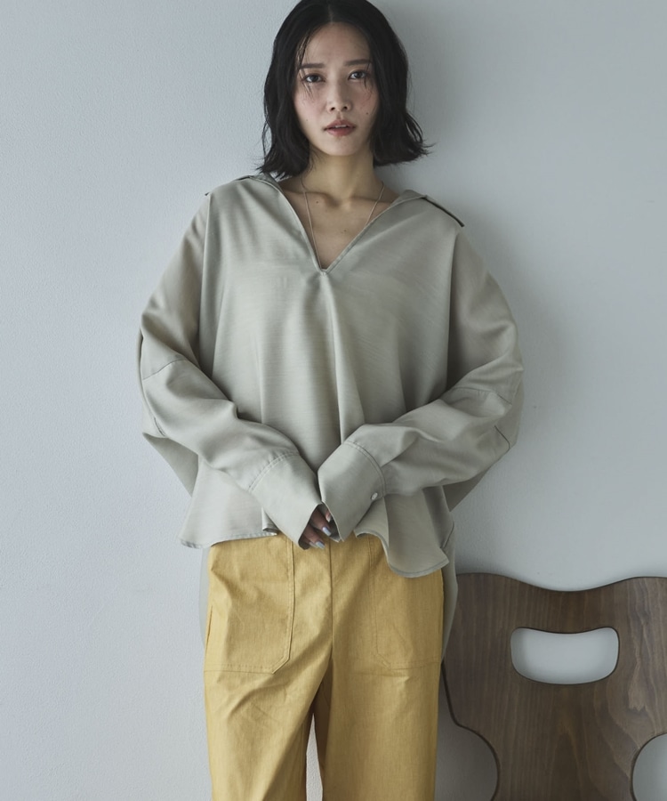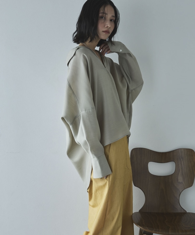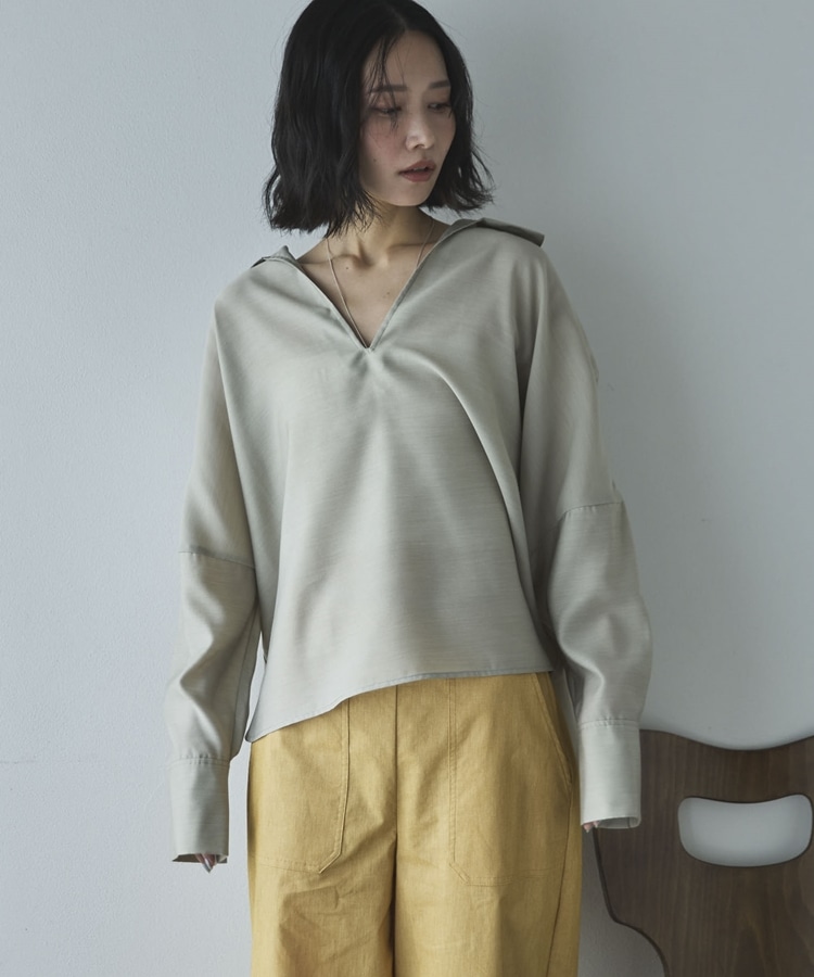 麻調シアースキッパーブラウス BEIGE