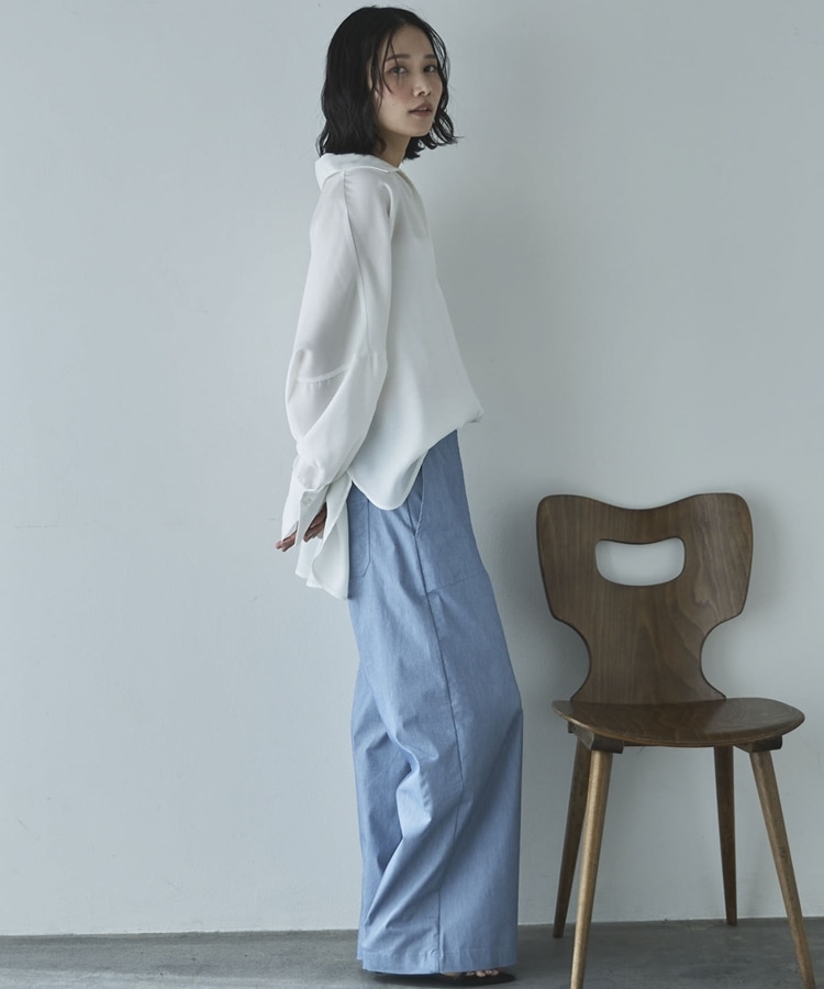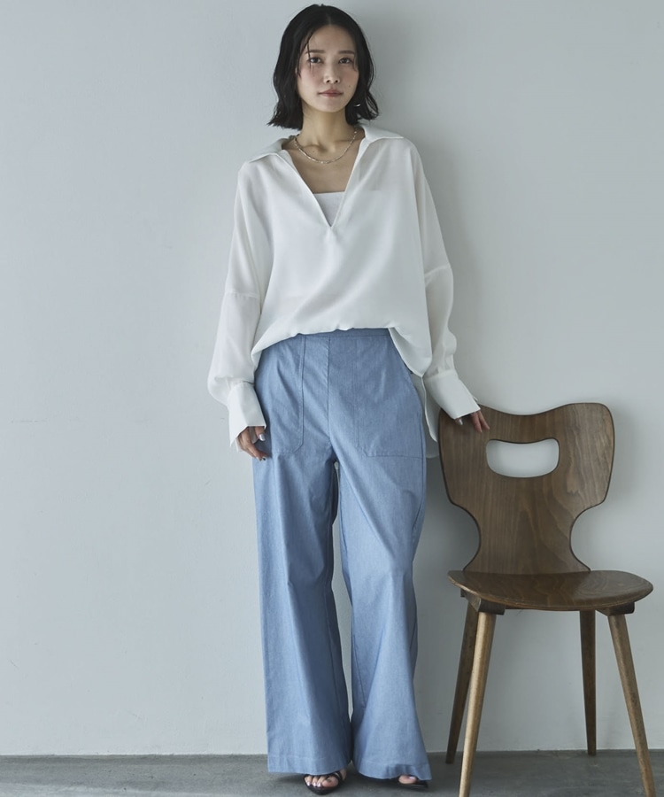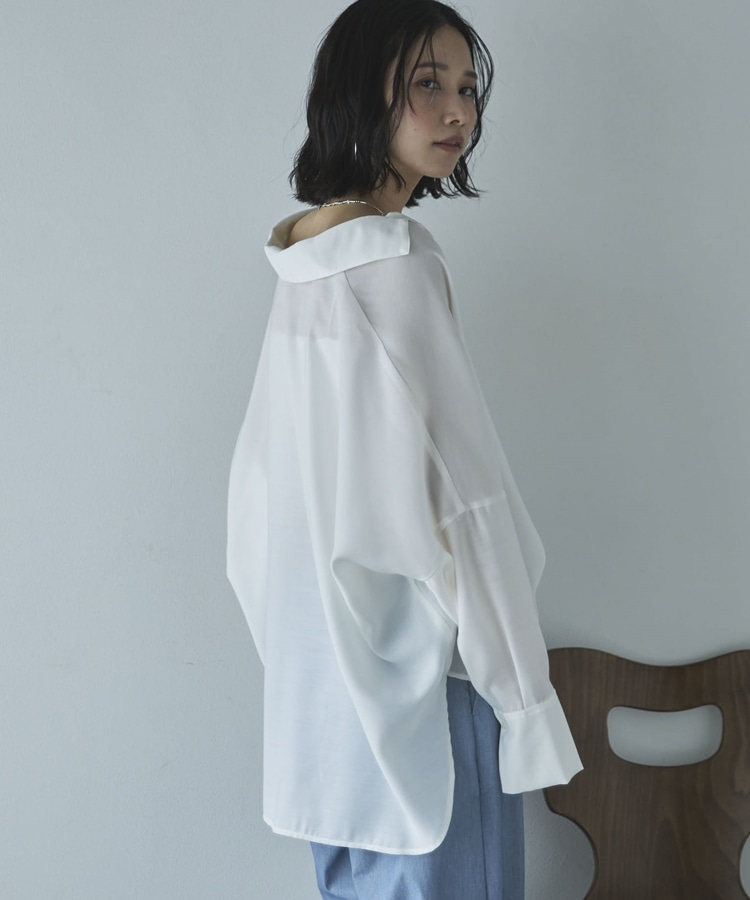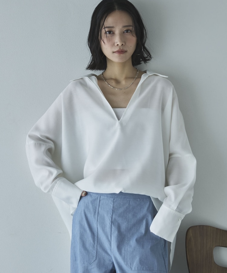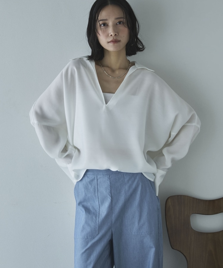 麻調シアースキッパーブラウス OFF WHITE