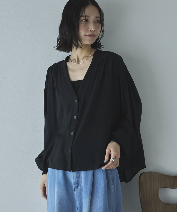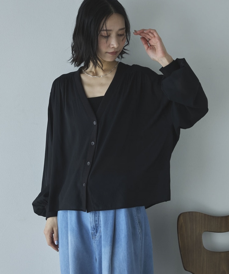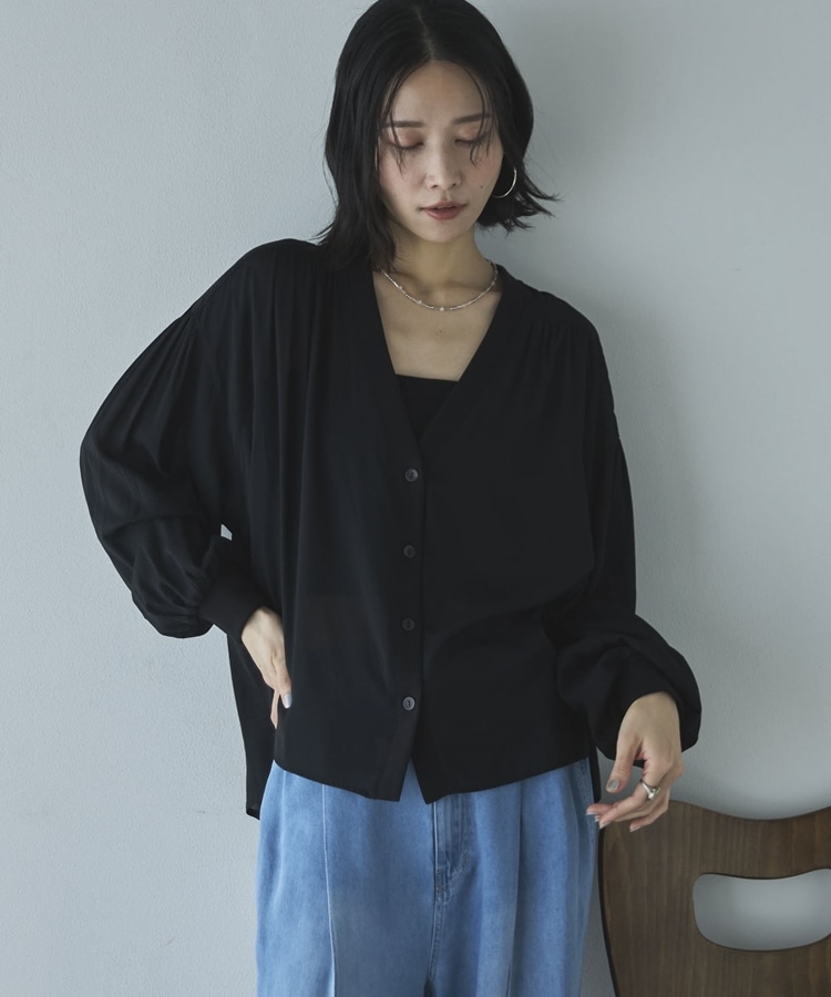 強撚糸シアーブラウスカーディガン BLACK
