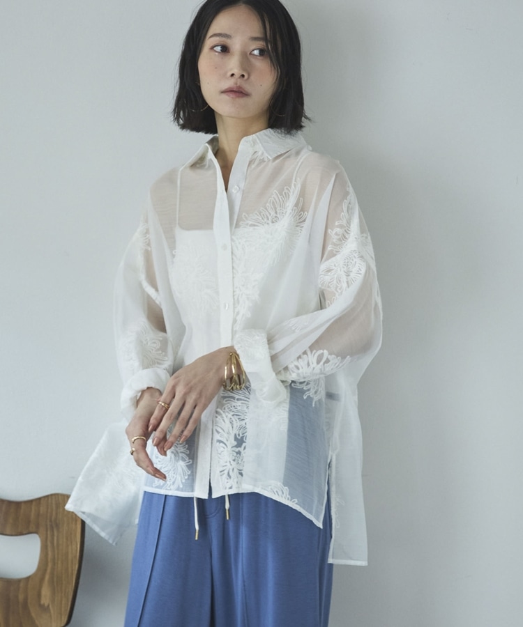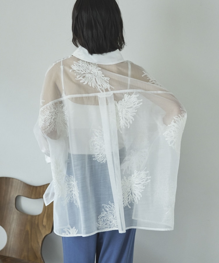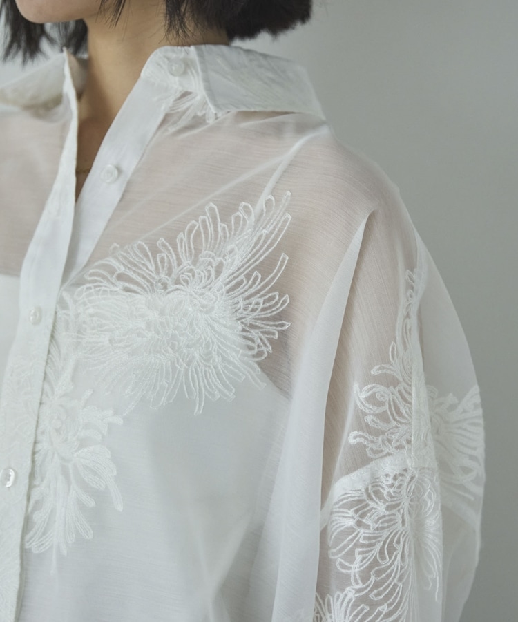 フラワー刺繍オーバーシャツ OFF WHITE