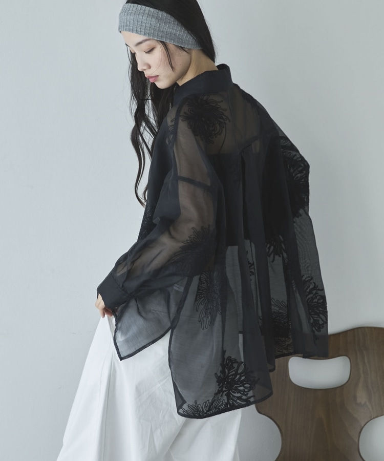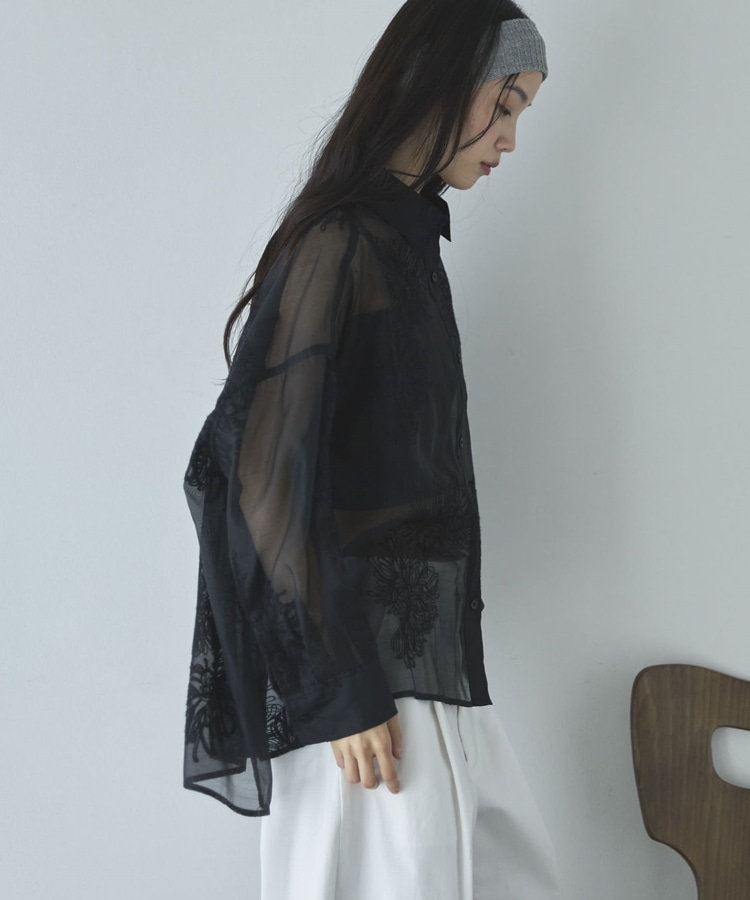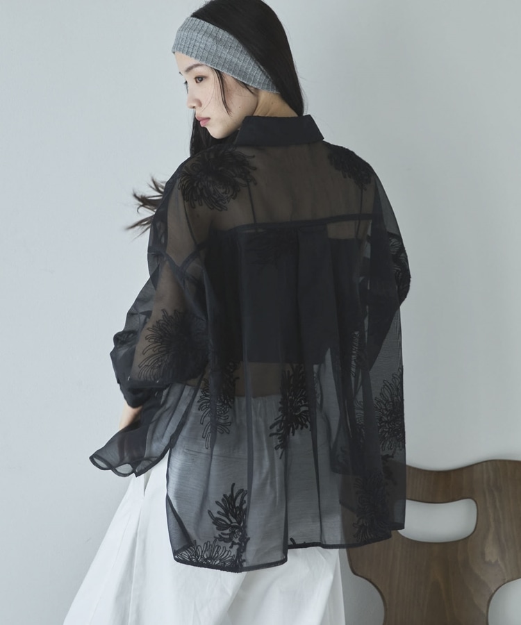フラワー刺繍オーバーシャツ BLACK