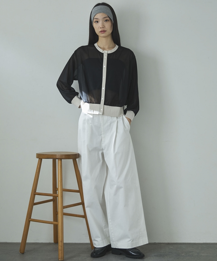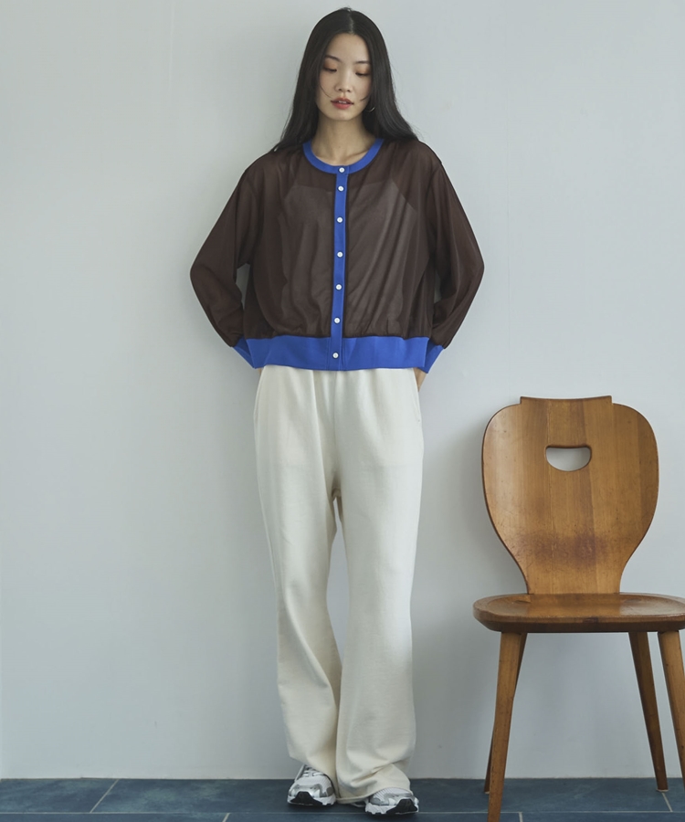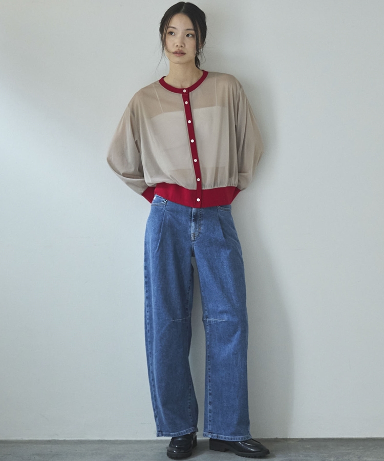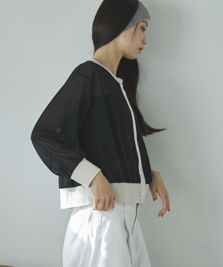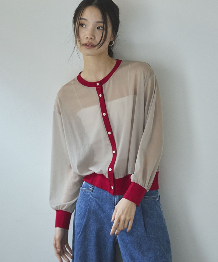 【EC限定】バイカラーシアーカーディガン BEIGE