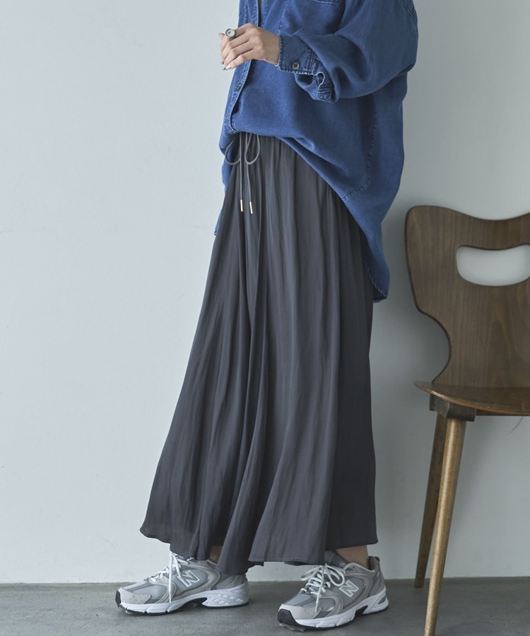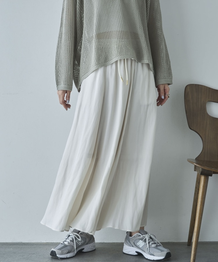 ・キレイ目見えしながらもウエストはゴムで楽な履き心地