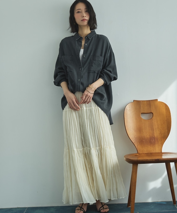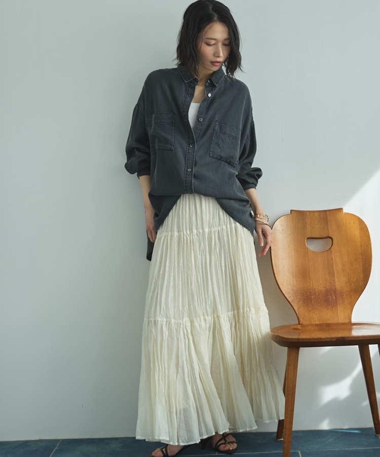 甘すぎない印象のティアードスカート