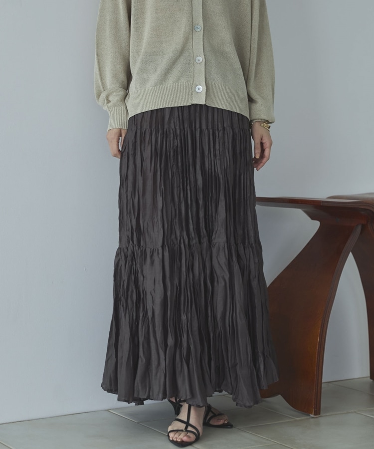 ワッシャーシアーティアードスカート DARK BROWN