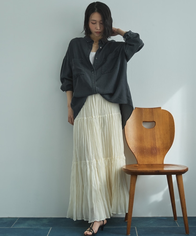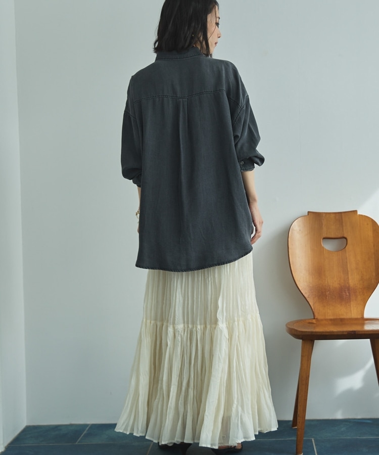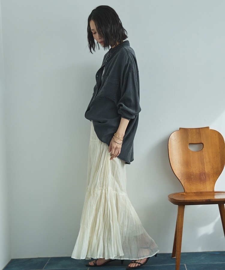 ・ワッシャーのしわ感がゆるいプリーツのような雰囲気に