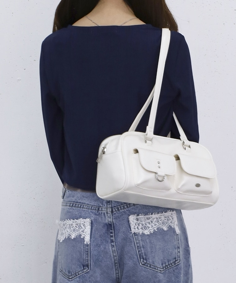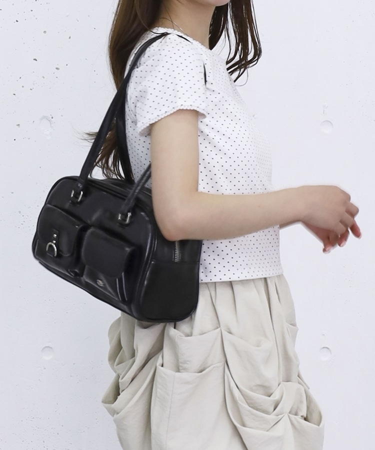 ■持つだけで旬顔に、ポケットボストンバッグ■【デザイン】・持つだけでトレンド感のあるスタイリングが完成するボストンバッグ・立体的な外ポケットがデザインポイントになり、シンプルながらも目を引くデザイン・持ち手は長めで肩がけしやすく、デイリー使いにぴったり・チャームをつけて自分好みにアレンジできるのも魅力・どんなコーデにも合わせやすい万能デザイン【素材感】・しっかりとした素材感で型崩れしにくい・軽量で持ちやすく、デイリーに使いやすい仕様・程よいハリ感で高見えする印象ーーーーーーーーーーーーーーー【detail】外ポケット:あり内ポケット:ありショルダー紐:あり(調節不可)ーーーーーーーーーーーーーーー※ご利用のモニター環境により、実際の色味と多少異なる場合がございます。【スタイリング】・カジュアルコーデに合わせてトレンド感をプラス・ミニバッグ感覚で持ちつつ、しっかり収納もできる優秀アイテム・チャームやキーホルダーをつけて自分らしいアレンジもおすすめ▼スタッフ別の詳しい着こなしは下の COORDINATE をチェック