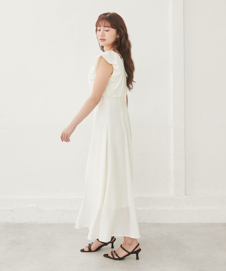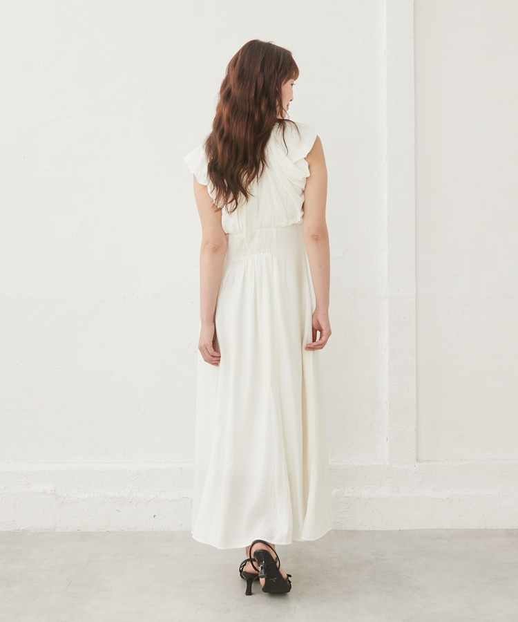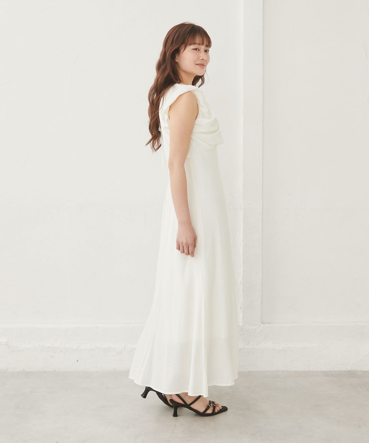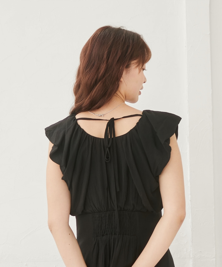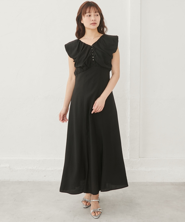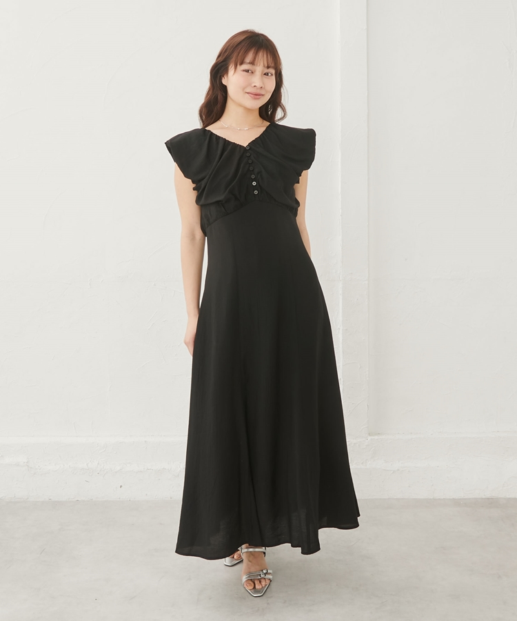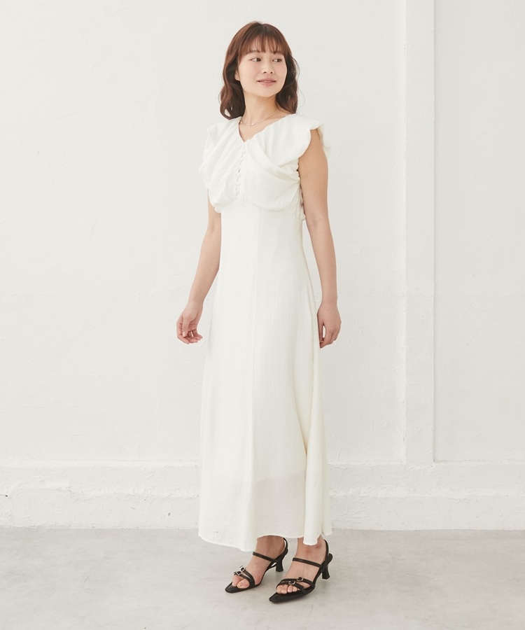 ■バルーンデザインが華やかさと大人っぽさを引き出す。ノースリーブワンピース■【デザイン】・ふんわりとしたボリューム感が目を惹く、立体感のあるバルーンデザイン・胸元のギャザーとフロントボタンがクラシックな印象をプラス・顔周りをすっきりと見せる、程良い開きのVネックデザイン・高めのウエスト切り替えでスタイルアップ効果抜群◎・ウエスト周りはタイトすぎず、裾に向かって緩やかに広がるナローシルエット【素材感】・肌なじみの良いさらりとした質感で、夏場でも快適な着心地・動くたびにしなやかに揺れる落ち感のある素材・裏地付きで透けにくく、1枚でさらりと着れる質感ーーーーーーーーーーーーーーー透け感:なし裏地:あり伸縮性:なし光沢感:なし生地厚さ:普通洗濯方法:手洗い可※詳しいお手入れ方法は商品についているタグをご覧くださいーーーーーーーーーーーーーーー※ご利用のモニター環境により、実際の色味と多少異なる場合がございます。【スタイリング】・華奢なサンダルやパンプスと合わせてドレッシーな雰囲気に・カーディガンやジャケットを肩掛けすれば、ディナーシーンにも最適・スニーカーで外した、カジュアルダウンスタイルも♪▼スタッフ別の詳しい着こなしは下の COORDINATE をチェック